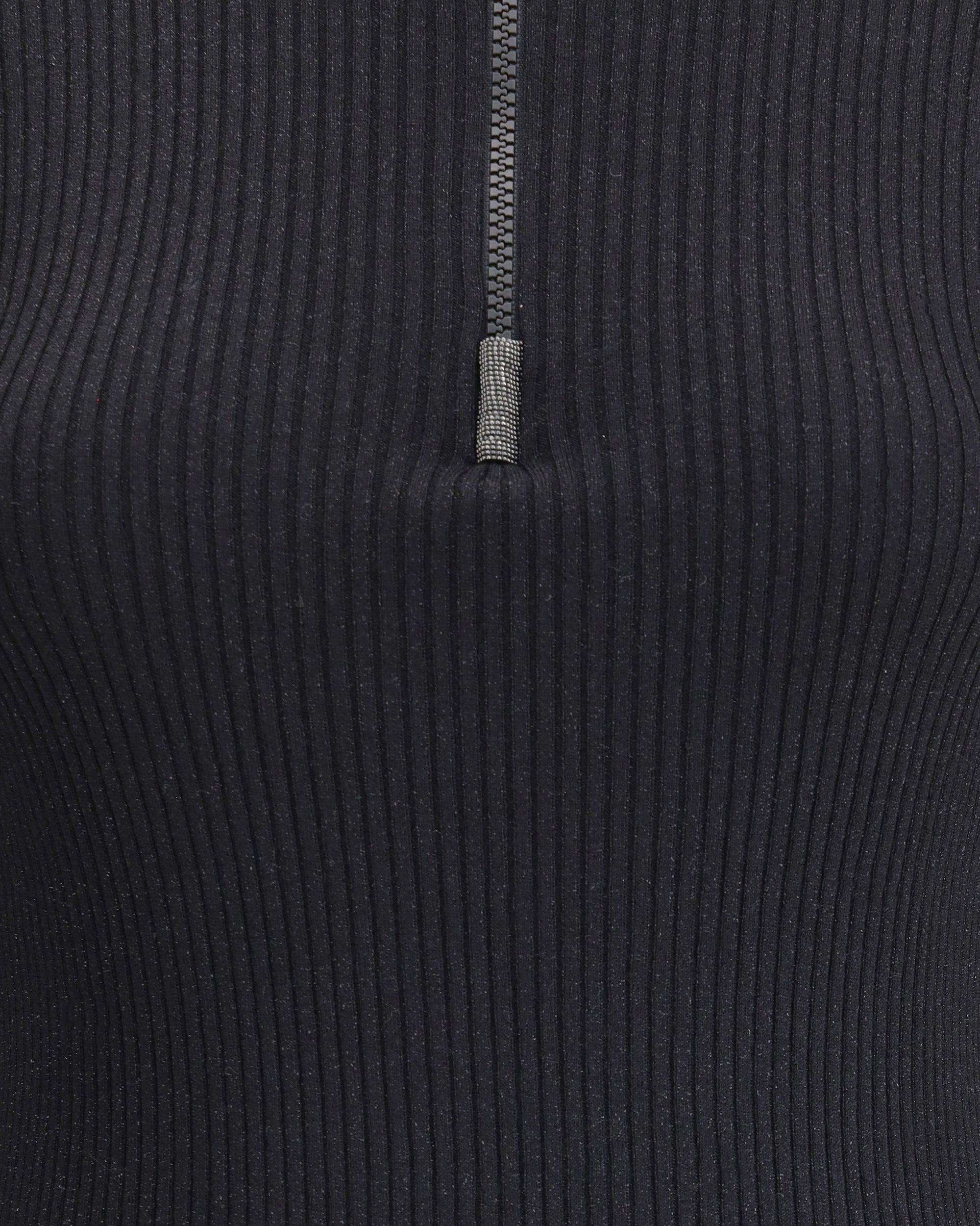La Maglia a maniche lunghe con cappuccio di Brunello Cucinelli è un capo casual-chic dallo stile ricercato. Realizzata in maglia a coste, è impreziosita da un sottile filetto con brillantini che aggiunge un tocco luminoso e raffinato. La zip sul fronte e il cappuccio completano il design, unendo comfort e sofisticata semplicità.