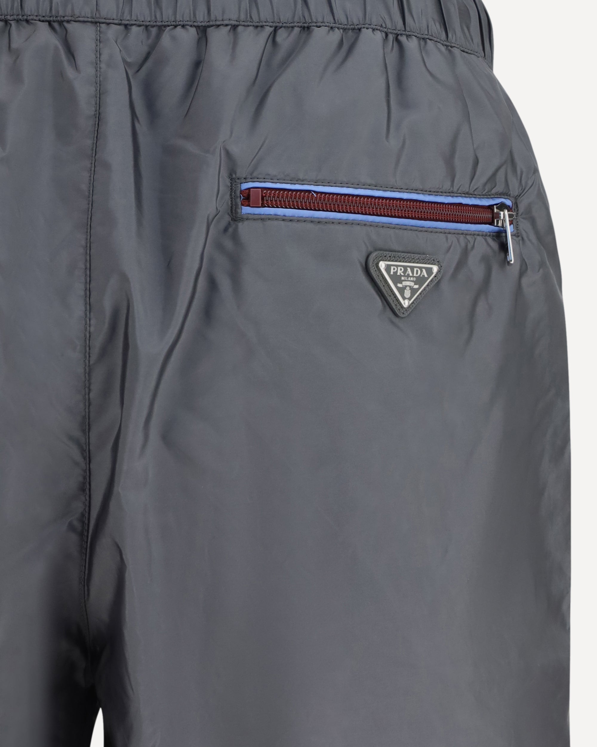 Il Costume da Bagno in Re-Nylon di Prada è un capo sportivo e sofisticato. La vita elasticizzata garantisce una vestibilità comoda, mentre la gamba dritta conferisce un taglio moderno e versatile. La tasca con zip applicata sul retro con profili a contrasto aggiunge un dettaglio funzionale ed elegante, mentre il logo triangolare smaltato applicato sul retro completa il design con un tocco iconico. Perfetto per chi cerca un look pratico ma distintivo anche in spiaggia.