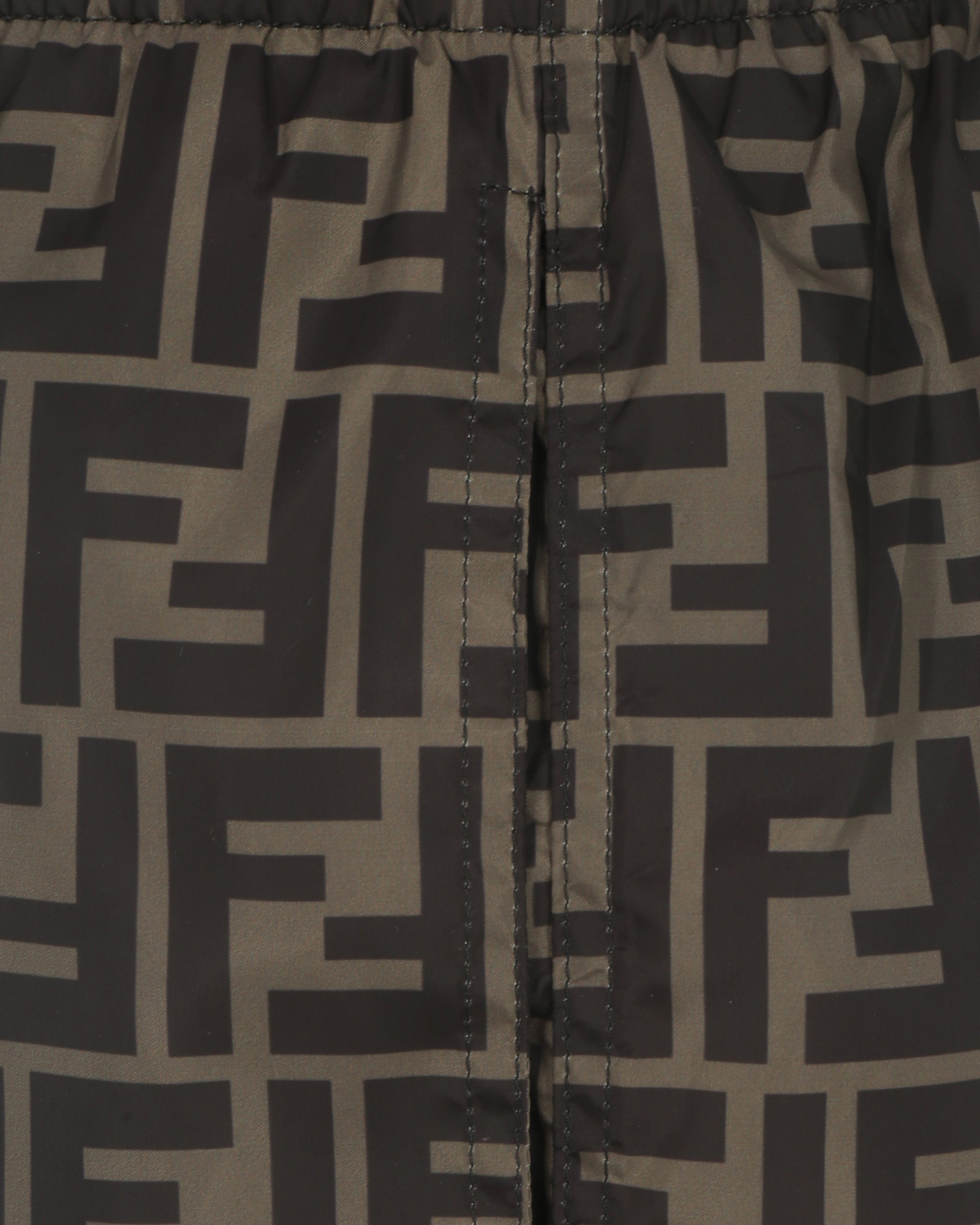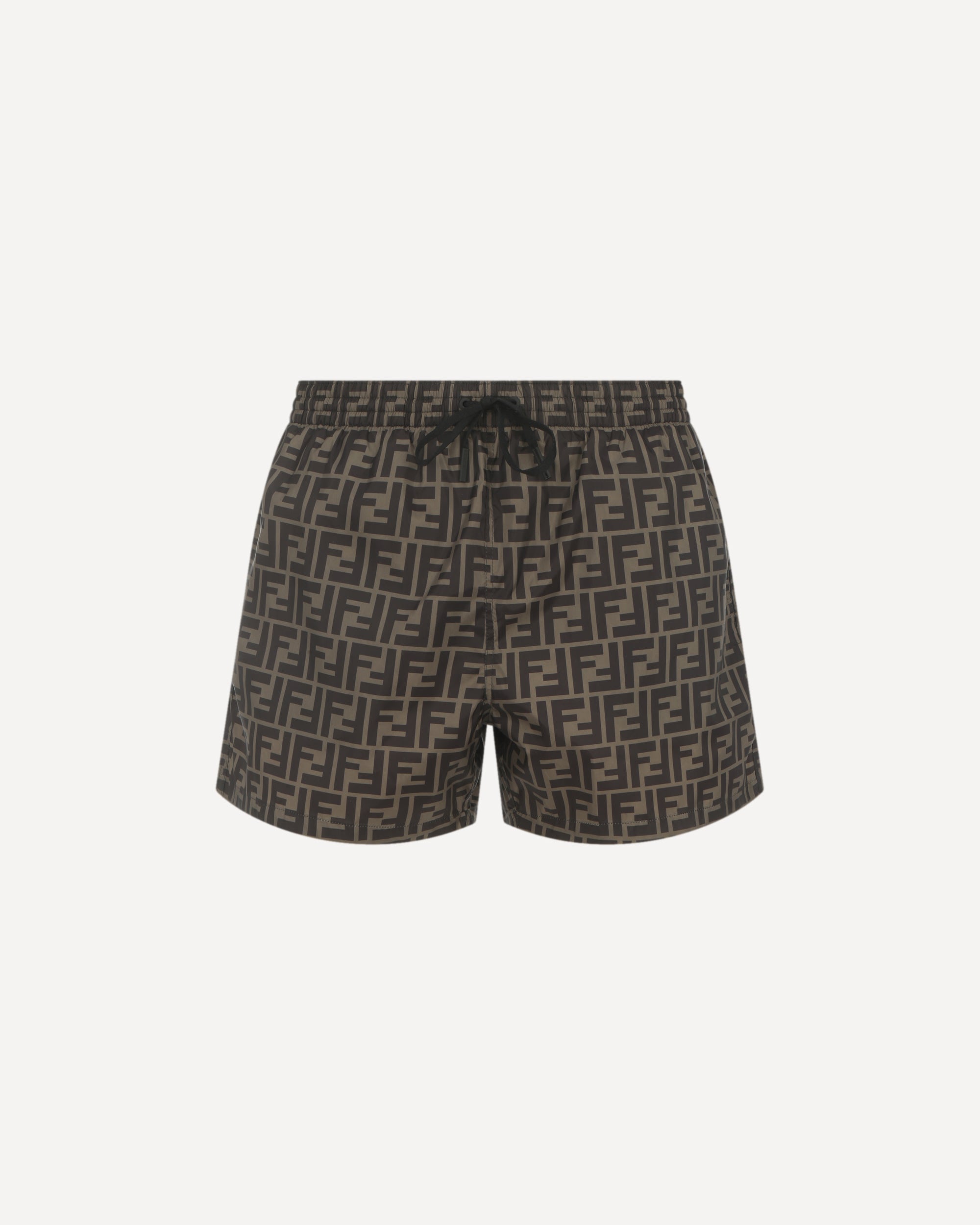 Costume da Bagno di Fendi, girovita elasticizzato con coulisse regolabili, due tasche a filetto laterali, iconico monogramma brand ripetuto a contrasto all-over.