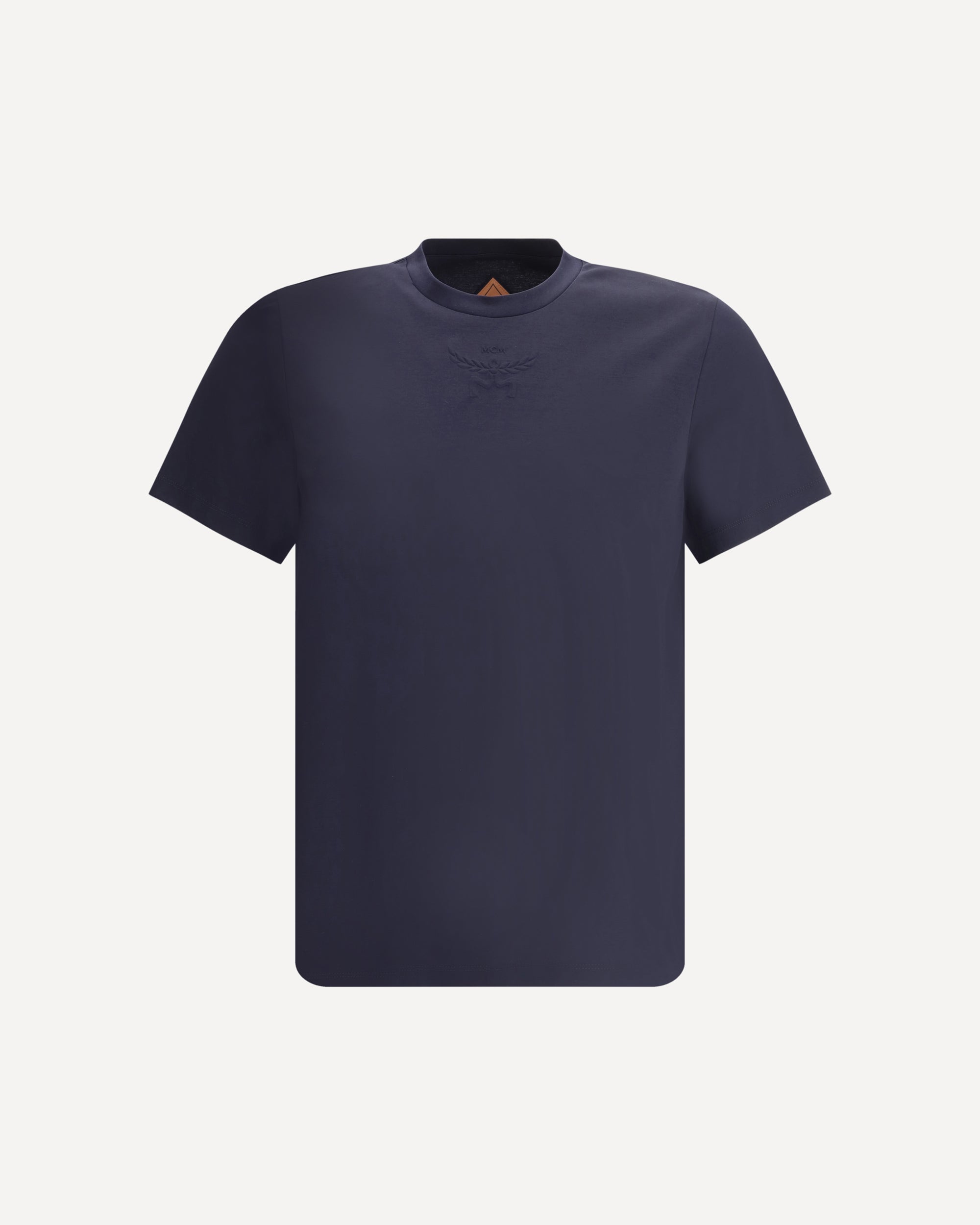 T-Shirt in Cotone di MCM, girocollo a costine, iconico logo brand in rilievo sul fronte, fantasia monocromo, vestibilità regular.