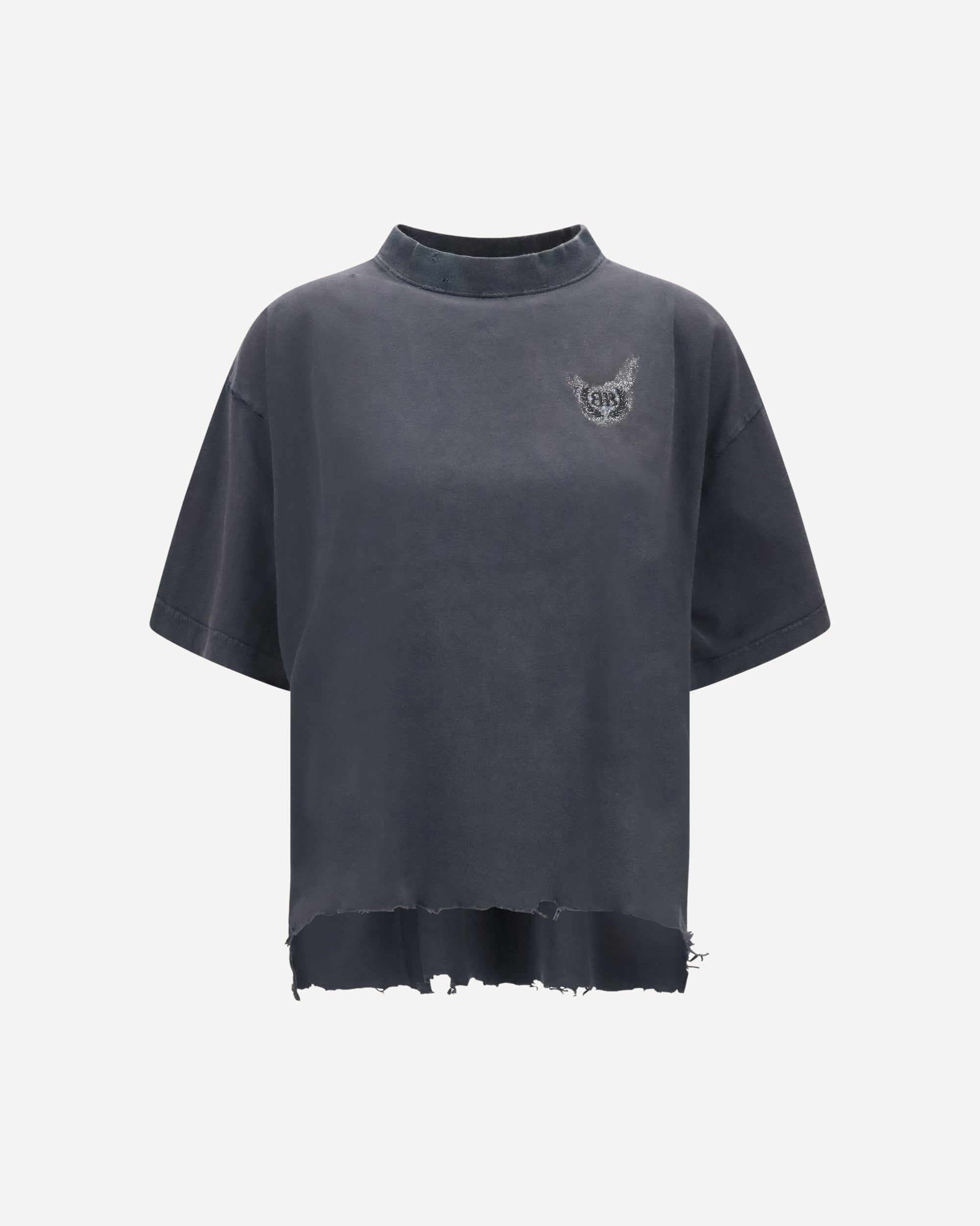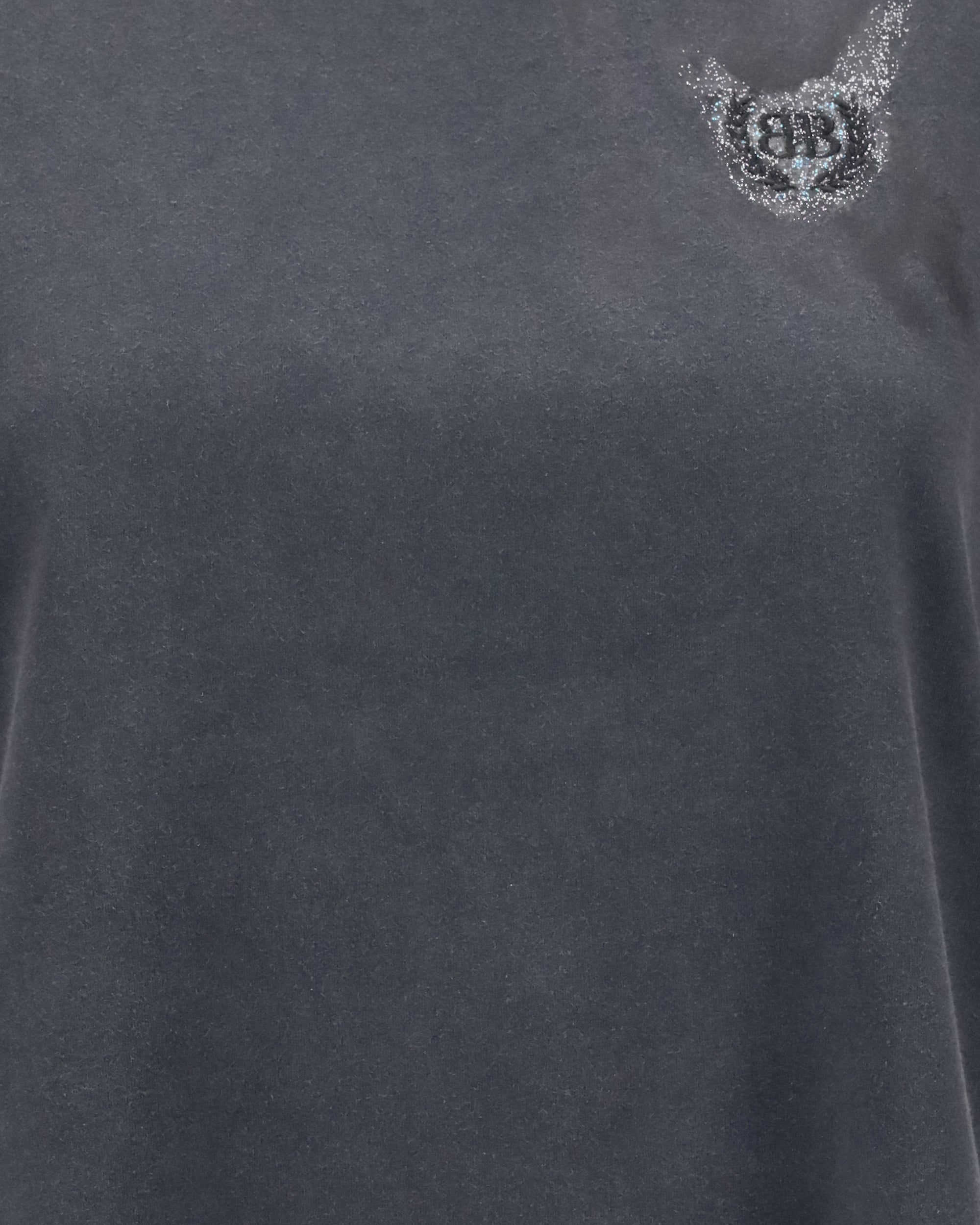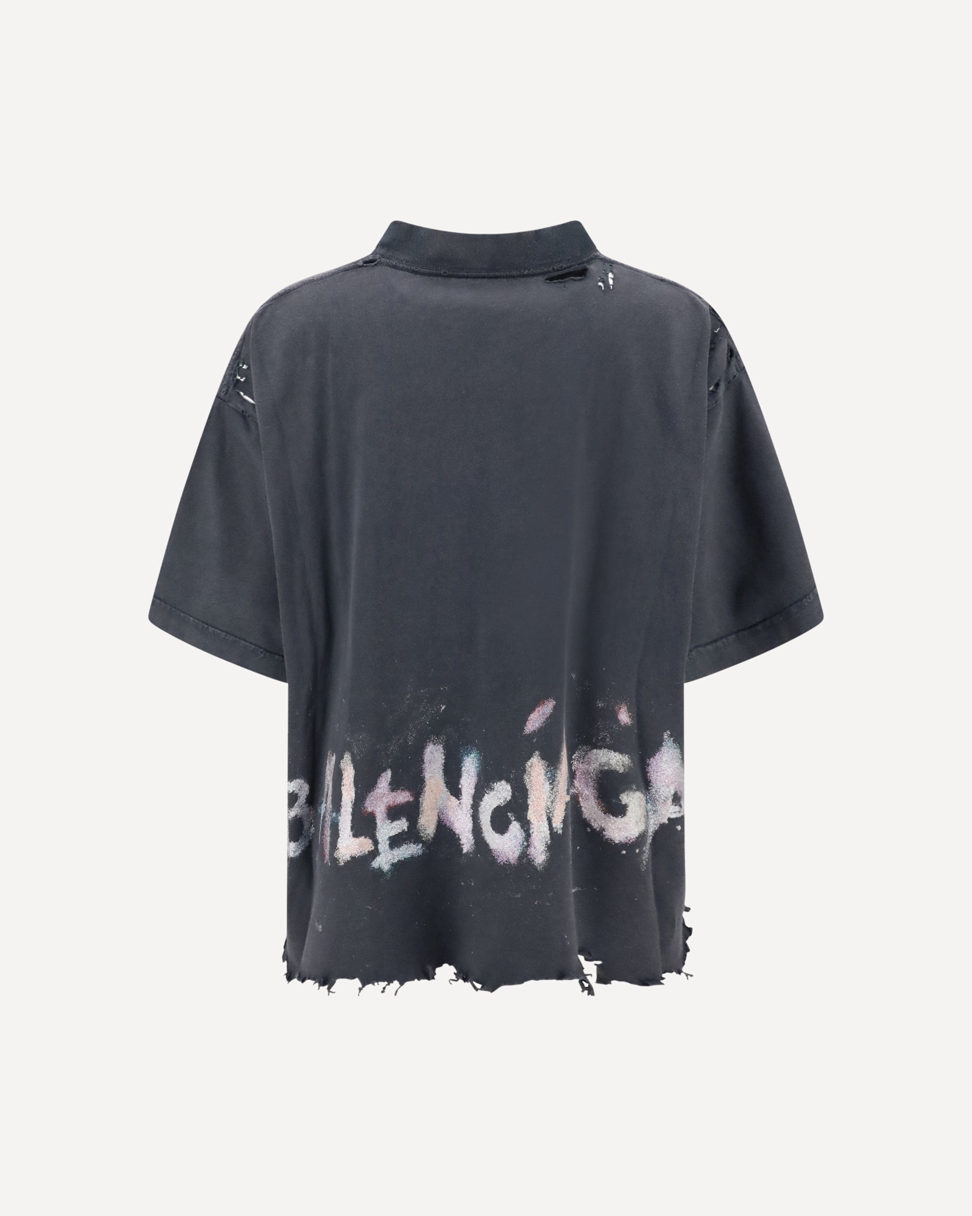 La T-Shirt in cotone di Balenciaga è un capo audace e moderno, che unisce comfort e stile contemporaneo. Il modello cropped con girocollo a costine offre una vestibilità chic e dinamica. L'iconico logo ricamato sul fronte aggiunge un tocco di riconoscibilità, mentre la stampa glitterata del monogramma sul pannello posteriore conferisce un effetto luminoso e originale. Il trattamento destroyed dona alla T-shirt un aspetto vissuto, aggiungendo un carattere distintivo e urbano al look.