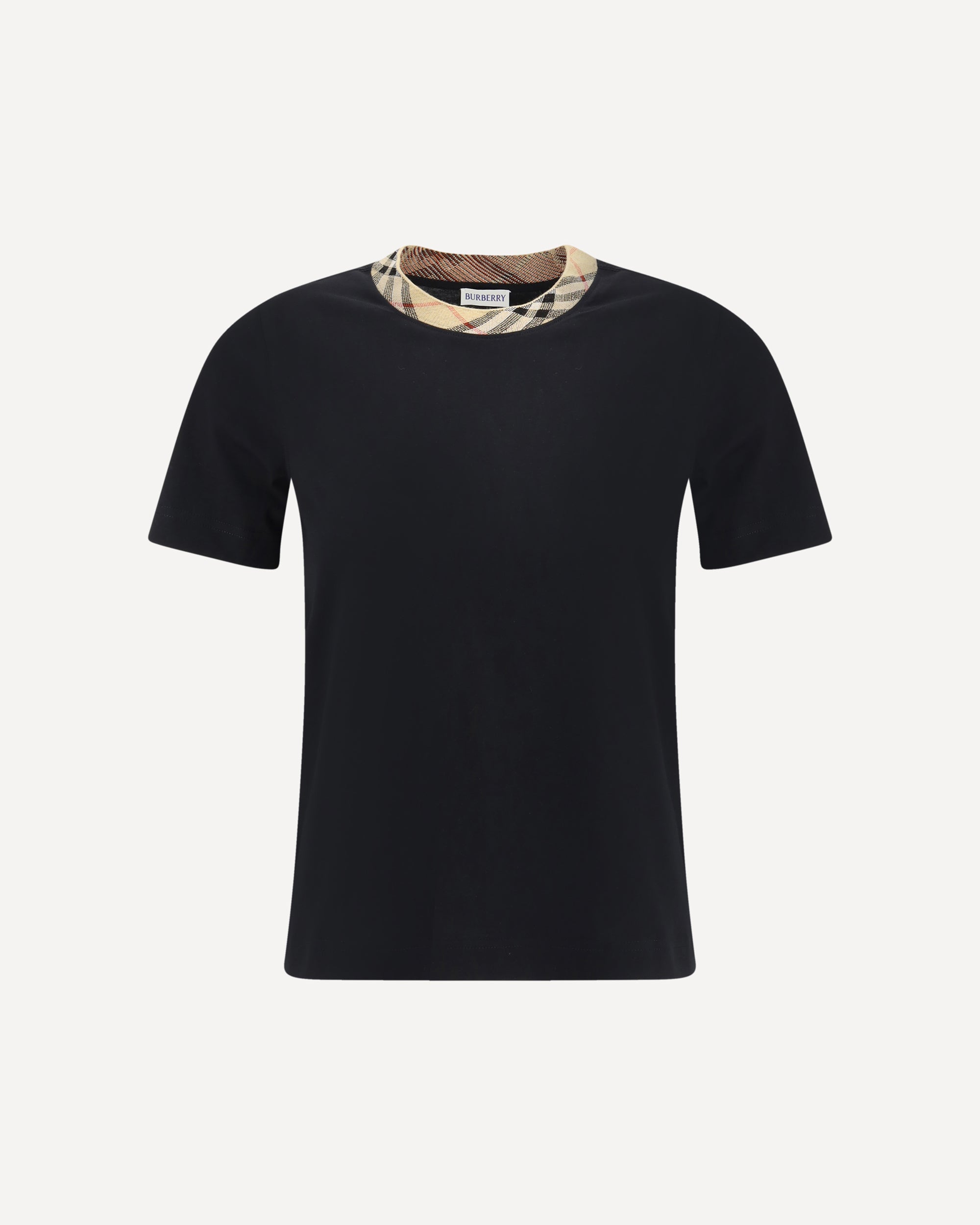 La T-Shirt di Burberry unisce semplicità e stile distintivo. Realizzata in cotone, presenta un taglio essenziale con girocollo arricchito dal classico pattern Archivio Check, dettaglio iconico che richiama l’eredità del brand. Un capo versatile, perfetto per aggiungere un tocco riconoscibile anche ai look più casual.