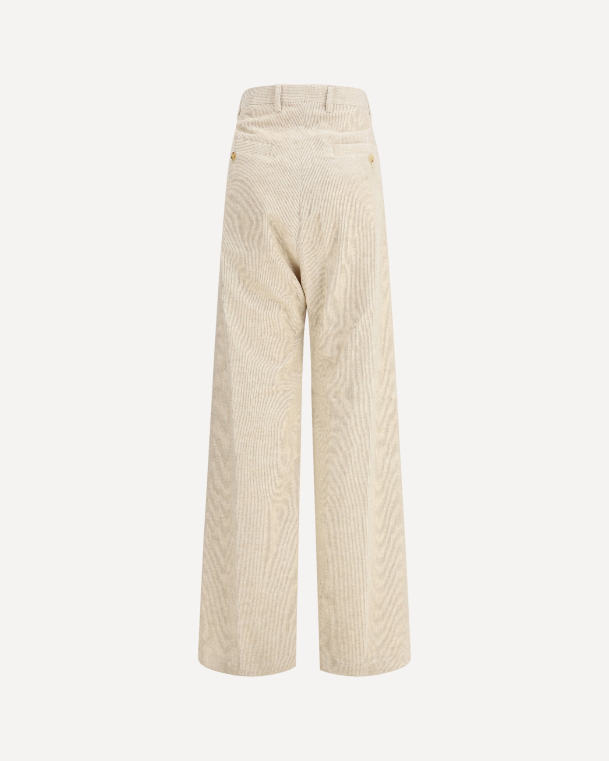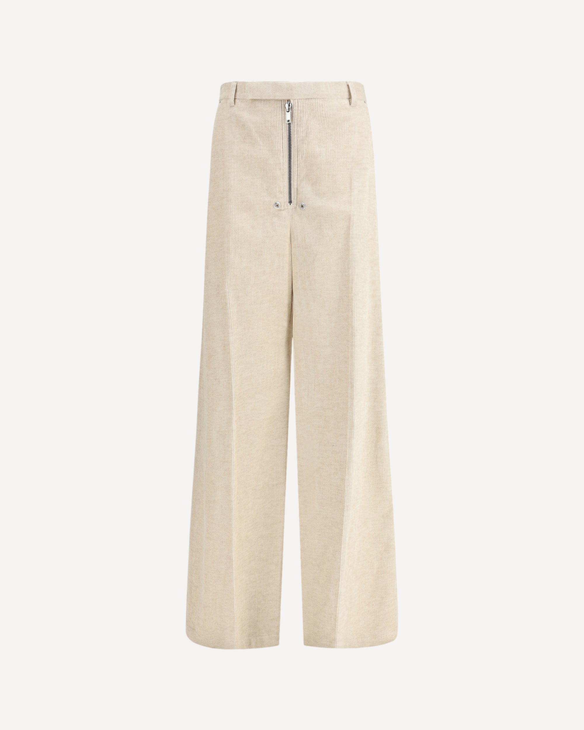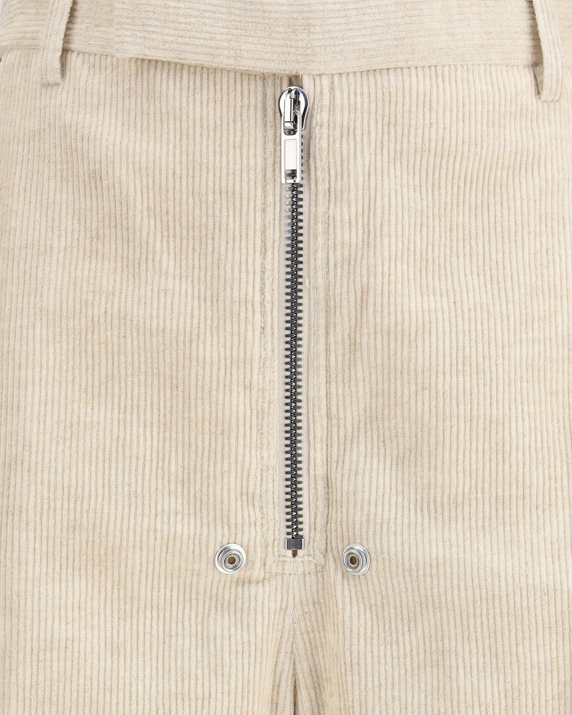 I Pantaloni in velluto a costine di Rick Owens presentano un design distintivo con cavallo basso e gamba larga, che riflette lo stile audace e contemporaneo del brand. Dotati di cintura con passanti, chiusura frontale con bottoni e zip centrale a vista, sono completati da due bottoni a pressione sul fondo. Le tasche laterali a filetto con rivetti e occhielli, insieme alle due tasche posteriori con bottoni a pressione e impunture, aggiungono funzionalità e carattere al capo.
