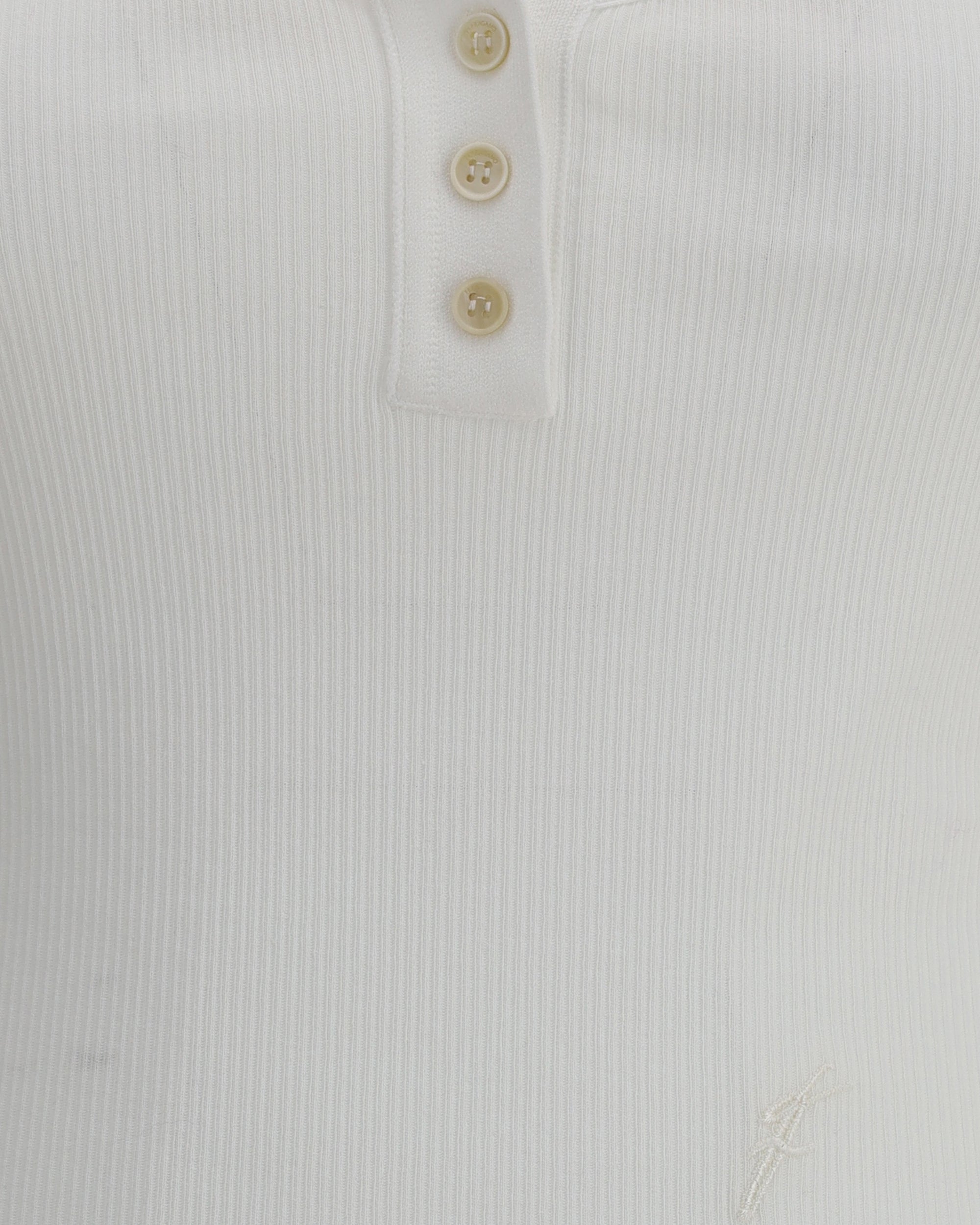 Il Top di Ferragamo è un capo elegante e sofisticato, caratterizzato da uno scollo rotondo che dona una linea pulita e raffinata. La chiusura frontale a tre bottoncini aggiunge un dettaglio distintivo, mentre il design a costine conferisce una texture sottile e un fit aderente che valorizza la figura. L'iconico logo del brand, posizionato sul fronte, rappresenta un tocco di lusso discreto ma riconoscibile. Realizzato con materiali di alta qualità, questo top è perfetto per un look elegante e versatile, ideale sia per occasioni più formali che per outfit casual-chic.
