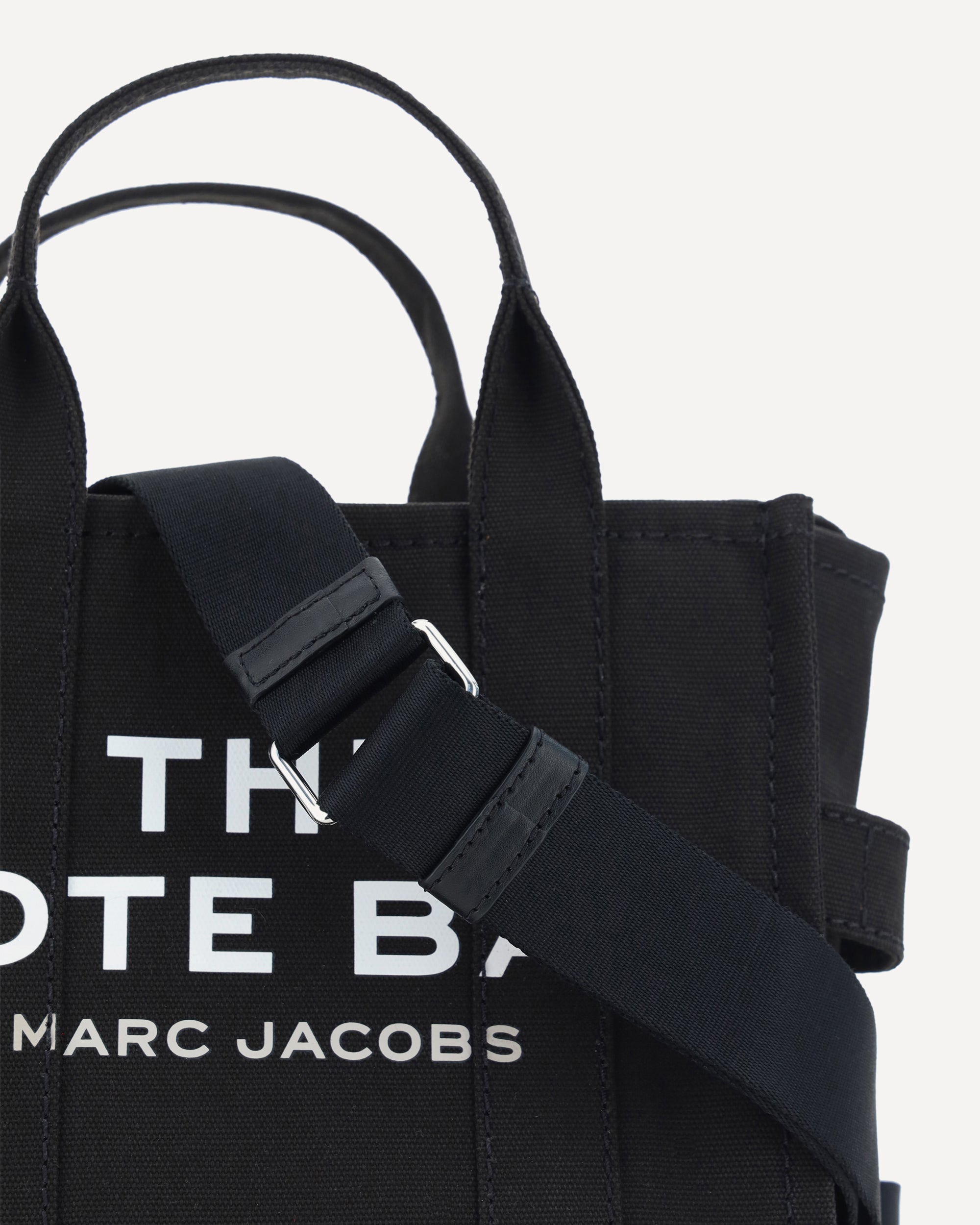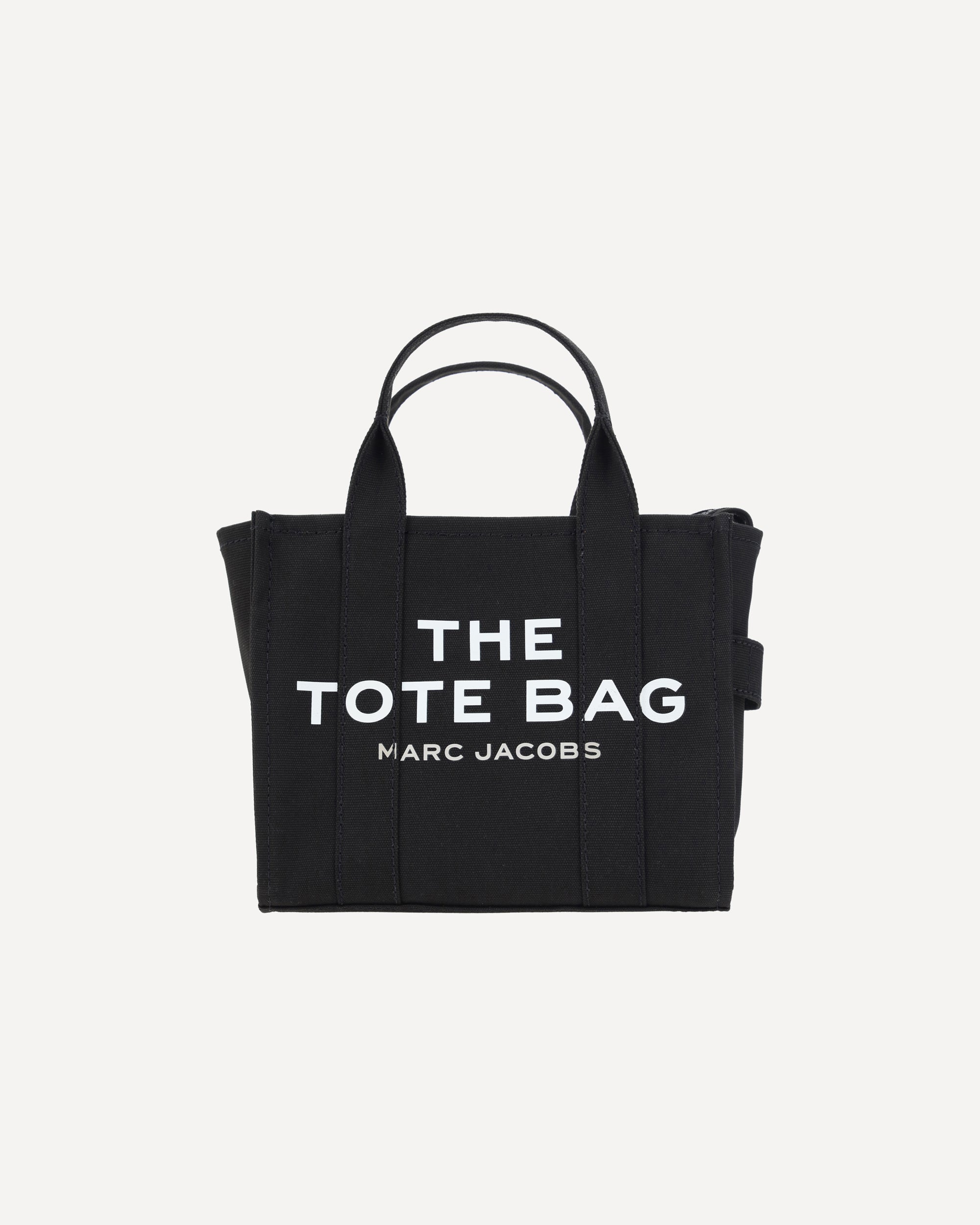 Borsa a Mano The Small Tote in Cotone di Marc Jacobs, due manici tubolari rigidi nella parte superiore, chiusura superiore con cerniera, unica tasca interna, tracolla piatta regolabile e removibile, stampa jacquard a contrasto iconico monogramma brand sul fronte, patch a contrasto con iconico monogramma brand applicata sul retro.