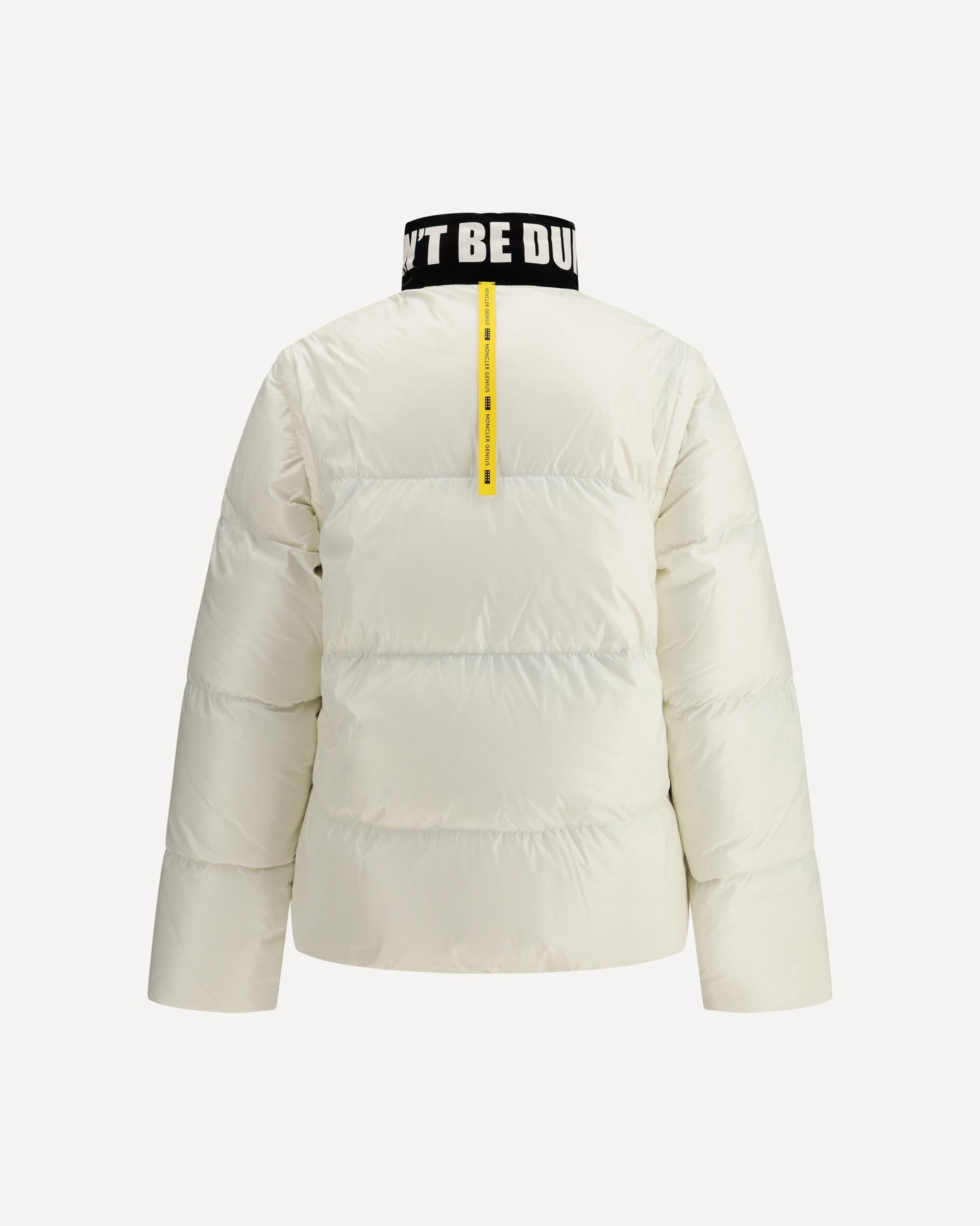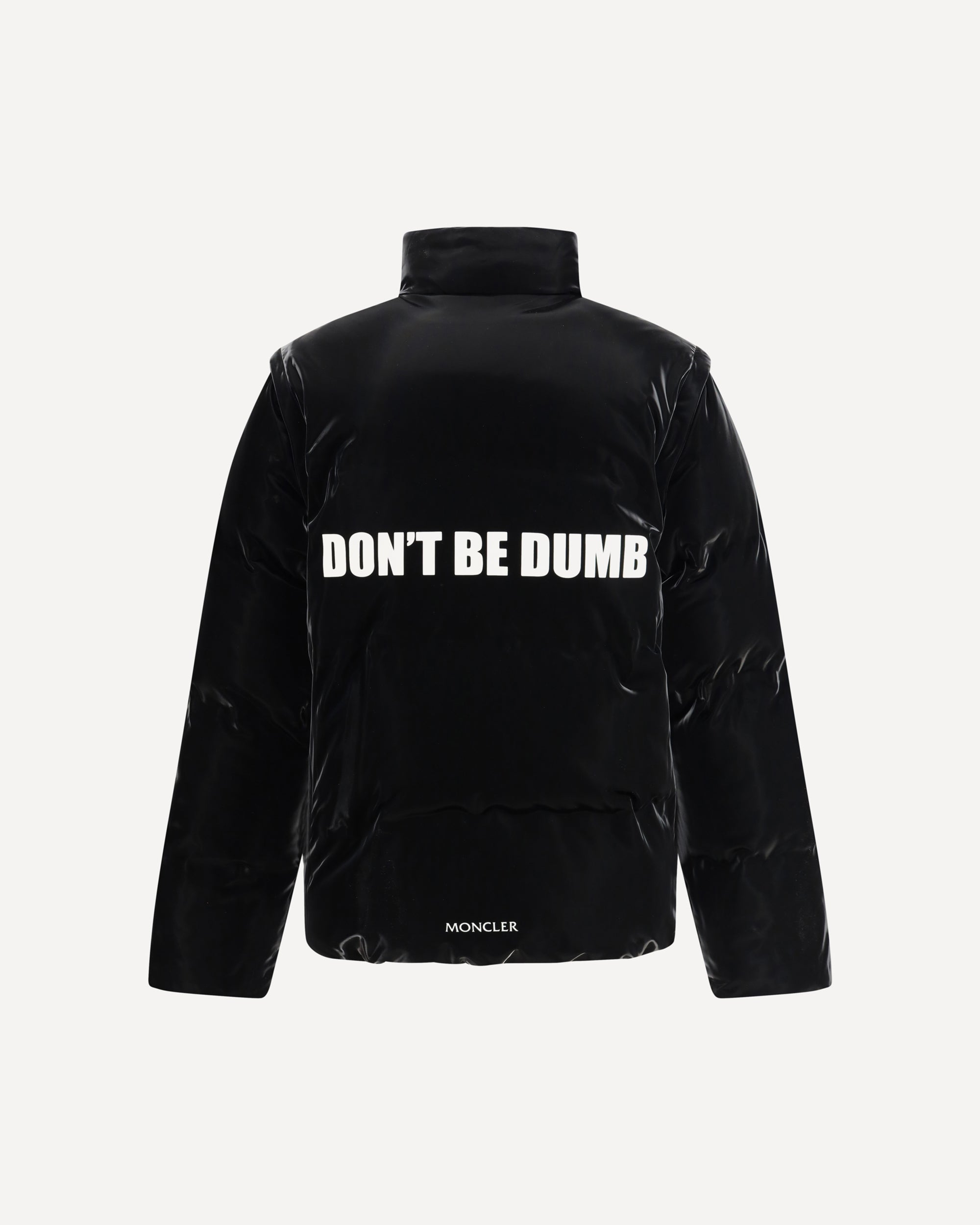 La Throttle Jacket Reversibile Moncler x A$AP Rocky è un capo trasformabile che unisce design modulare e spirito urbano. Dotata di maniche removibili tramite zip, può essere indossata come giacca o come gilet, adattandosi con versatilità alle diverse occasioni. L’imbottitura garantisce calore e comfort, mentre il collo alto a contrasto con scritta dona un carattere deciso. Sul lato reversibile spicca una scritta sulla schiena che aggiunge un dettaglio grafico d’impatto. Le due tasche frontali e la chiusura a zip completano un capo che fonde funzionalità, estetica contemporanea e DNA street.