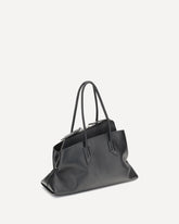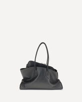 La Borsa a Secchiello La Bambola grande è un accessorio sofisticato dal design contemporaneo e ricercato. Realizzata in pelle liscia, si distingue per la sua silhouette asimmetrica e per i dettagli curati, come la chiusura frontale con anello in metallo dorato e il logo applicato sul fondo. Dotata di due maniglie on-top e di una tracolla regolabile e rimovibile, offre una portabilità versatile. L’interno, con compartimento singolo, è completato da una pratica tasca con cerniera, perfetta per custodire con ordine gli oggetti essenziali.