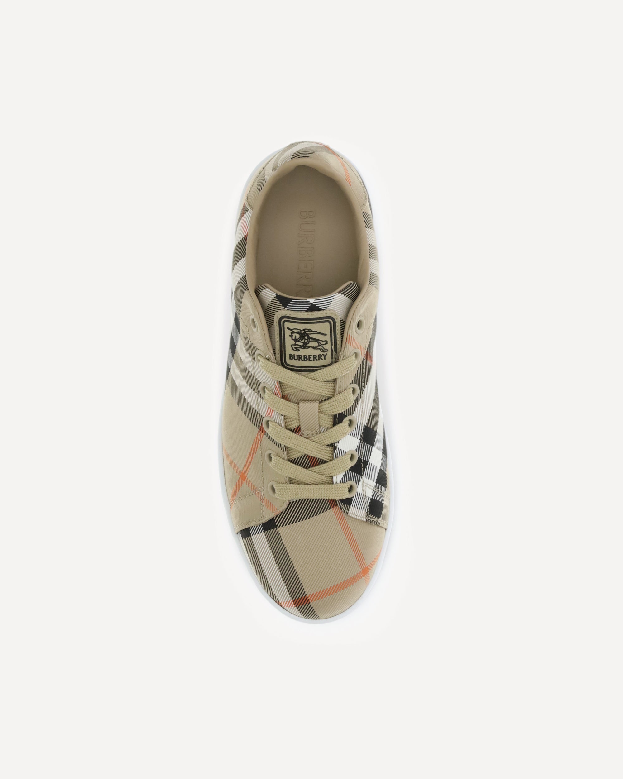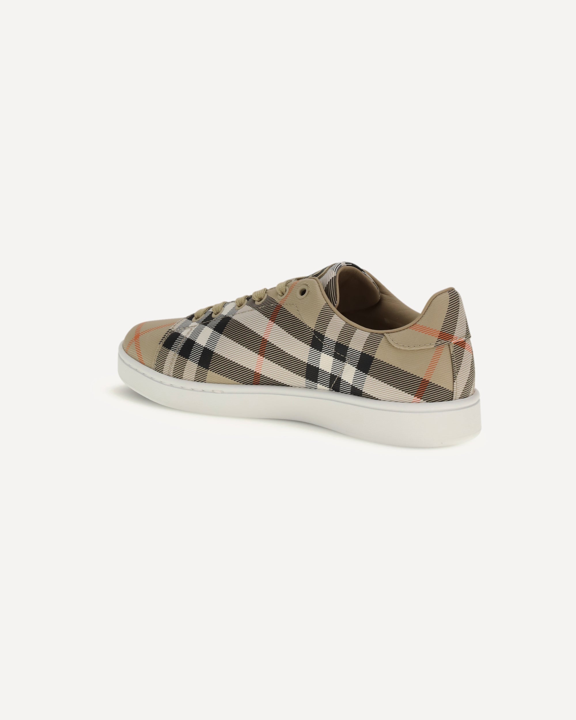 Le Sneakers Set in tela Check di Burberry uniscono stile iconico e comfort quotidiano. Presentano chiusura con lacci, linguetta imbottita con etichetta logata e caviglia imbottita per maggiore sostegno. Il logo impresso all’interno e la suola logata completano il modello con dettagli distintivi del brand, rendendole perfette per un look casual e riconoscibile.
