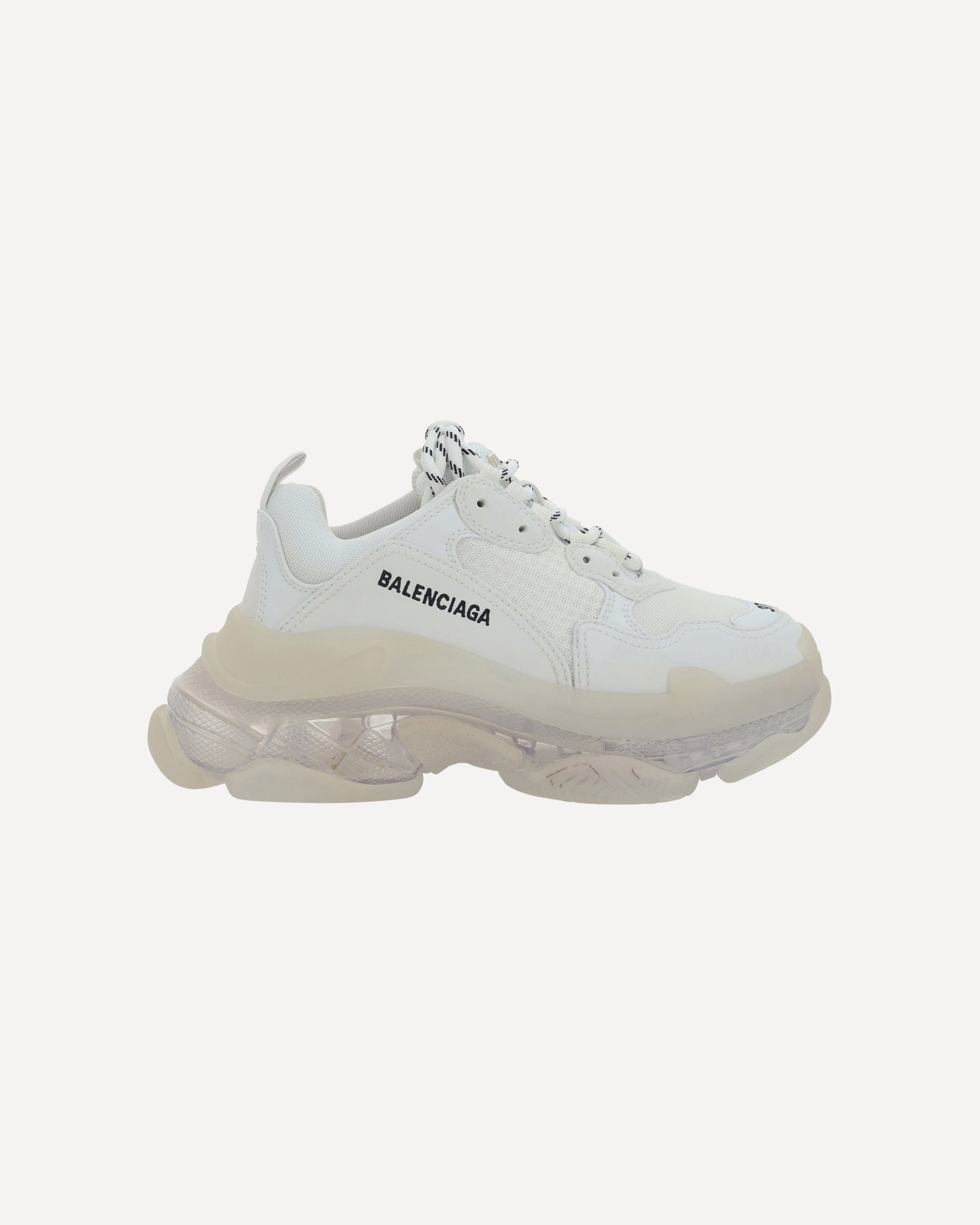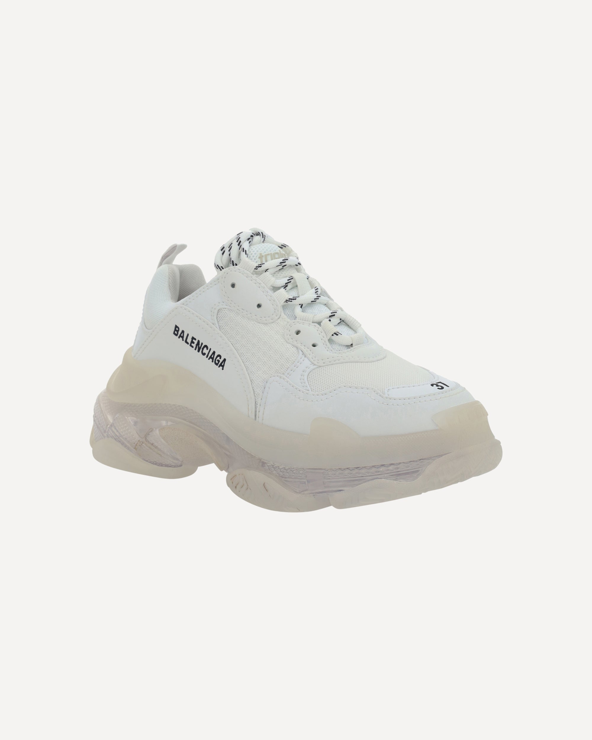 Sneakers Triple S in Nylon Nero di Balenciaga, chiusura a lacci, patch logo sulla linguetta imbottita, logo ricamato in sul lato, suola larga con logo, brand logo stampato sulla soletta interna.