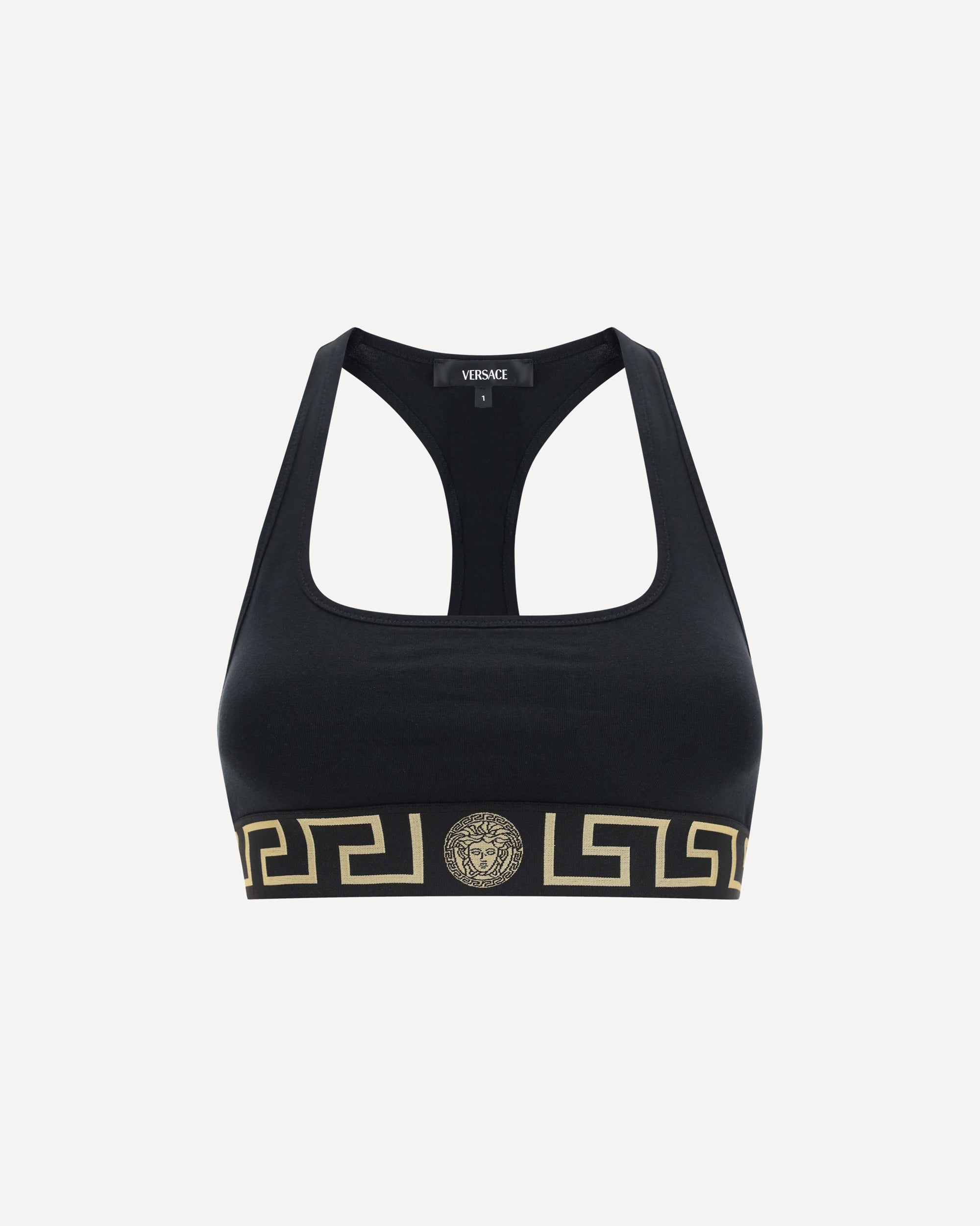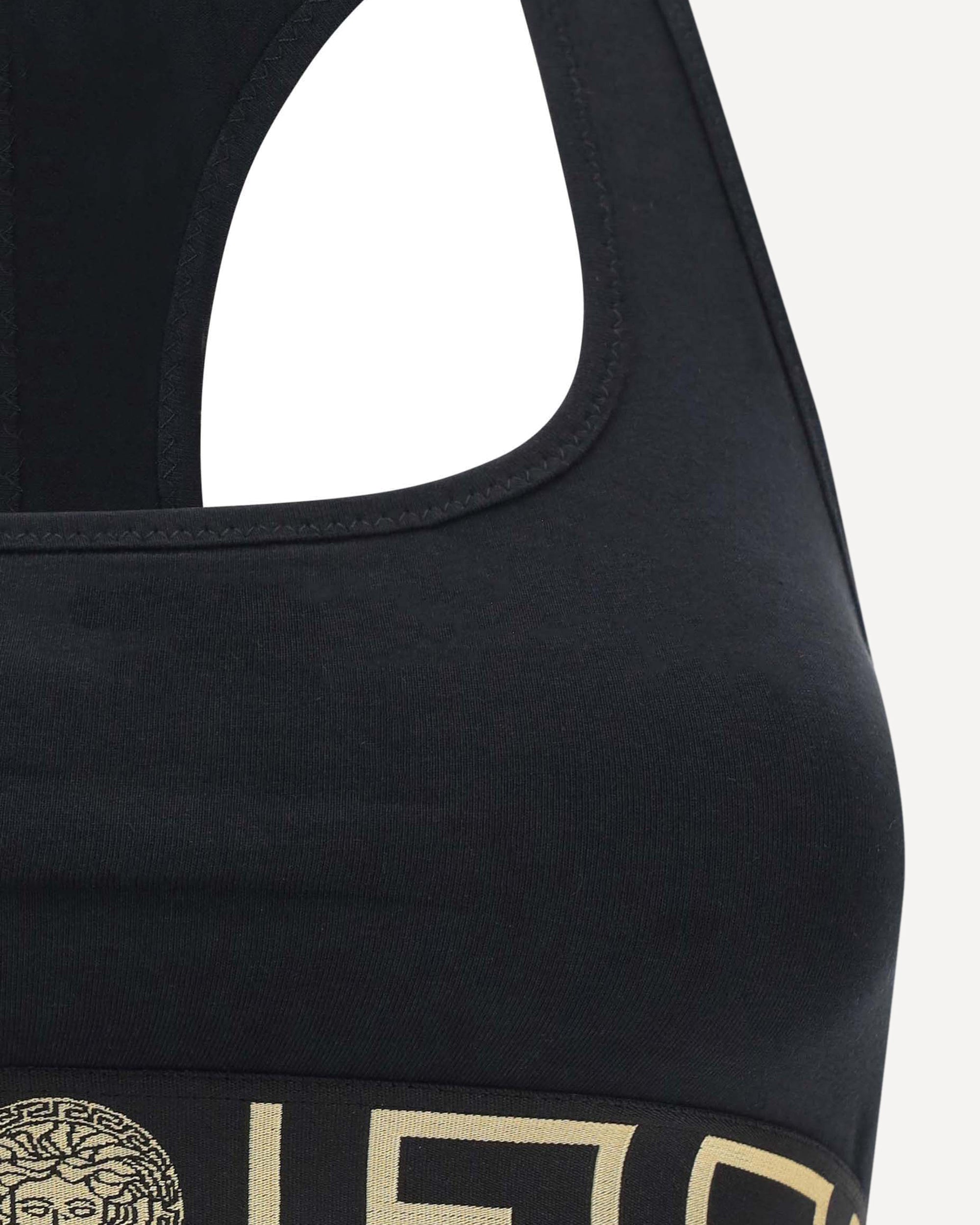 Top Intimo in Cotone di Versace, giro busto elasticizzato con iconico motivo brand ripetuto all-over, vestibilità aderente.