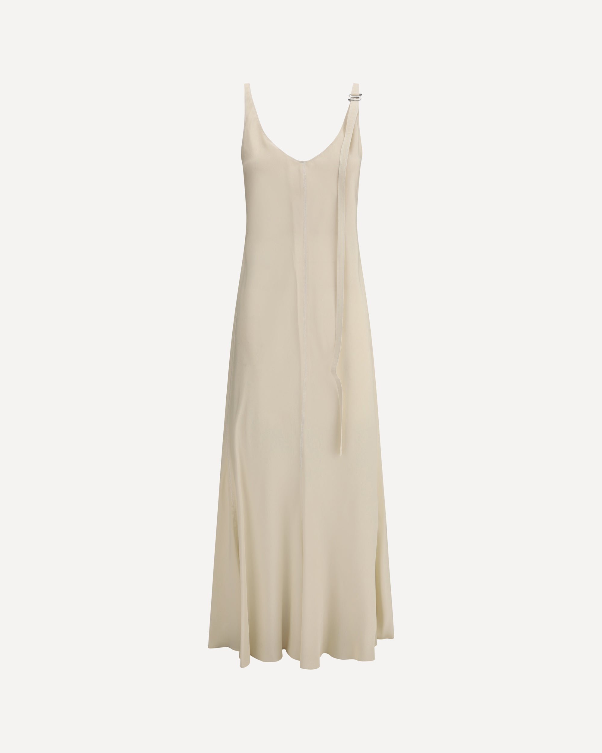 L'abito Unione di Max Mara Sportmax è un capo elegante e minimalista, caratterizzato da un modello senza maniche che lo rende perfetto per la stagione più calda. Le spalline sottili e regolabili permettono di personalizzare la vestibilità, mentre lo scollo sia sul fronte che sul retro aggiunge un tocco di sensualità sobria.