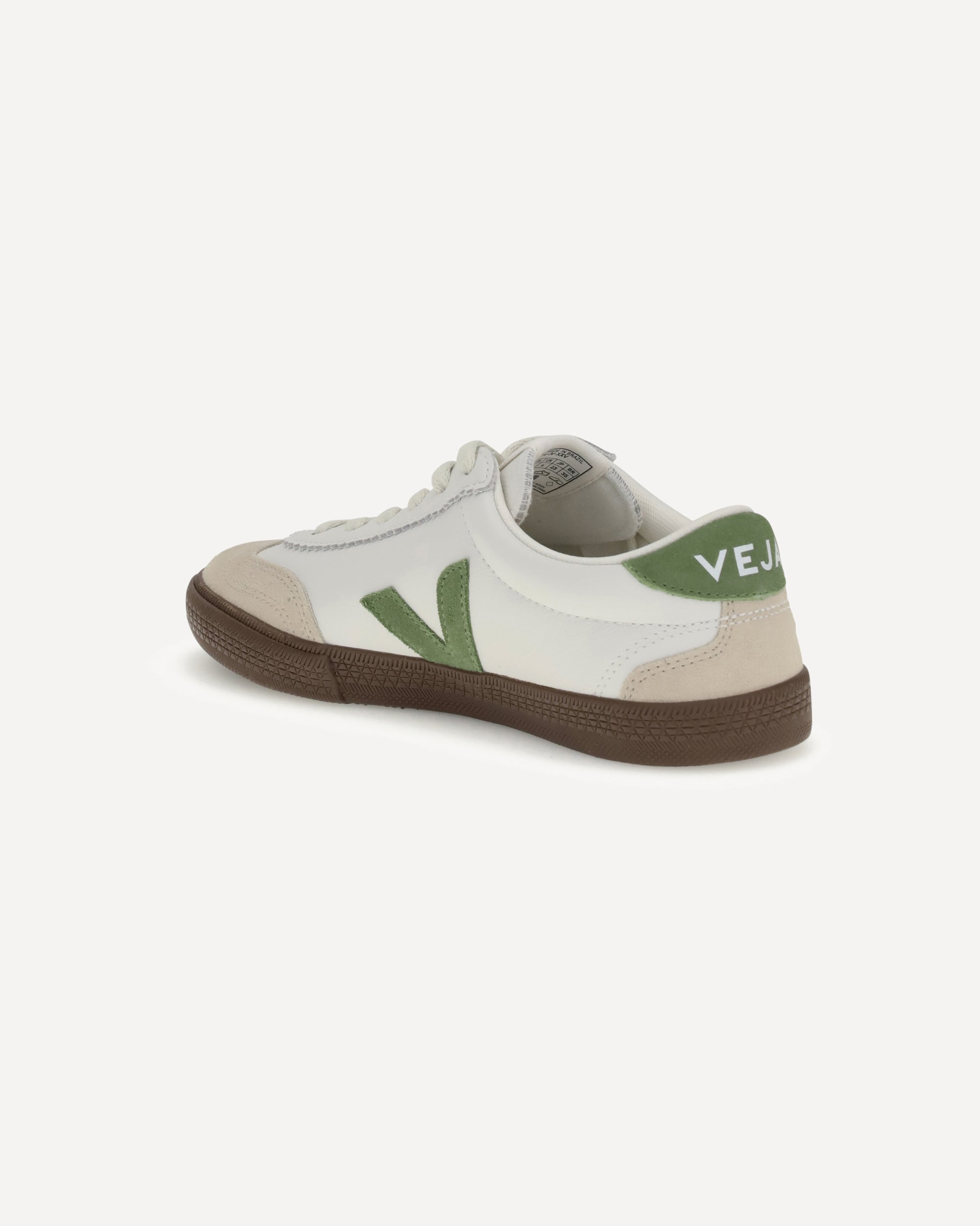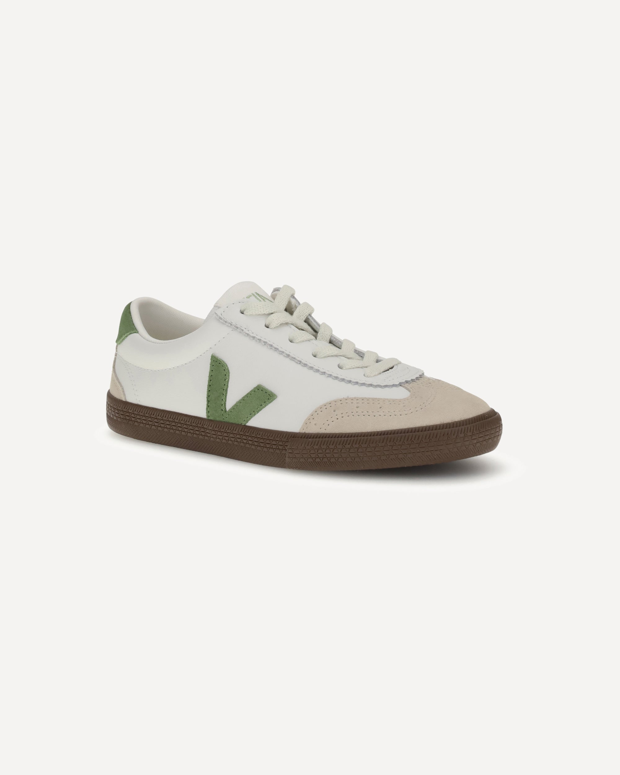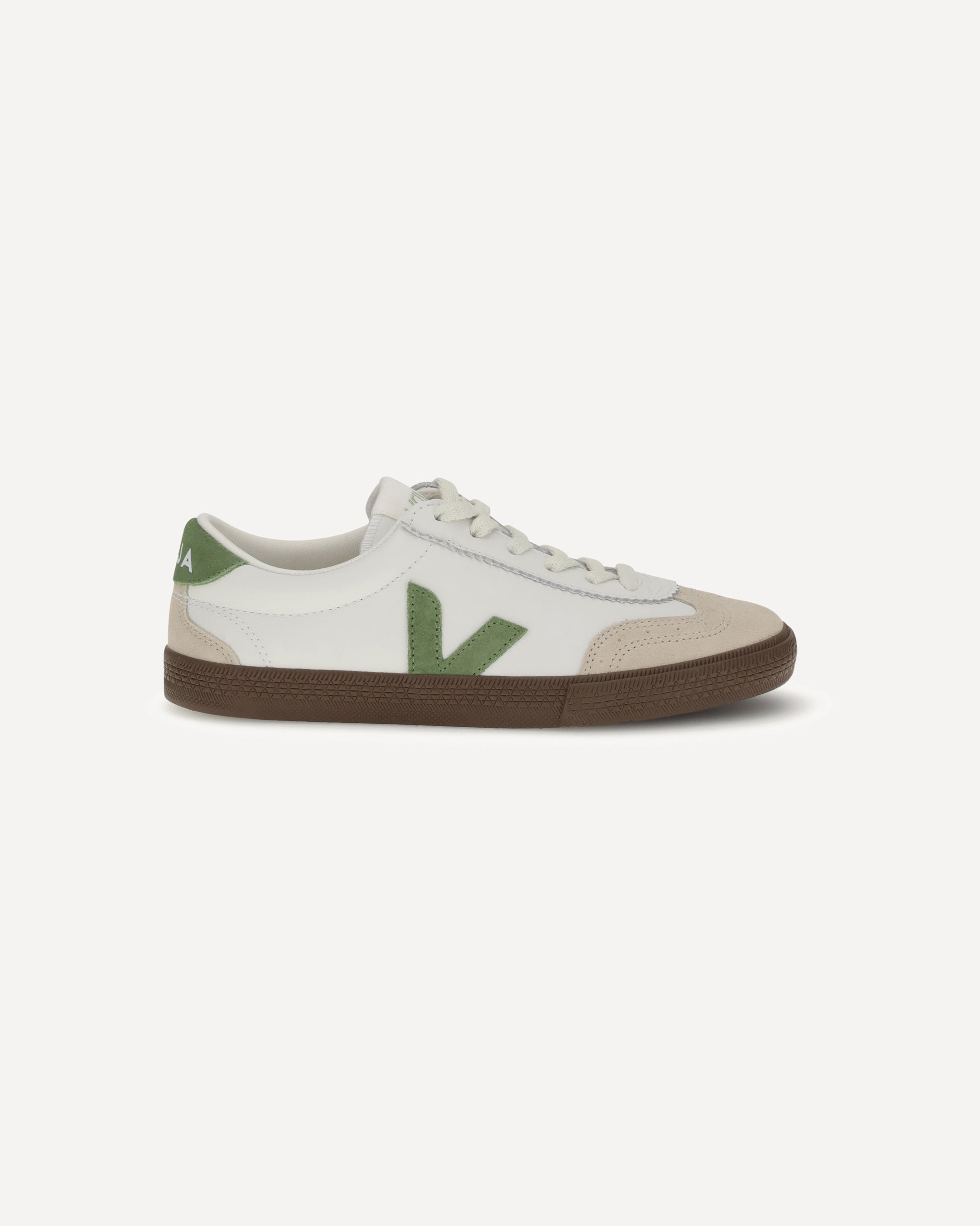 Le Sneakers Volley di Veja si ispirano alle iconiche scarpe da pallavolo brasiliane degli anni ’70, reinterpretate in chiave moderna. Caratterizzate da punta arrotondata e chiusura con lacci, presentano una suola piatta per un comfort quotidiano. L’iniziale “V” cucita lateralmente e il logo sul tallone aggiungono un tocco distintivo, mantenendo fede allo stile autentico e sostenibile del brand.