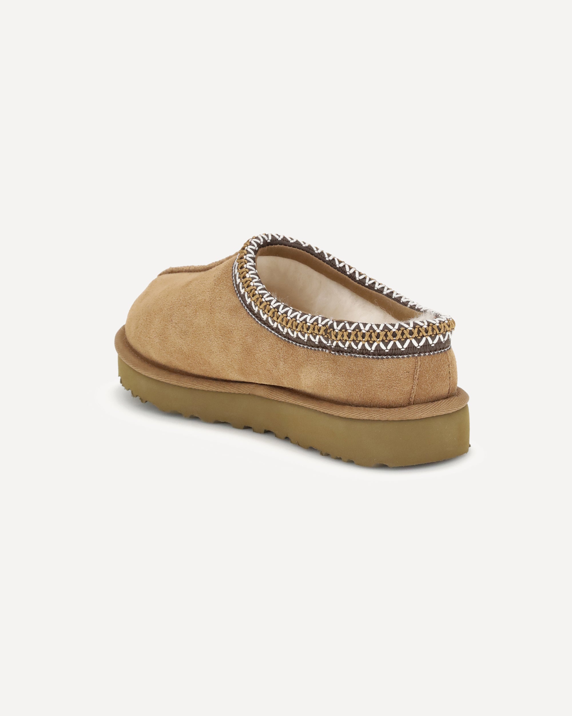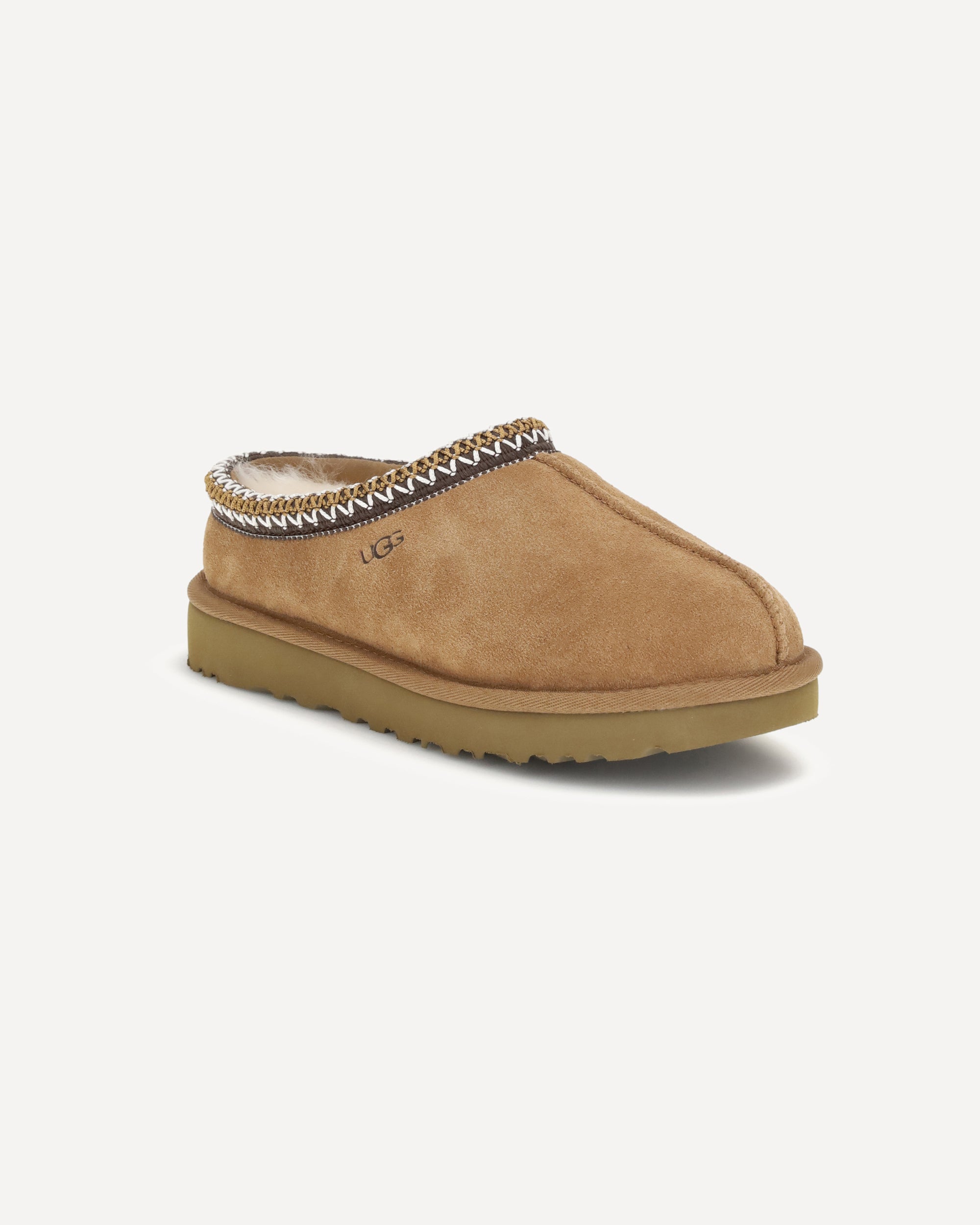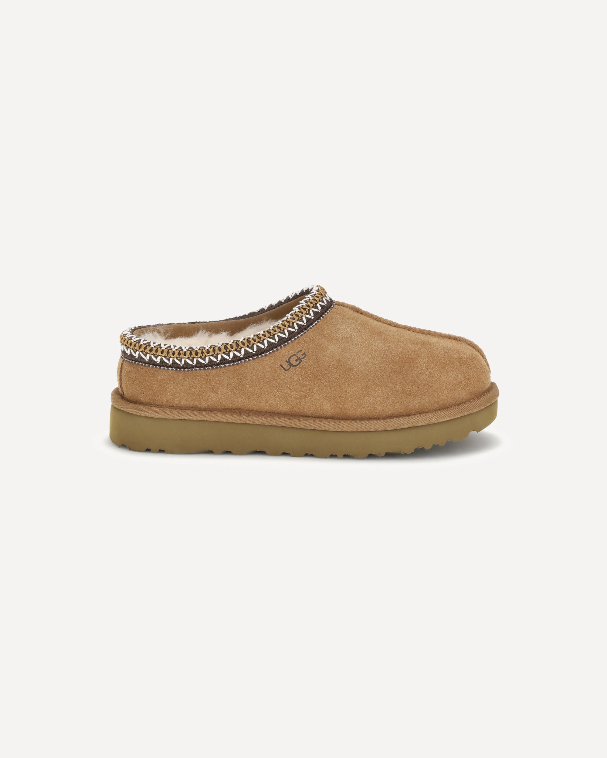 Le Mules Tasman II di UGG uniscono comfort e stile casual. Realizzate con tomaia in morbido camoscio, presentano una fodera della mascherina in montone che garantisce calore e morbidezza. La suola interna in EVA derivata da canna da zucchero assicura leggerezza e sostegno. Il logo UGG, stampato a caldo in rilievo, e l’etichetta in tessuto sulla soletta completano il design con un tocco distintivo e riconoscibile.