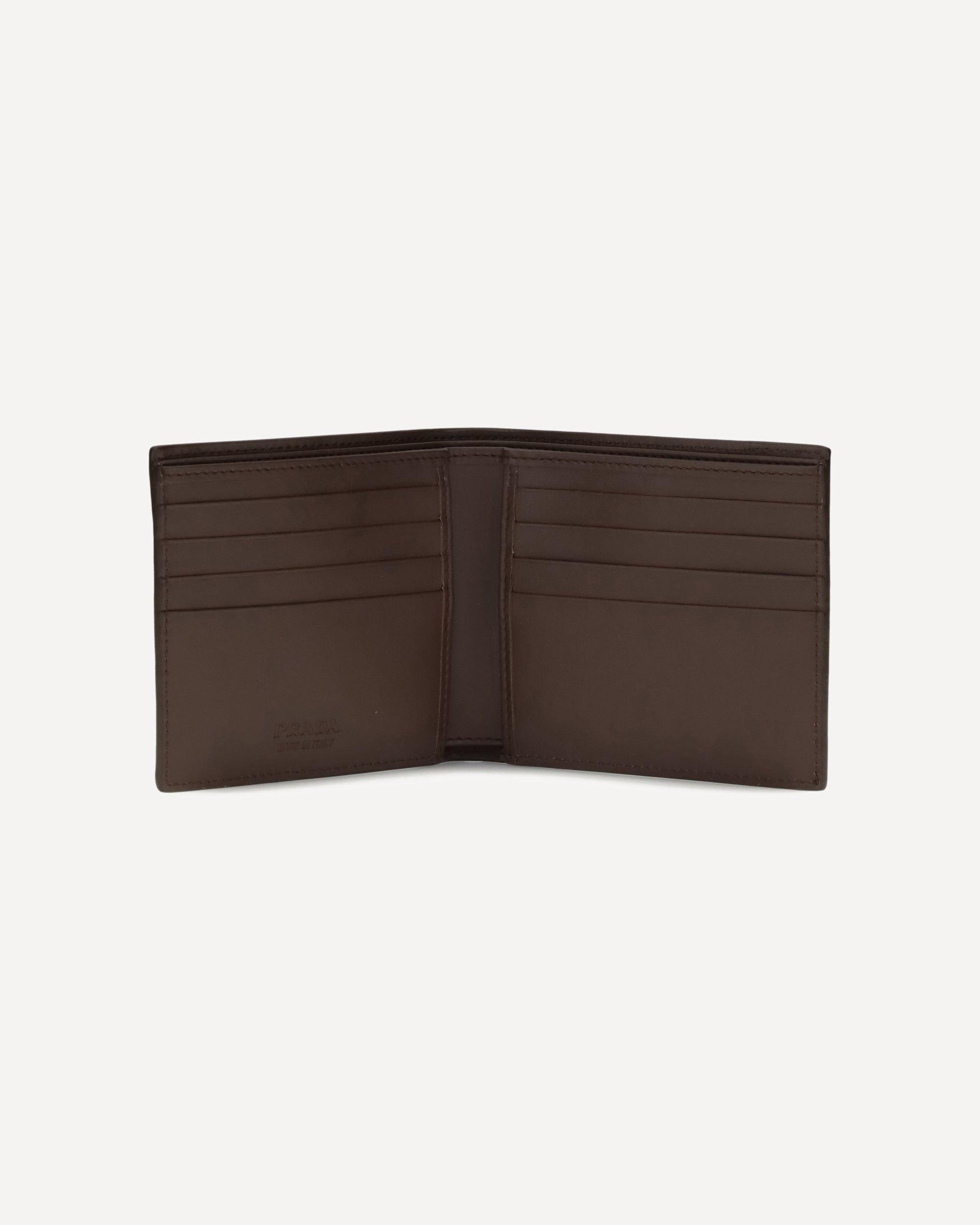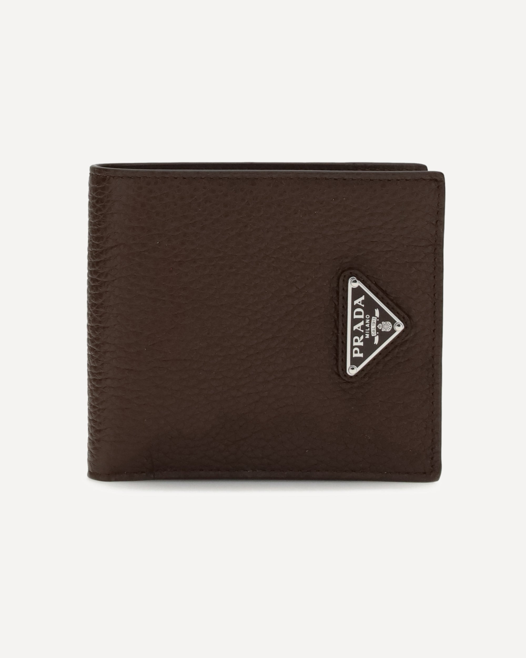 Il Portafogli Bifold in pelle di Prada è un modello bifold, con uno scomparto porta banconote interno e slot portacarte per una funzionalità ottimale. Sul fronte spicca l'iconica placca triangolare smaltata, mentre all'interno il monogramma del brand è inciso con eleganza. L'interno in pelle conferisce un tocco di lusso e qualità al design.