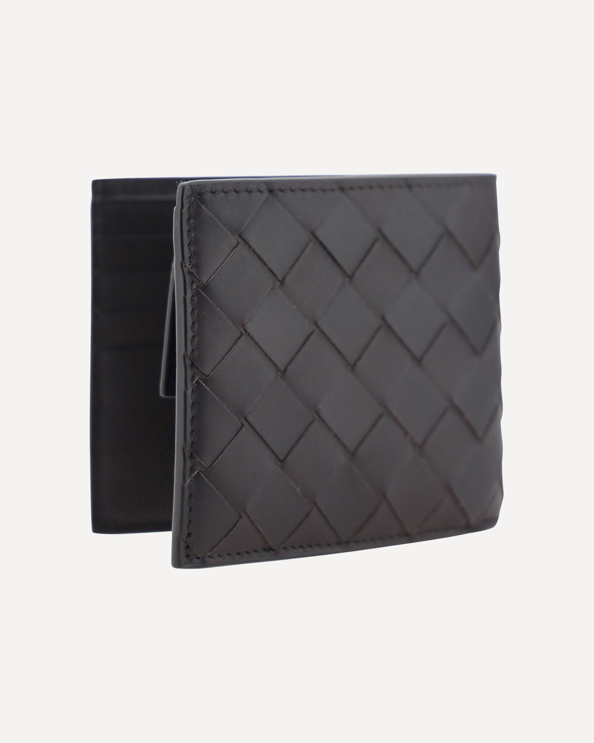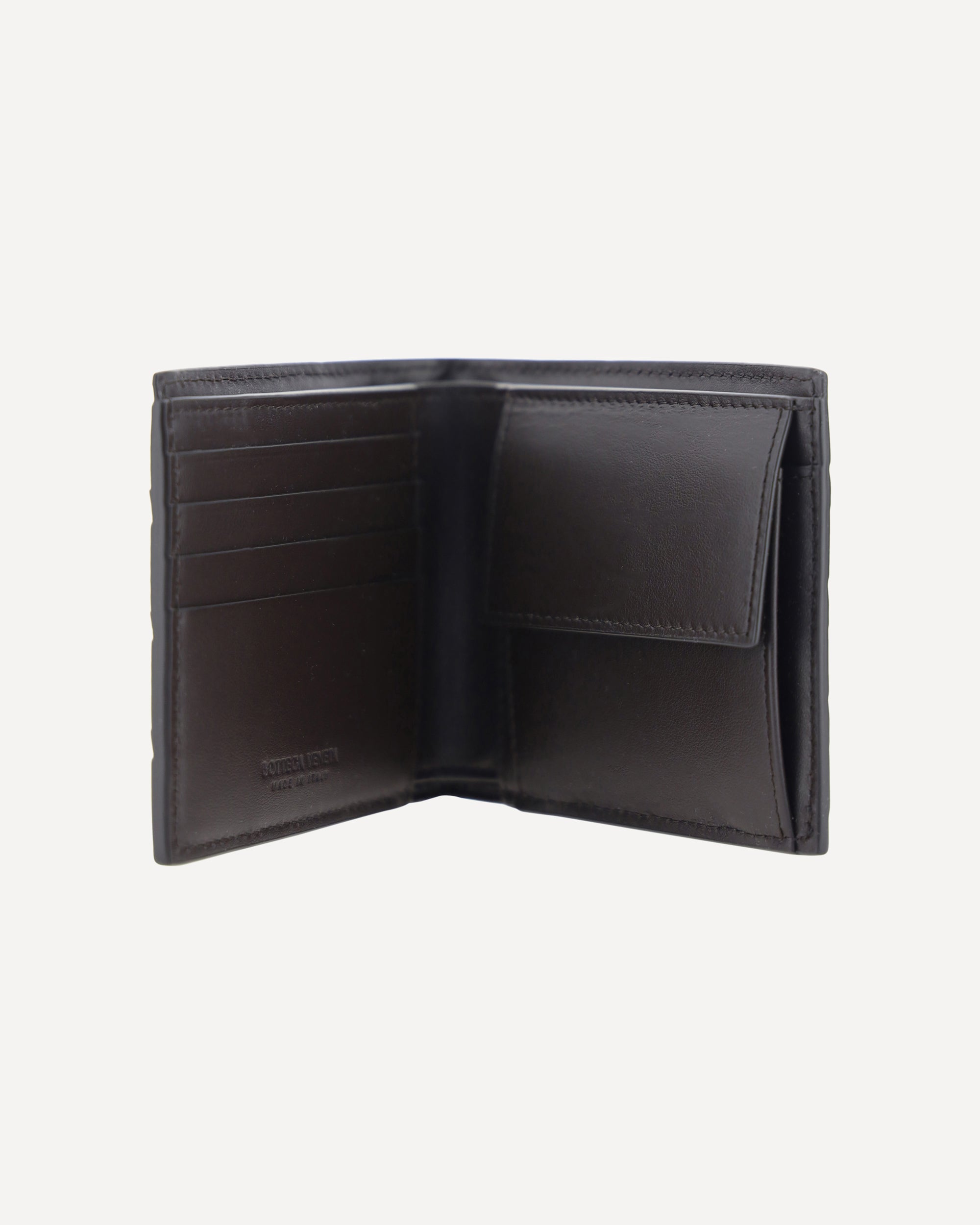Portafoglio in Pelle di Bottega Veneta, iconico design intrecciato del brand, fodera interna in pelle liscia, iconico monogramma brand stampato a pressione all'interno, slot portacarte interni, scomparto porta monete con bottone a pressione per chiusura.