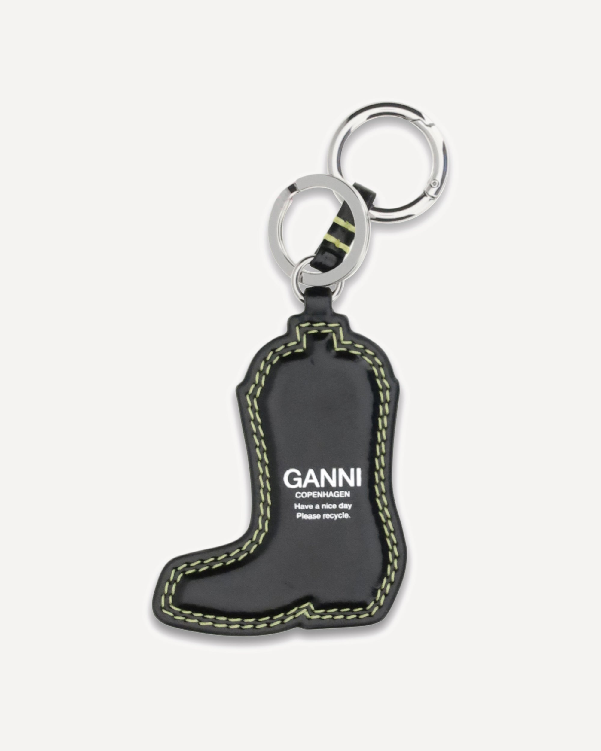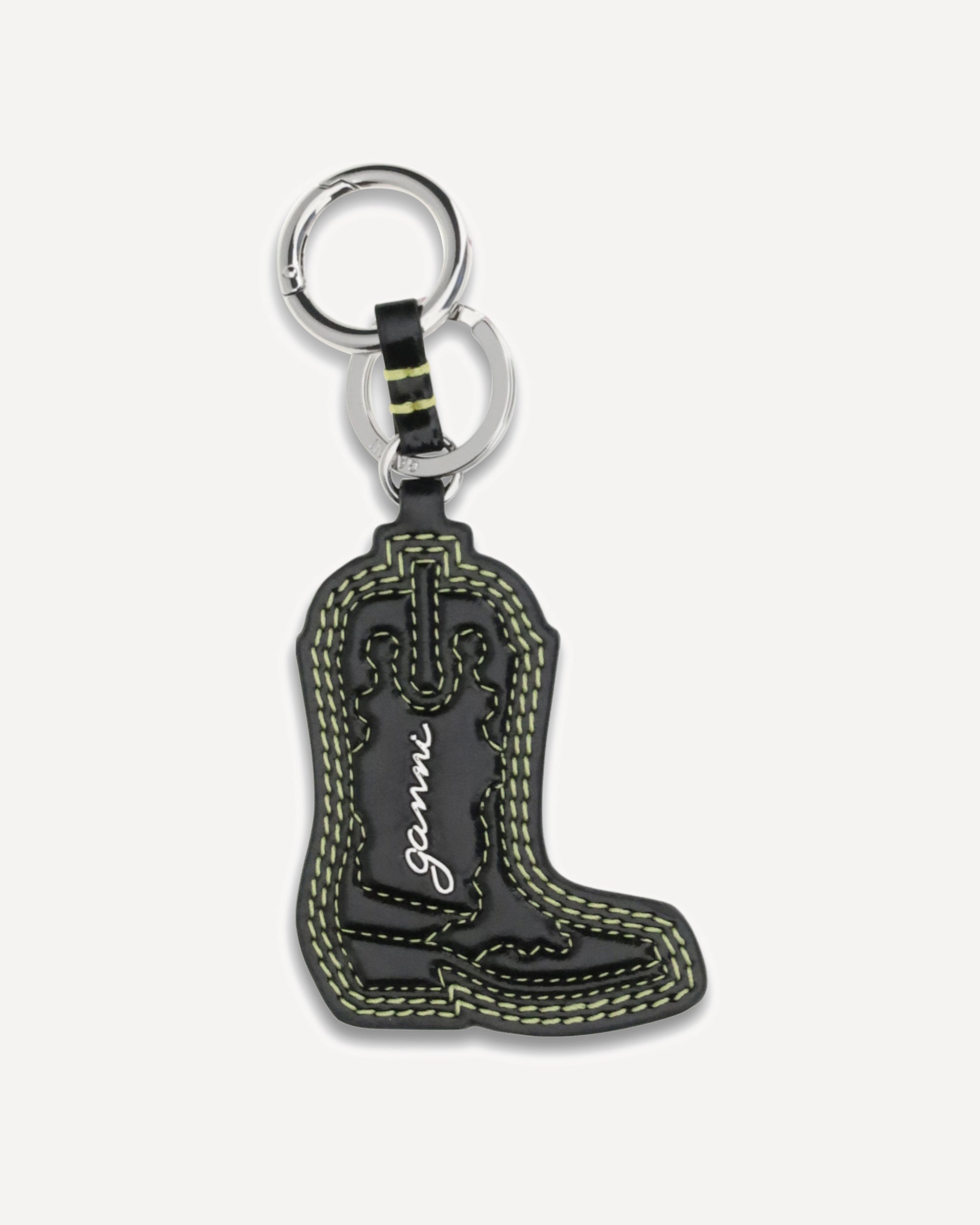 Il Portachiavi con stivale western di Ganni riproduce la forma di un classico stivale da cowboy, arricchito da cuciture a contrasto. Completo di anello e chiusura, è un accessorio originale e pratico, perfetto per aggiungere un tocco di stile anche ai tuoi oggetti quotidiani.