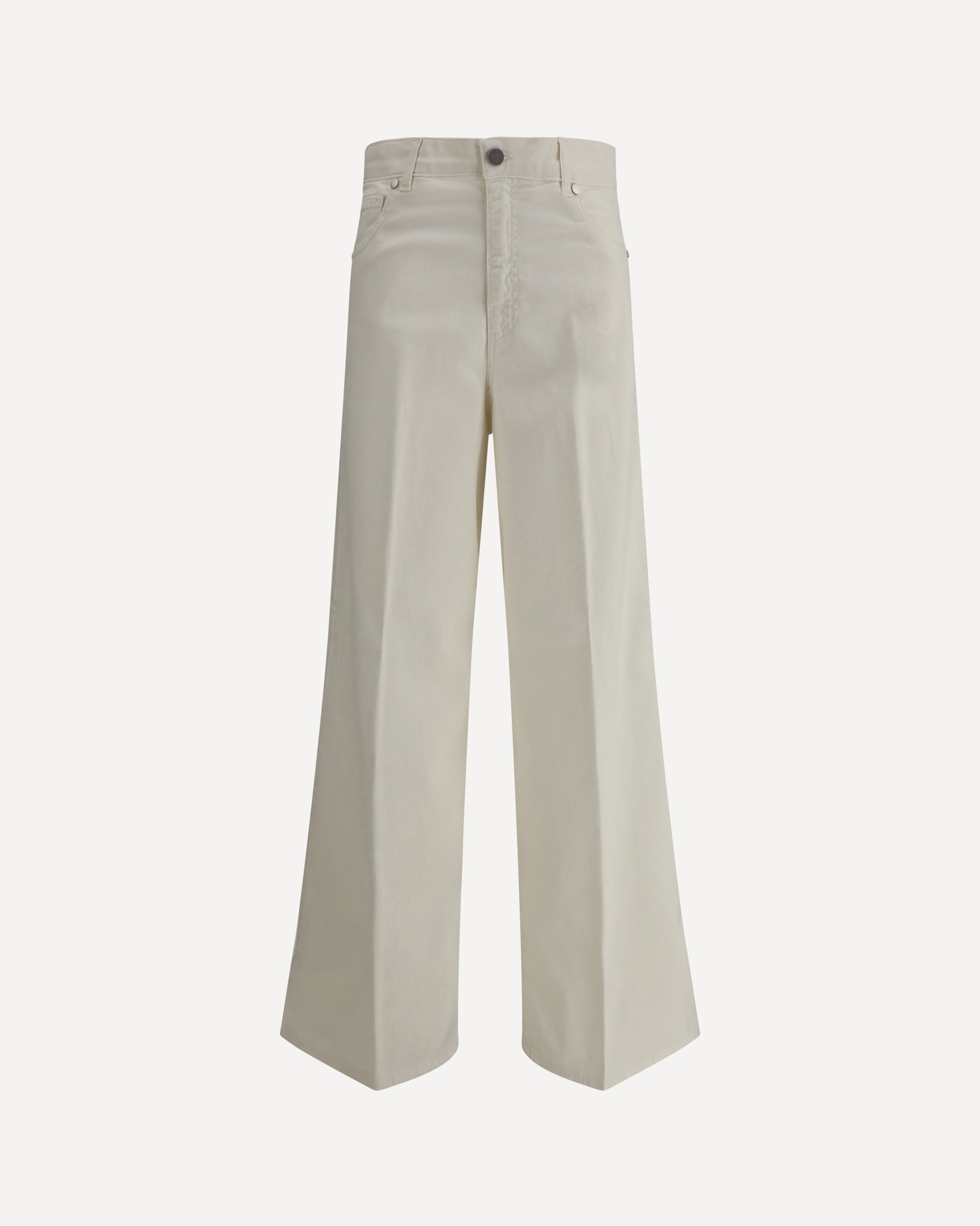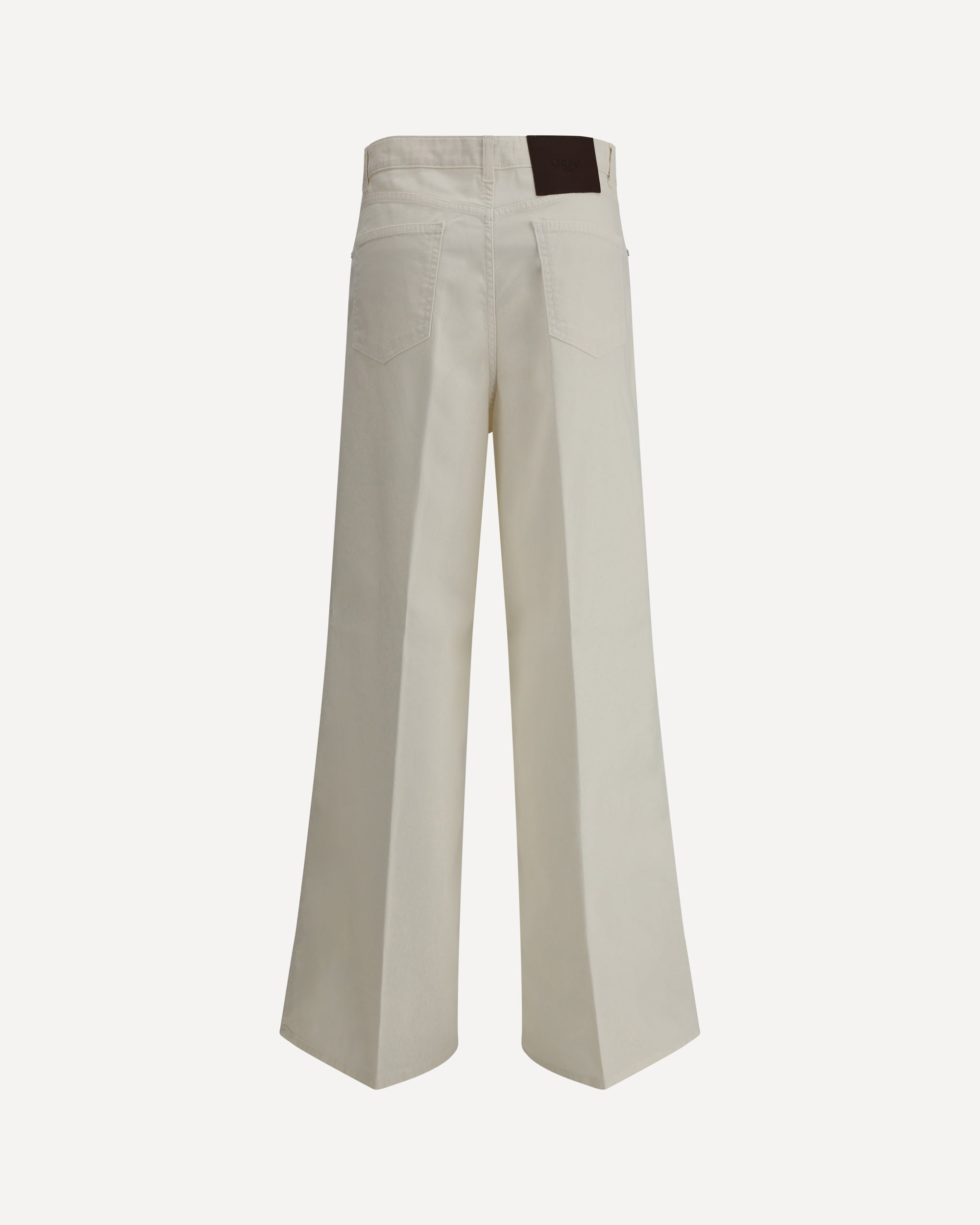 I Jeans wide leg di Cruna sono un capo dallo stile moderno e audace. Il modello cinque tasche offre praticità, mentre la chiusura frontale con cerniera e bottone assicura una vestibilità sicura. I passanti per cintura girovita permettono di personalizzare il look, mentre il patch in pelle con logo applicato sul retro aggiunge un tocco distintivo e di qualità. Con la loro silhouette ampia, questi jeans sono ideali per chi cerca un look casual-chic e un tocco di colore originale.