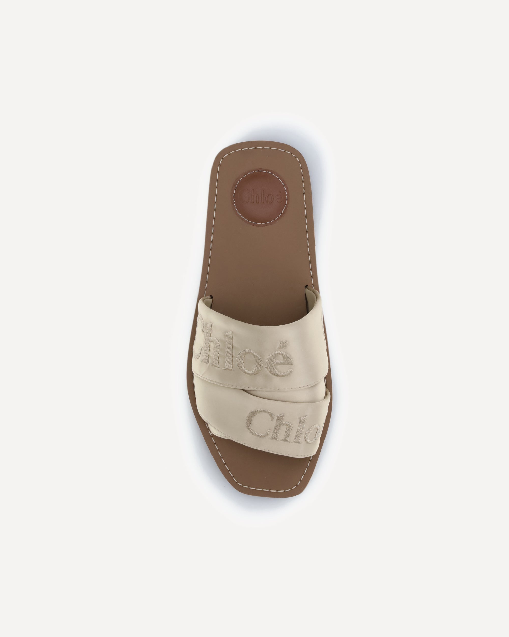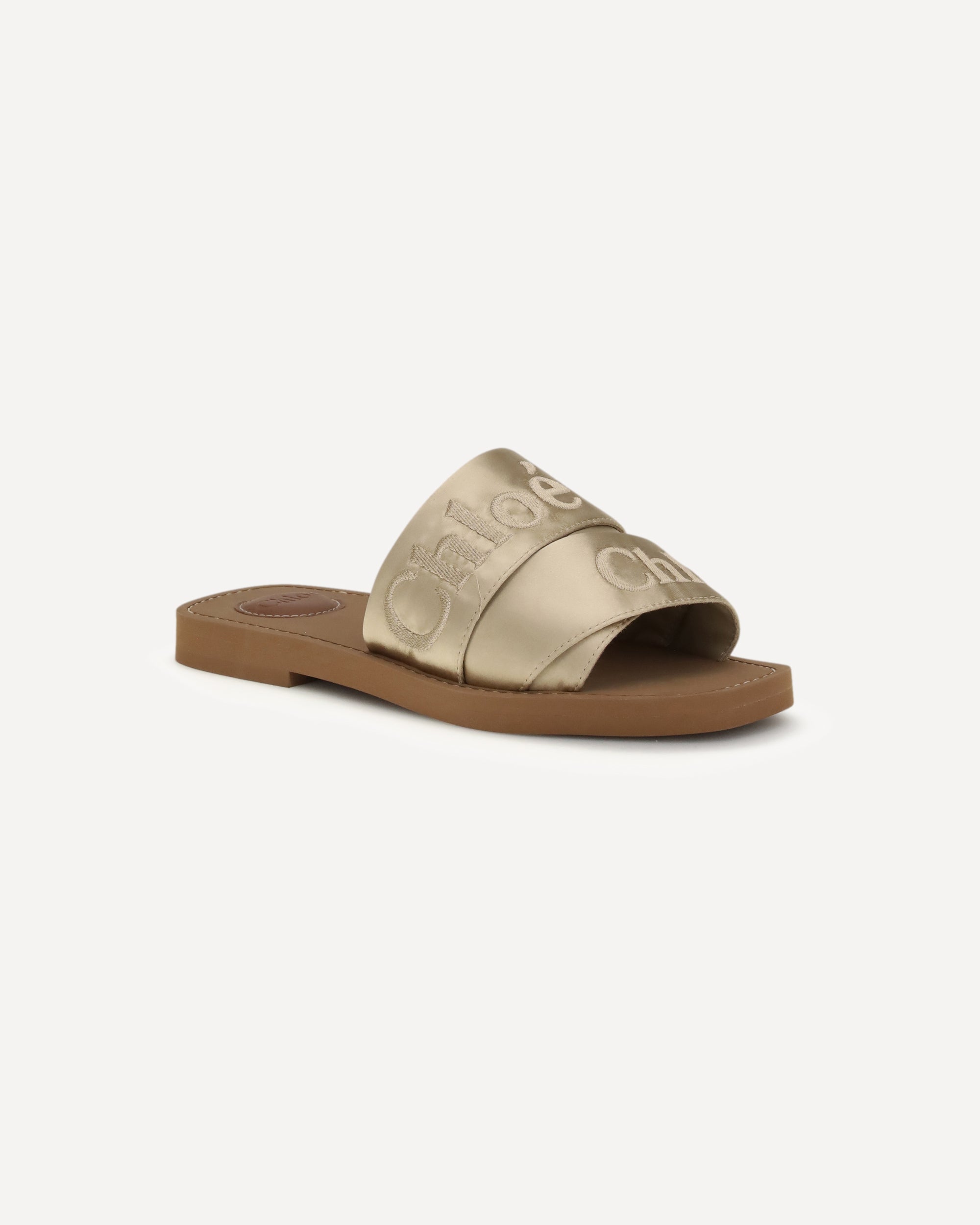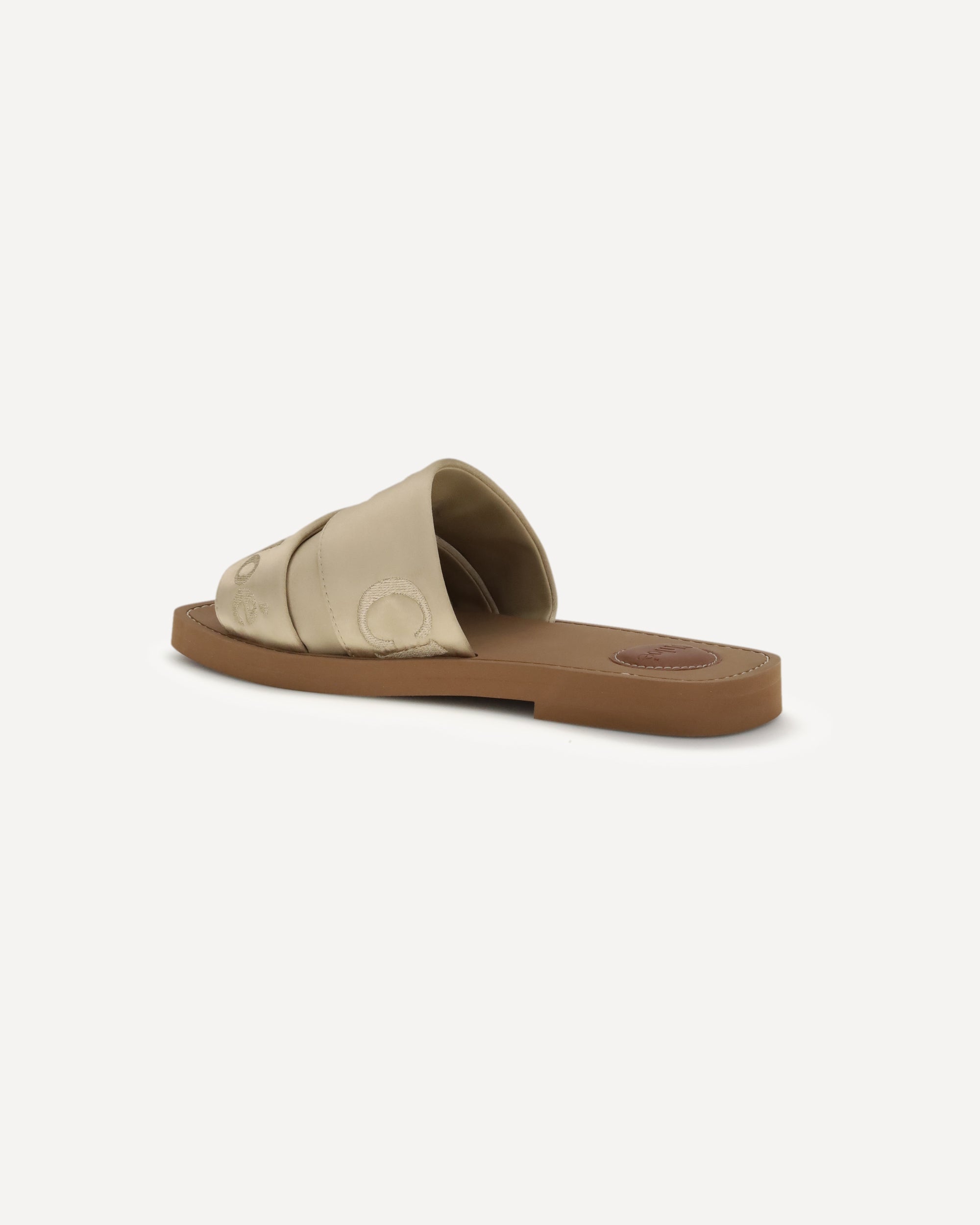 Le Ciabatte Woody di Chloé sono realizzati con nastri in satin a minore impatto ambientale, disposti in diverse larghezze e impreziositi dal logo Chloé ricamato tono su tono. Le iconiche impunture écru della Maison decorano la suola riciclata, mentre la lettera “O” del logo aggiunge un dettaglio distintivo alla soletta interna. Un modello che combina artigianalità, comfort e estetica contemporanea.
