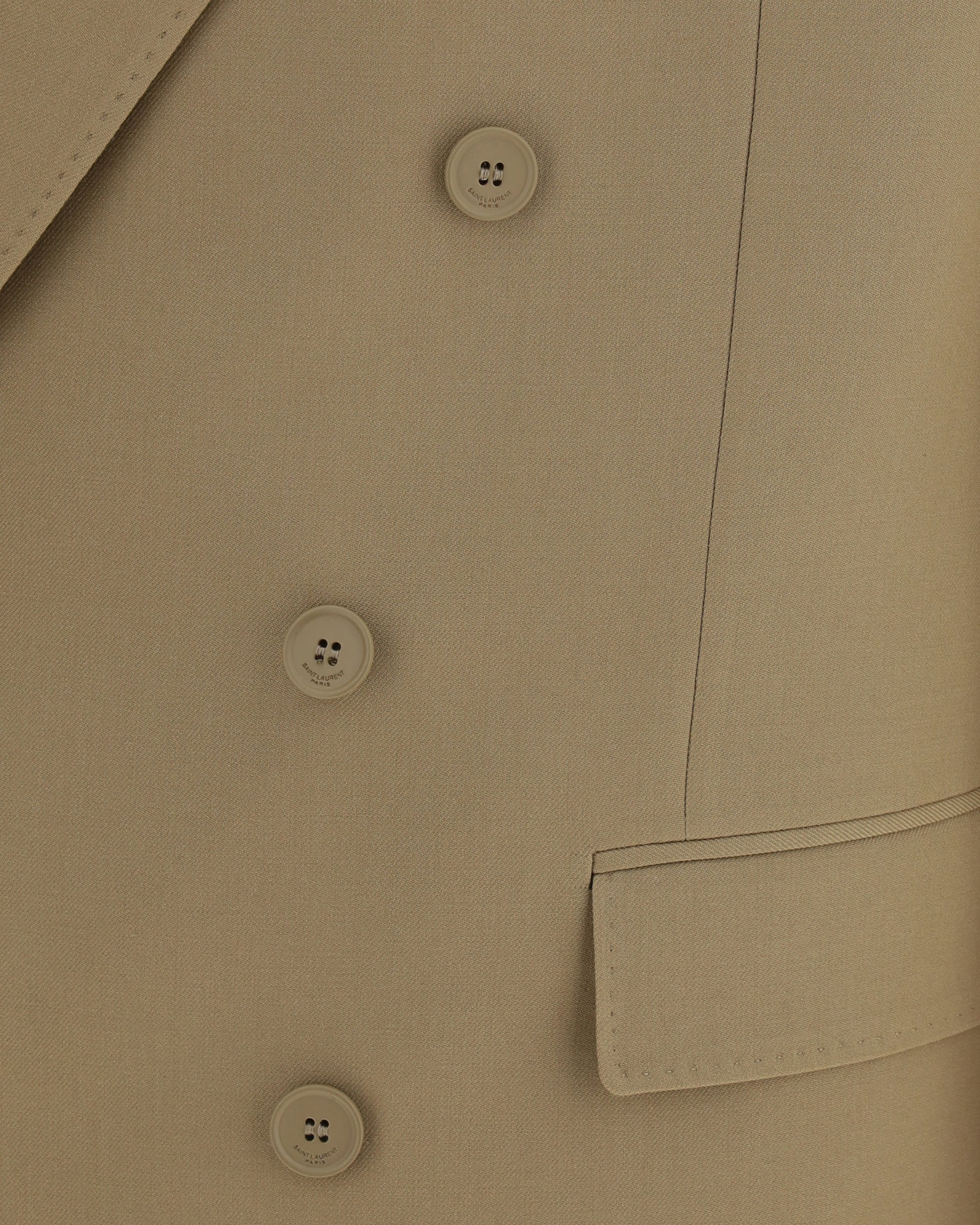 La Giacca Blazer in lana di Saint Laurent è un capo elegante e raffinato, con un rever a lancia e una chiusura a doppio petto con bottoni. Presenta due tasche con patta e un taschino a filetto sul fronte, che aggiungono un tocco pratico ed elegante. Realizzata in lana di alta qualità, è perfetta per look formali o sofisticati, combinando stile classico e contemporaneo.
