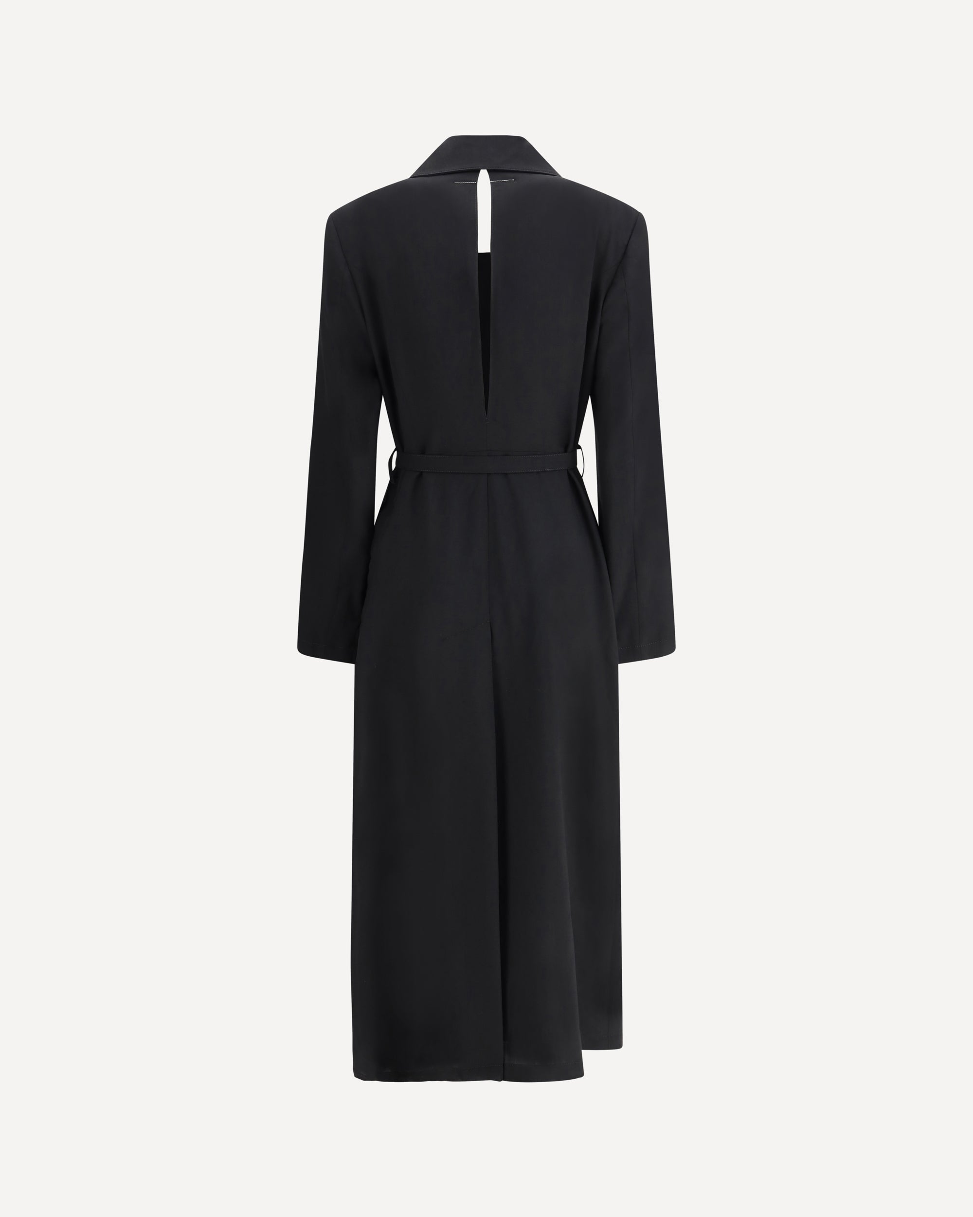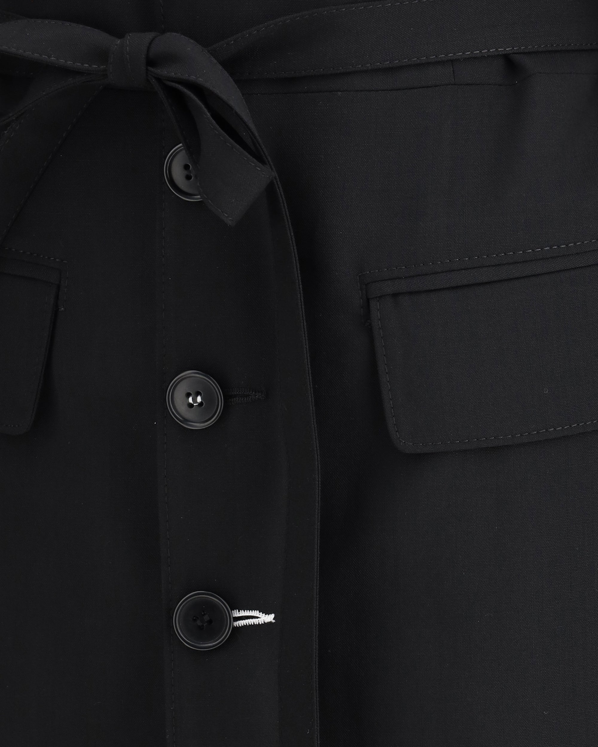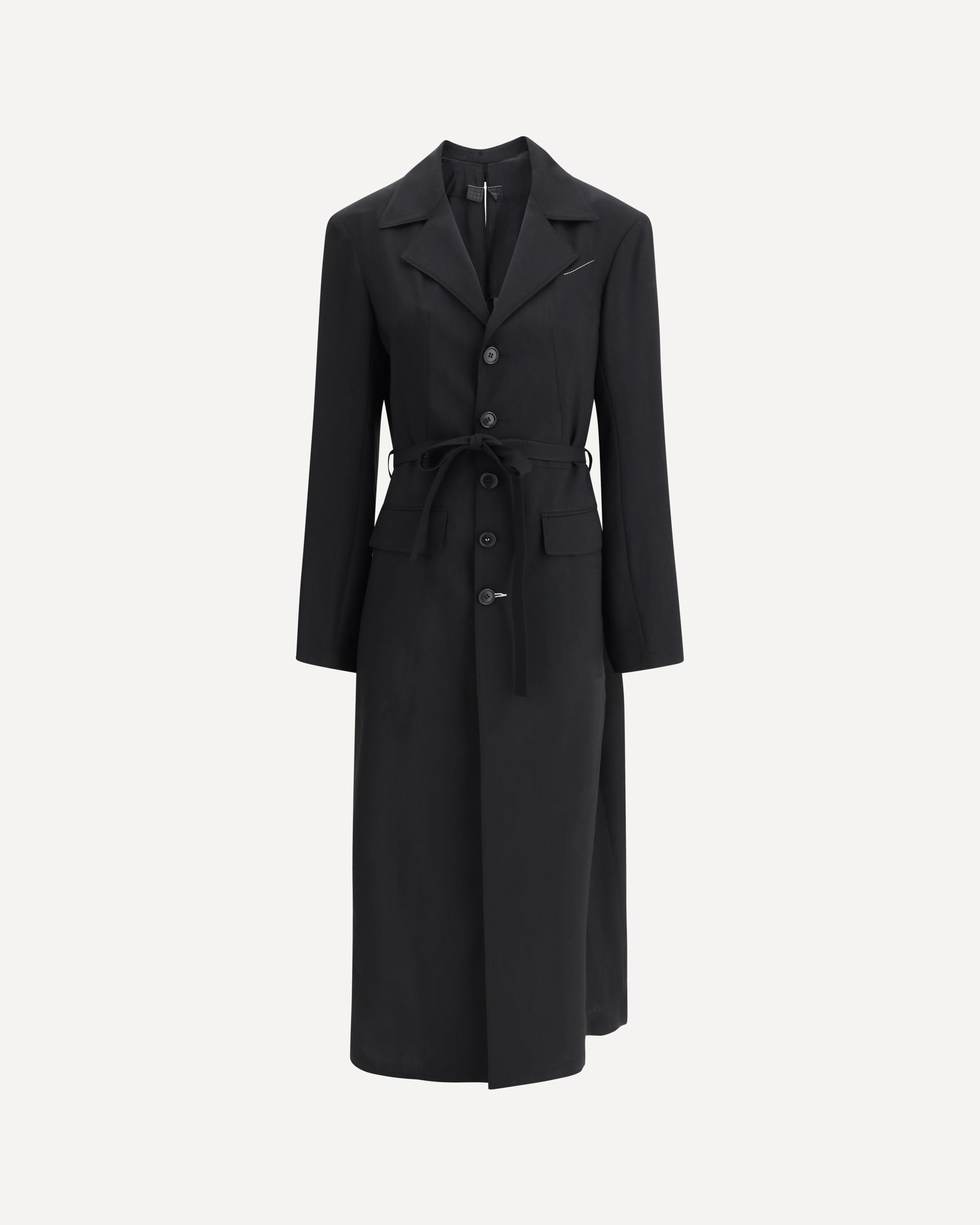 Il Trench in lana di MM6 è un capo elegante e versatile, perfetto per affrontare la stagione con stile. Il rever classico dona un tocco di raffinatezza, mentre la chiusura frontale con bottoni mantiene il design pulito e sofisticato. Le due tasche frontali a filetto con pattina aggiungono funzionalità e un accento di stile discreto. La fusciacca abbinata, removibile e annodabile in vita, consente di personalizzare la vestibilità e di esaltare la silhouette. Il taglio e lo spacco sul retro donano un'ulteriore dimensione al capo, conferendo movimento e comfort.