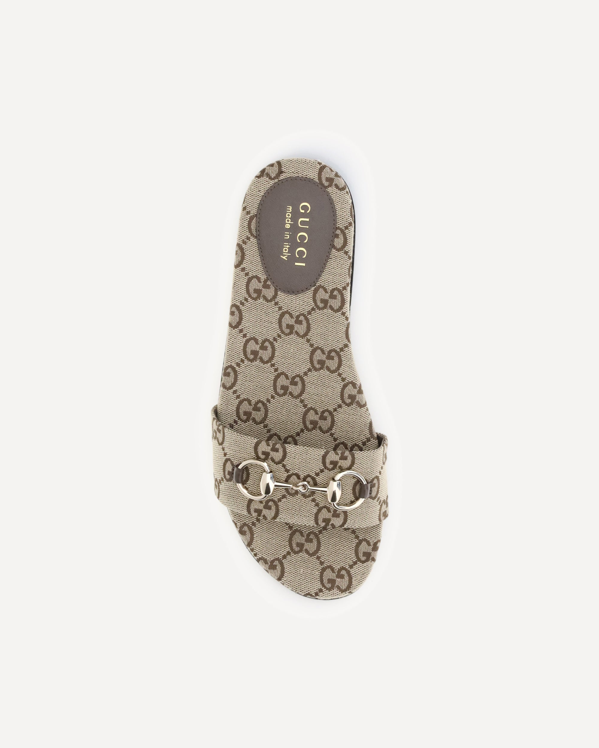 Le Slippers realizzate in tessuto GG di Gucci combinano eleganza e riconoscibilità grazie al motivo iconico del brand.Arricchite da un raffinato dettaglio metallico a morsetto sul collo del piede, presentano una punta tonda che dona un tocco classico.Completano il modello l’etichetta logata all’interno, per un tocco di autentica qualità.