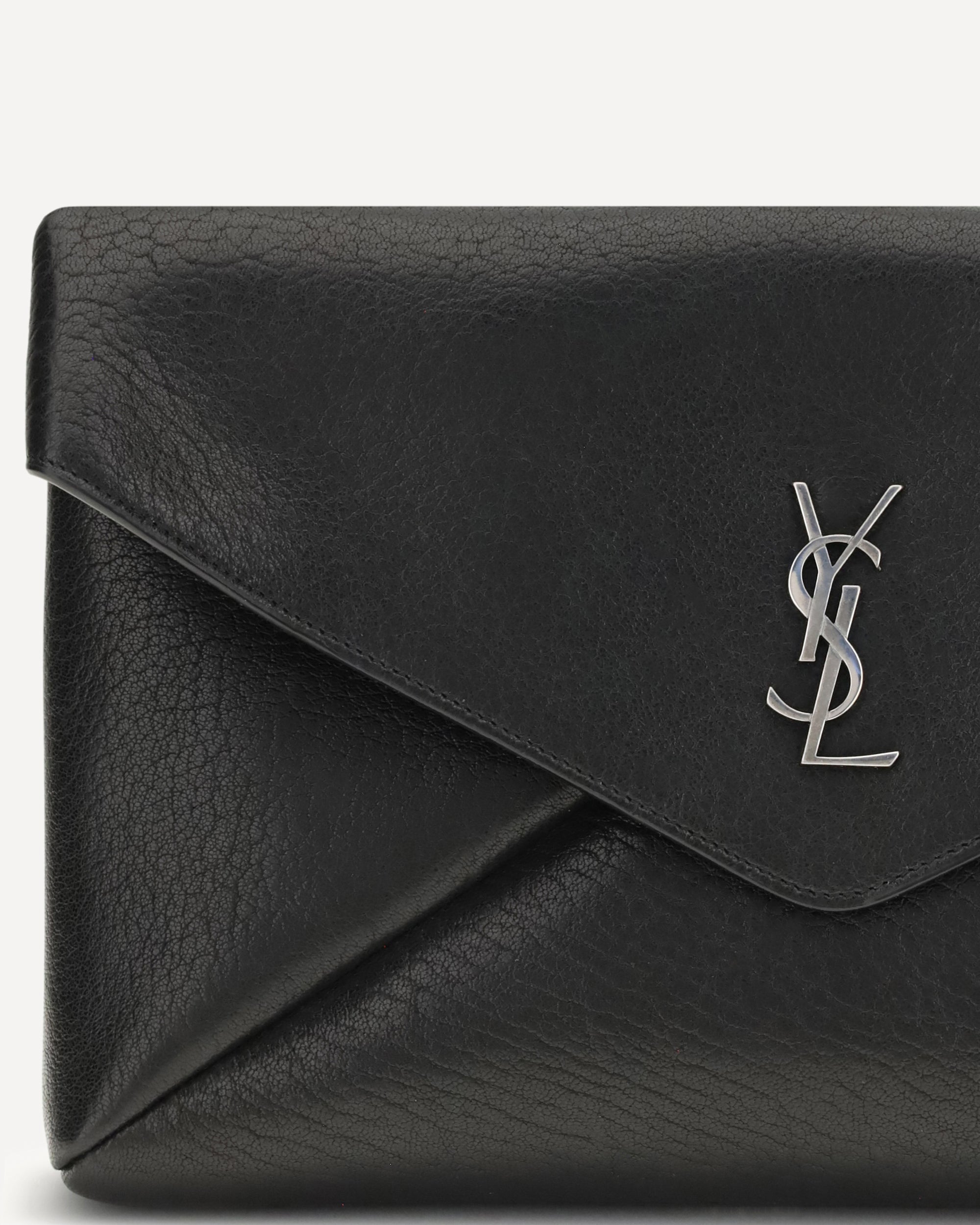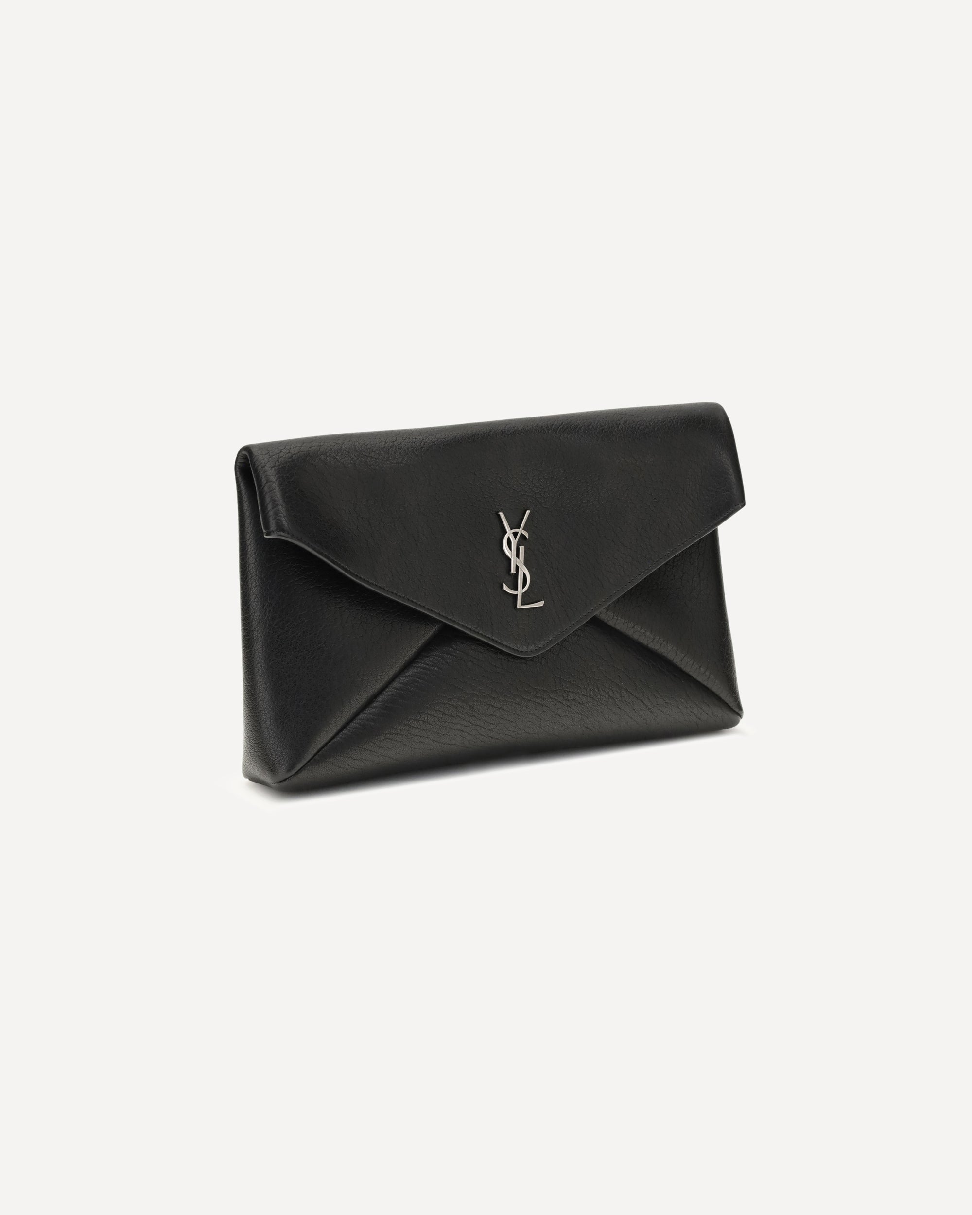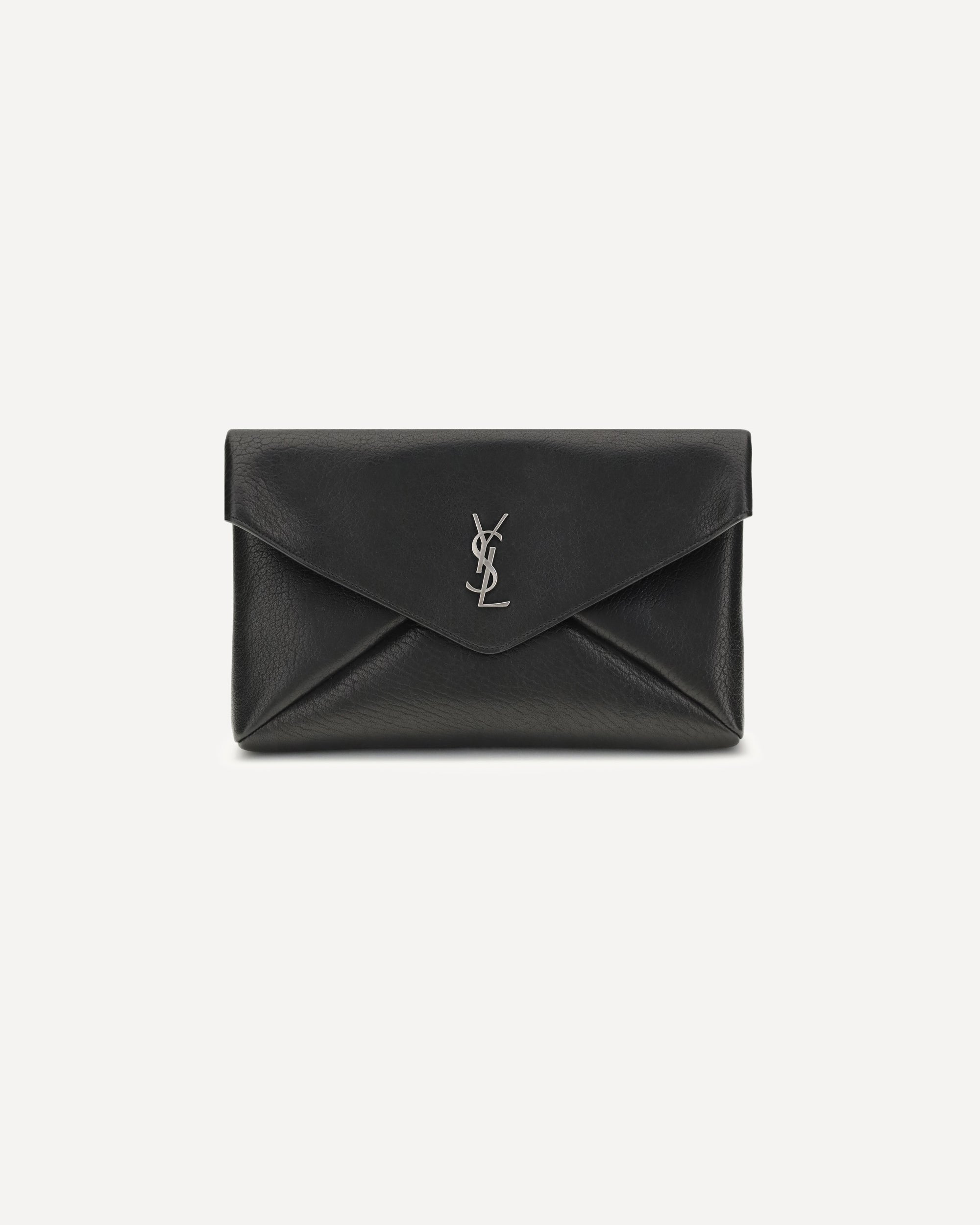 La Pochette Envelope grande Cassandre di Saint Laurent è un elegante modello con patta anteriore, arricchita dal logo argentato. La chiusura magnetica con bottone automatico garantisce praticità, mentre l’interno è dotato di una tasca piatta per l’essenziale.