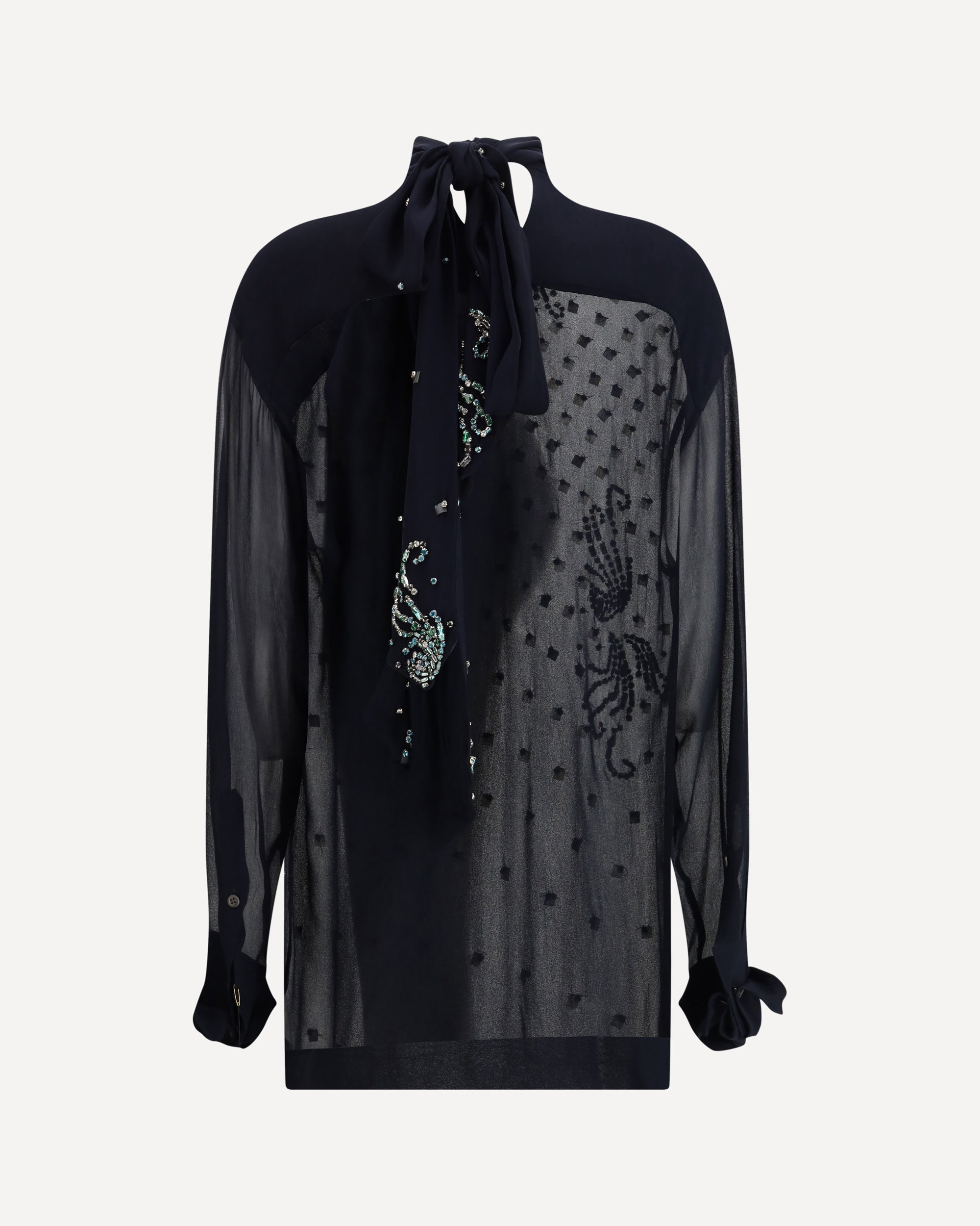 DRIES VAN NOTENViscose Blouse with Pussy-Bow and Jewelry Embellishments