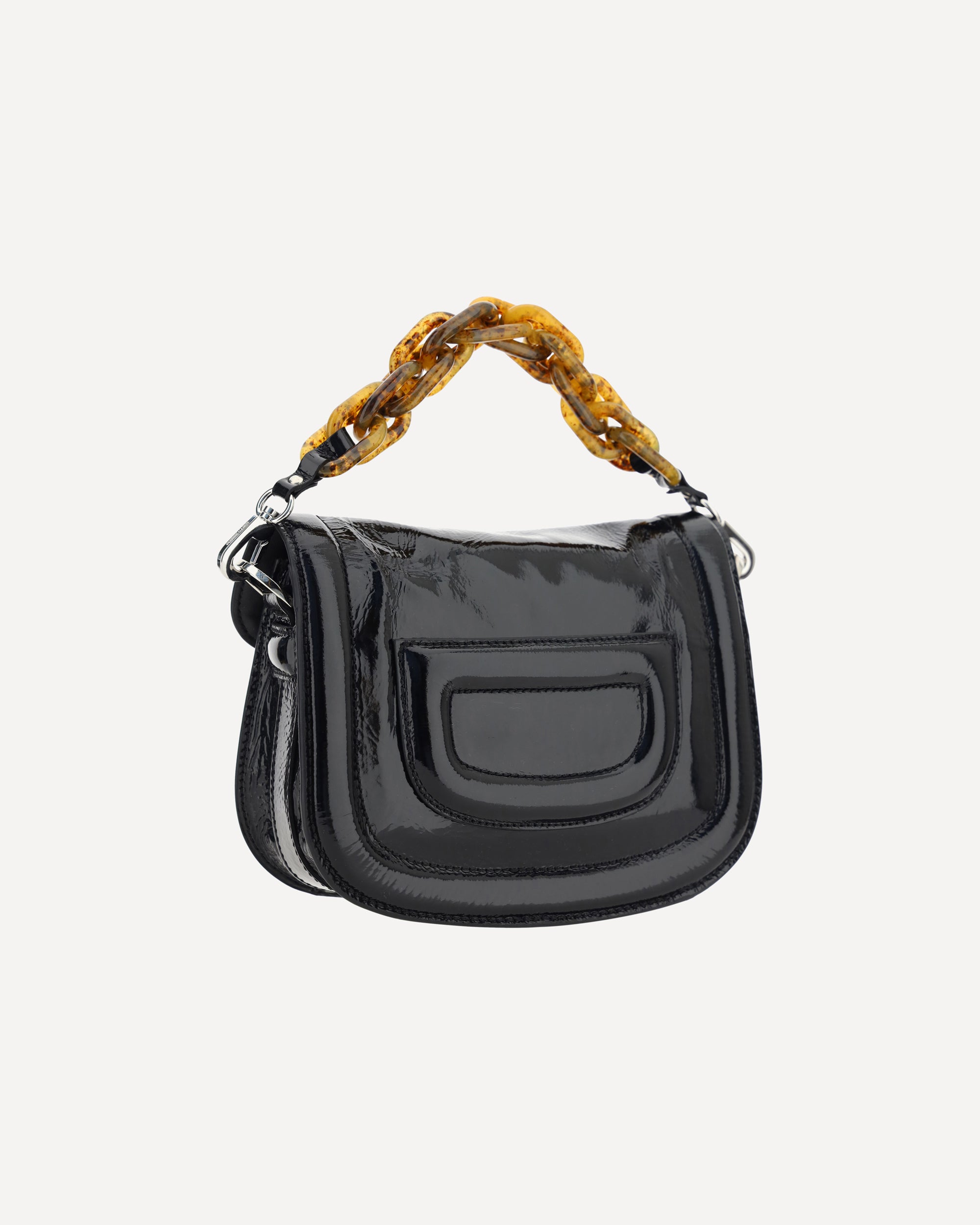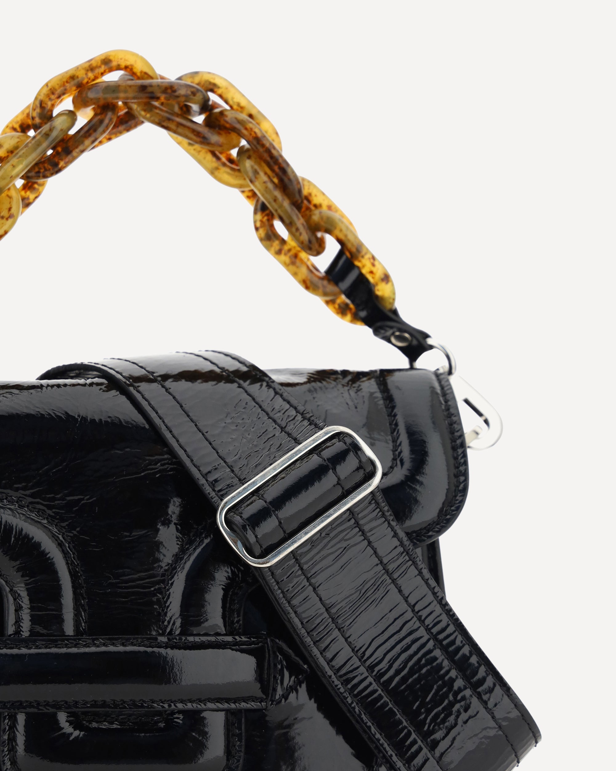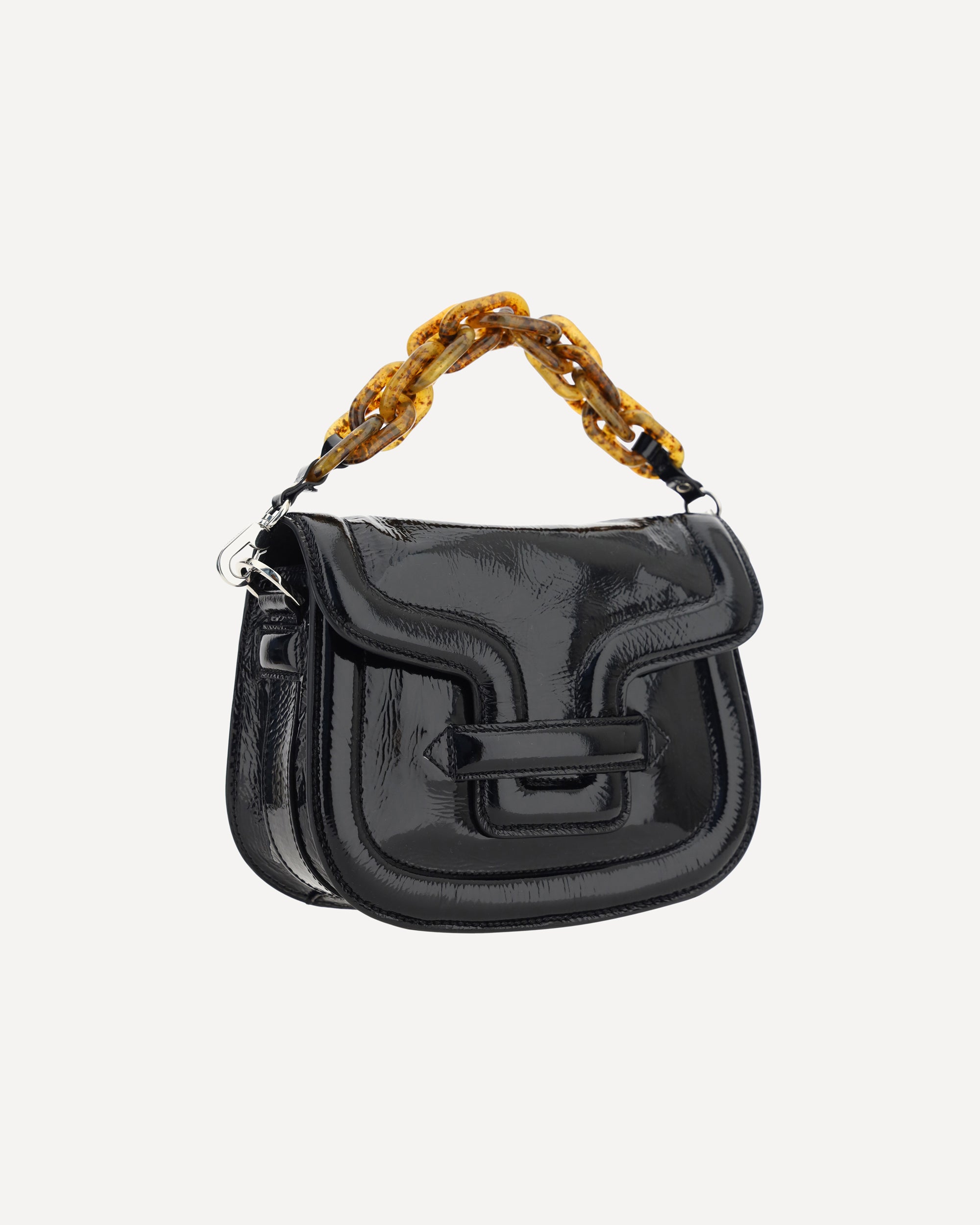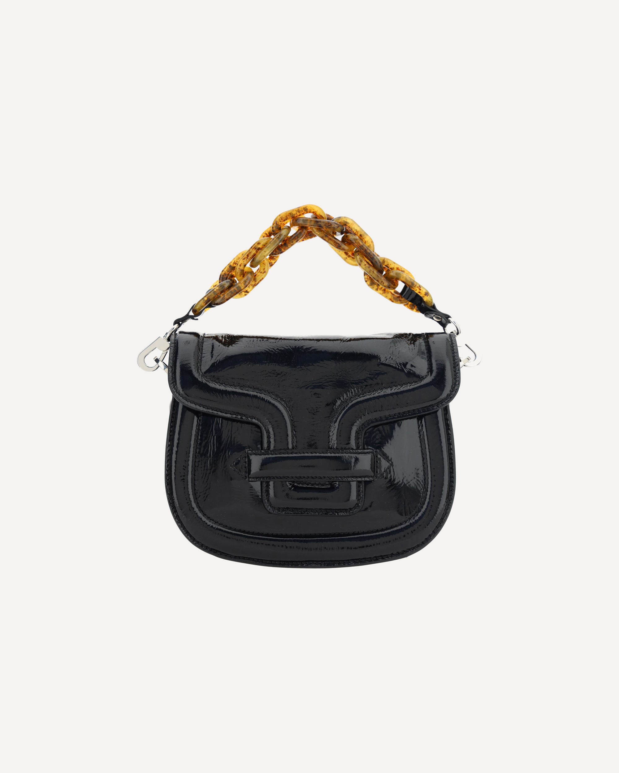 The Alphaville Shoulder Bag by Pierre Hardy is a luxury accessory that combines elegance and functionality in a sophisticated way. Crafted from high-quality leather, this bag features a removable top strap with a chain design, giving it a bold and contemporary touch. The front closure, with an interlocking flap, provides practical and elegant security. At the back, a welt pocket provides extra space for smaller items, ensuring easy access. The flat, adjustable and removable leather shoulder strap offers versatility, allowing it to be worn over the shoulder or cross-body, as needed. The interior features a single compartment, perfect for organizing essentials in style.