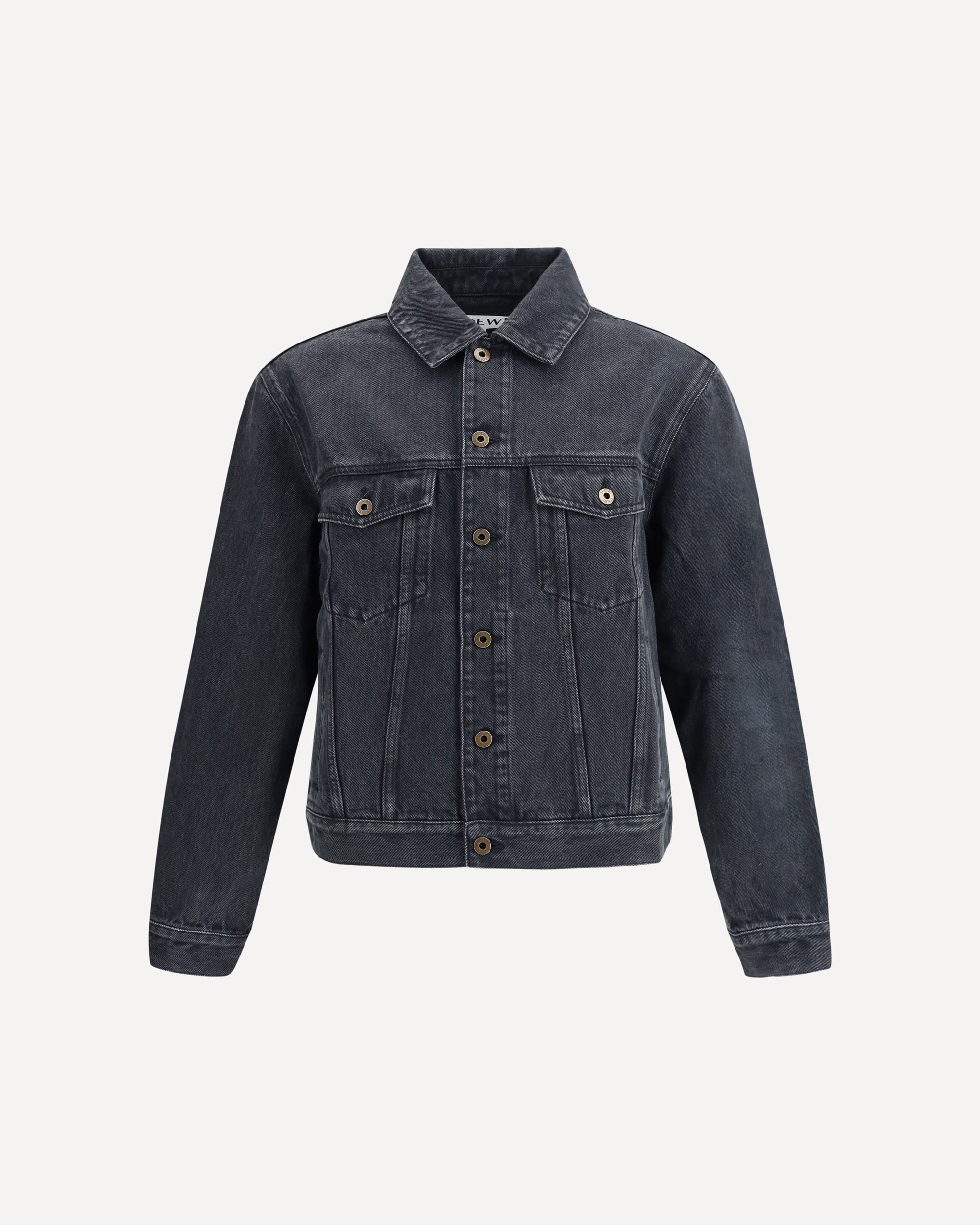 Loewe's Anagram denim Jacket is a wardrobe classic revisited with the house's unmistakable aesthetic. Featuring a regular fit and standard length, it features a classic collar and front button closure. Button cuffs and chest patch flap pockets flank practical side welt pockets for the perfect blend of functionality and style. Completing the design is the iconic leather appliqué with embossed LOEWE lettering on the back, a distinctive detail that signs the garment with understated elegance.