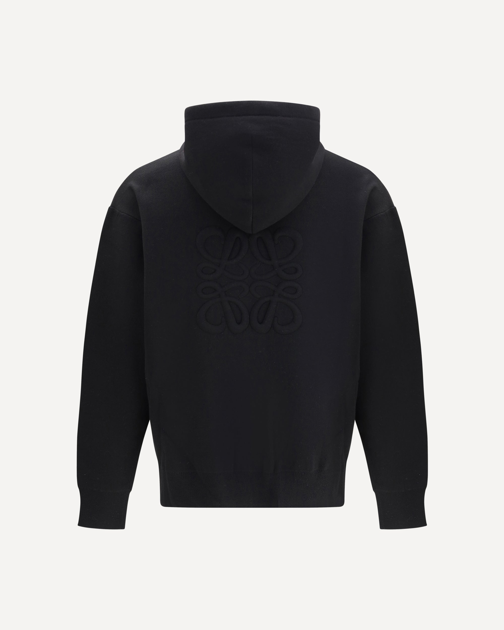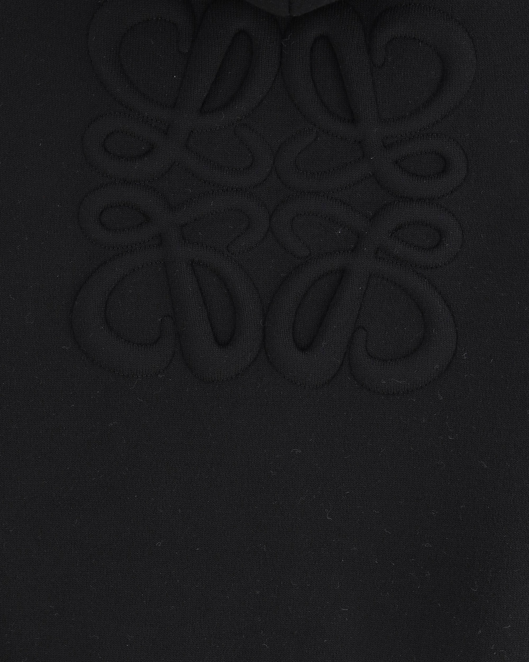 The Anagram Hoodie by Loewe combines comfort and contemporary style with distinctive details. Made of soft double-sided stitch, it features a relaxed fit and standard length for a casual yet polished look. The hooded collar features an adjustable drawstring, while the front zipper closure adds practicality. On the back, the iconic padded 3D Anagram stands out, adding a touch of character and three-dimensionality to the garment. Trimmed hem and cuffs complete the design, making this sweatshirt a versatile and modern must-have.