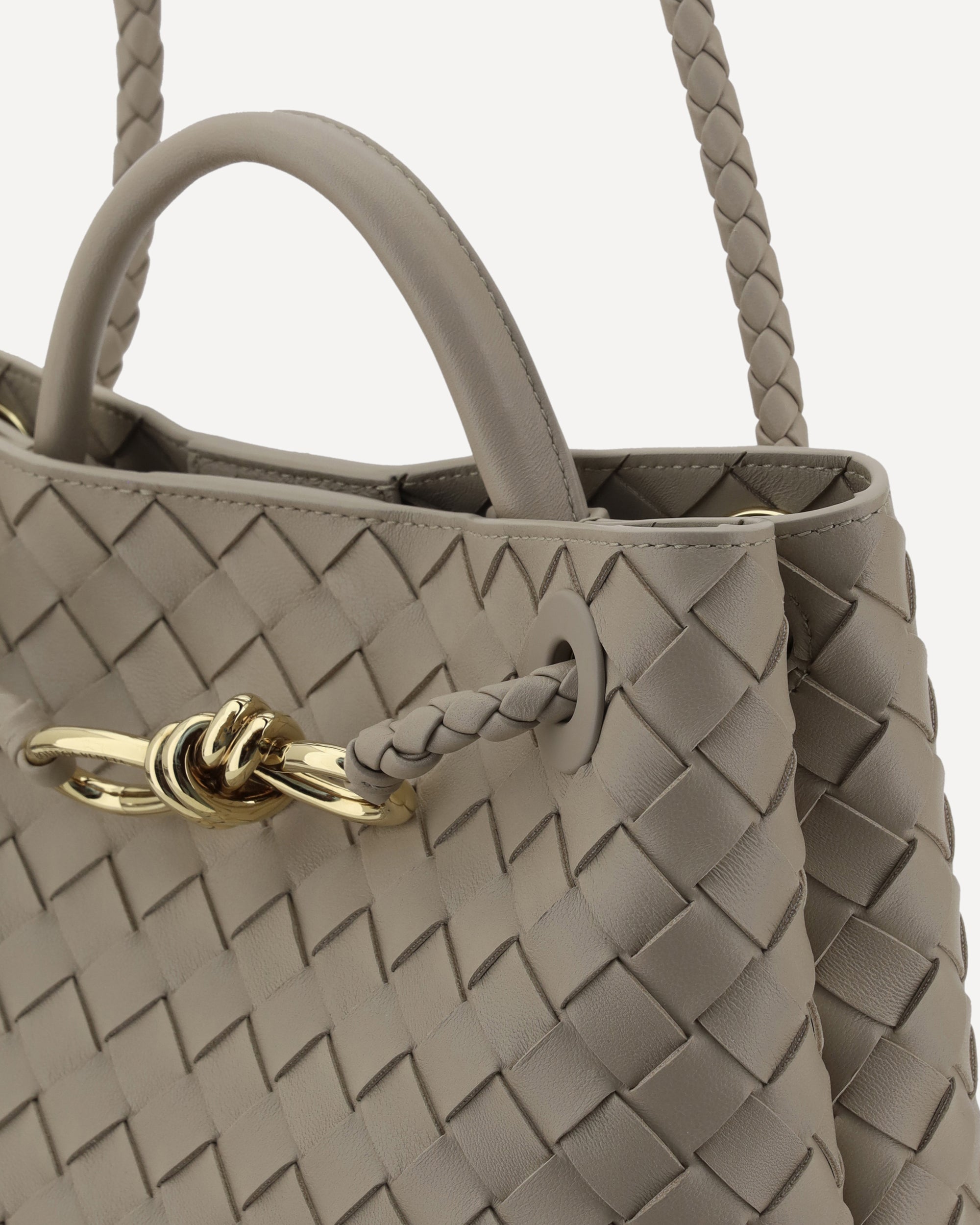 The Andiamo lambskin Shoulder Bag by Bottega Veneta features the brand's iconic intrecciato design covering the entire surface. It has a single rigid handle and a matching sliding shoulder strap, embellished with the iconic knotted brass Muse detail. The bag closes via a top magnetic flap. Inside, it features dual interior compartments and an interior welt pocket for optimal organization. A stylish and practical accessory for any occasion.