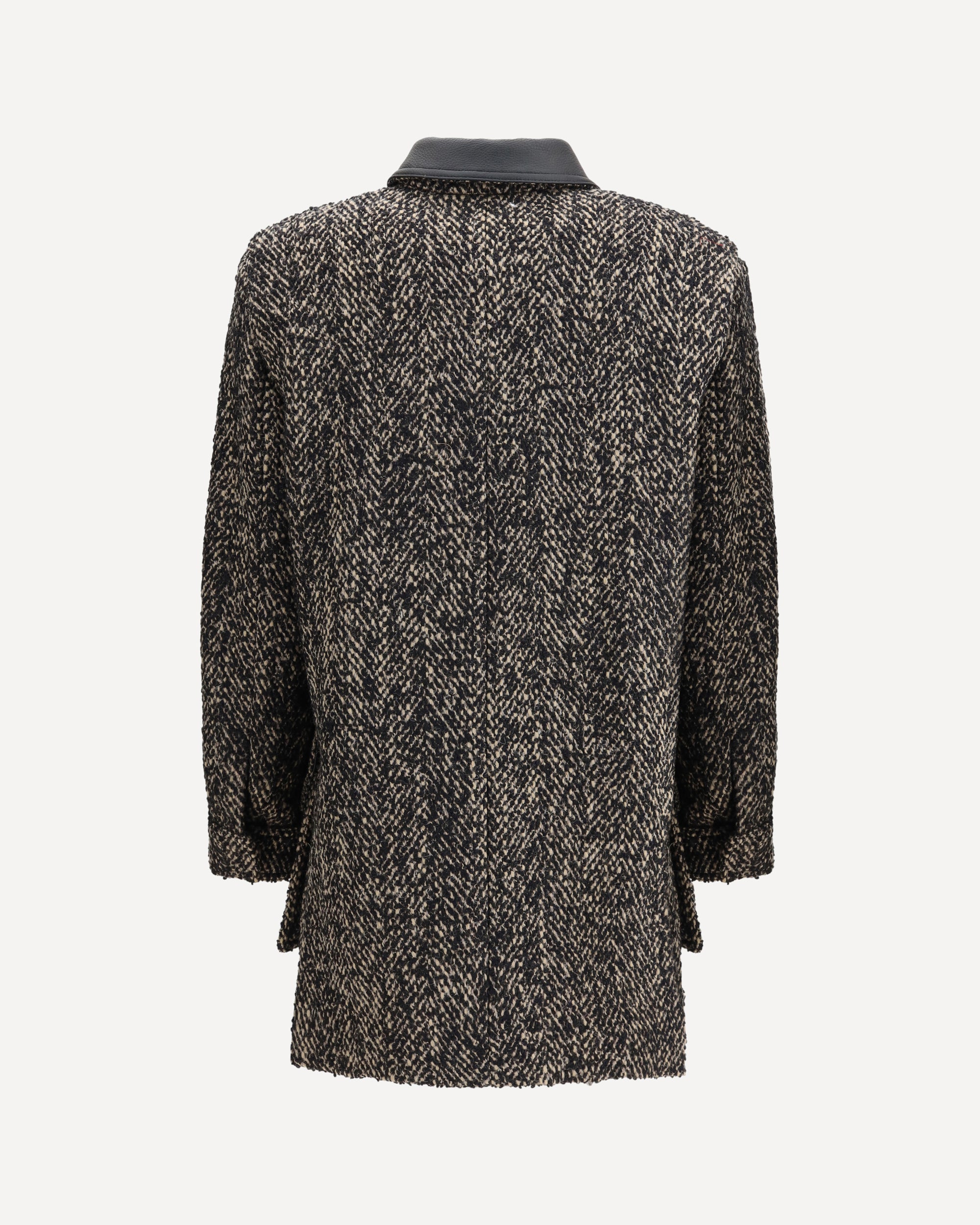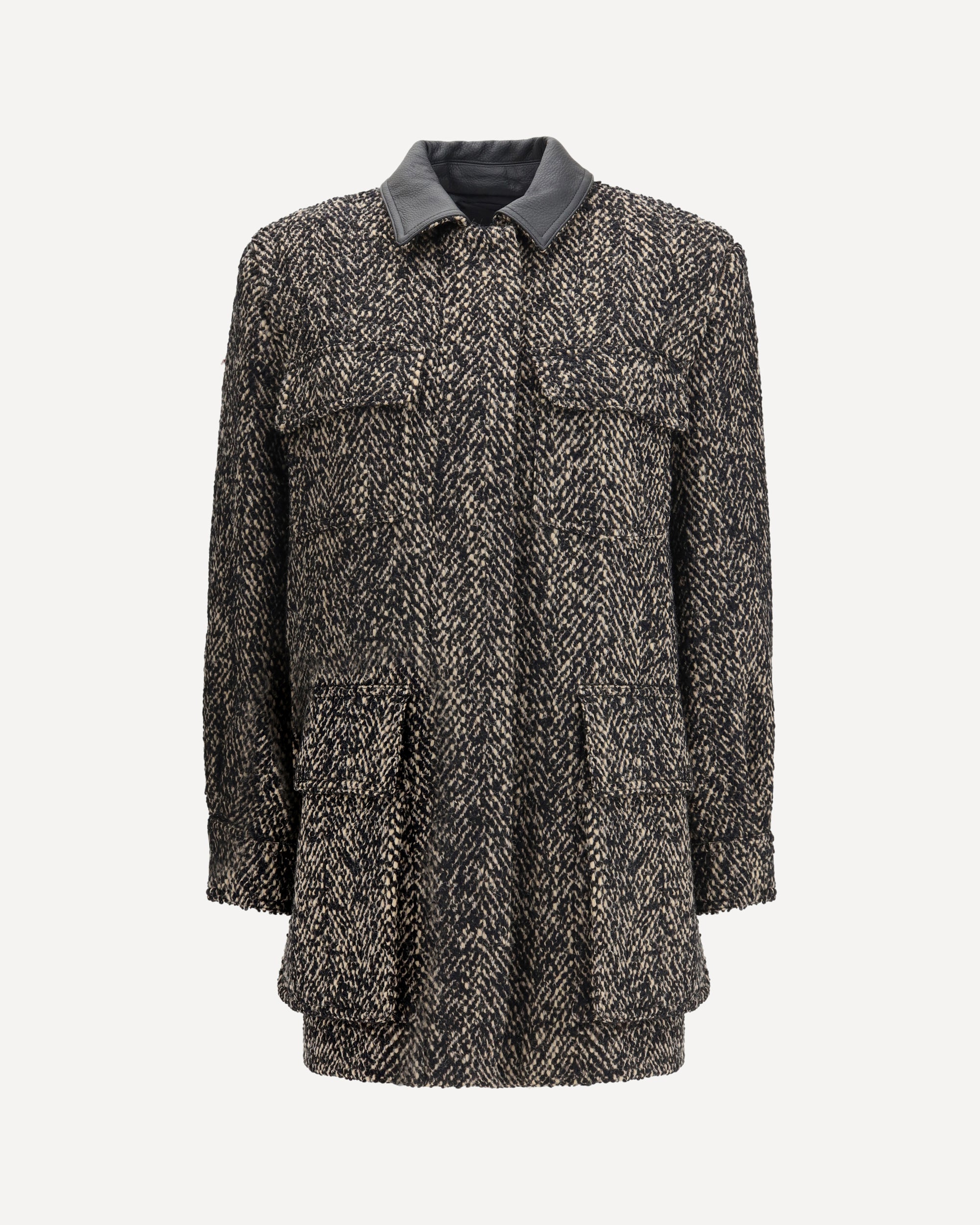 The Max Mara Wool tweed Jacket offers a contemporary take on the safari style, blending structure with understated luxury. Crafted in wool tweed, it features a straight silhouette and four patch pockets with flaps on the front, enhancing its utilitarian inspiration. The leather shirt collar adds a refined contrast, while the concealed zip fastening ensures a clean finish. Shirt-style cuffs with press buttons and side vents at the back complete the design. Fully lined for comfort, this piece strikes the balance between function and elegance.