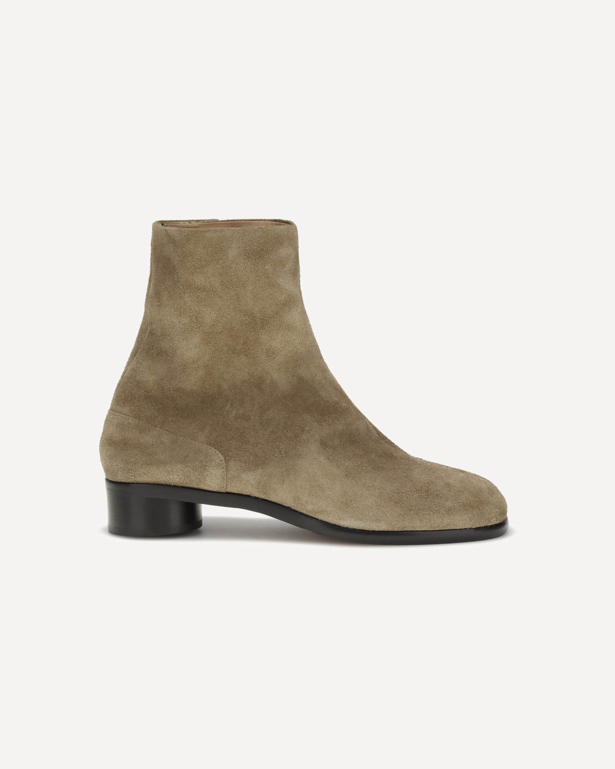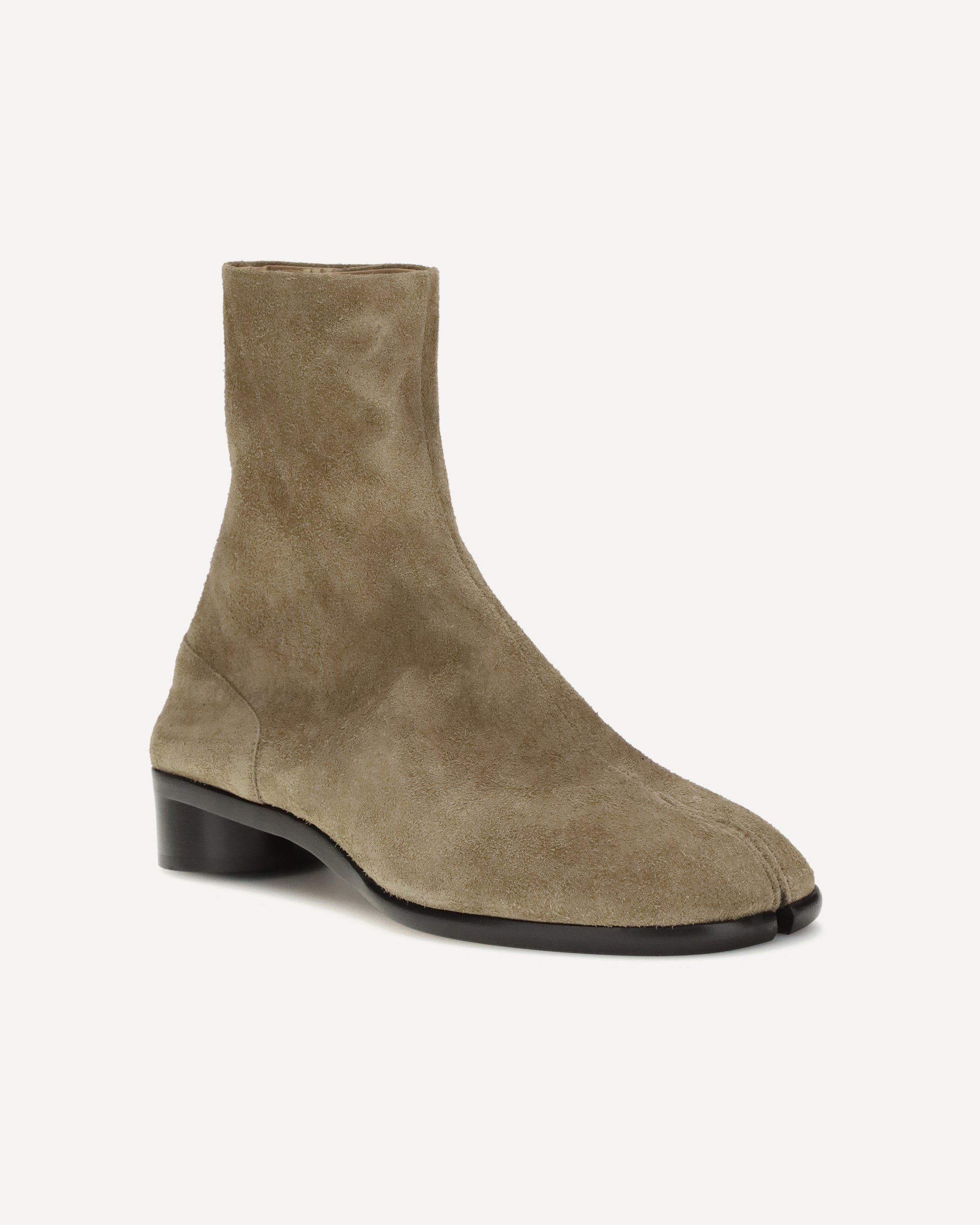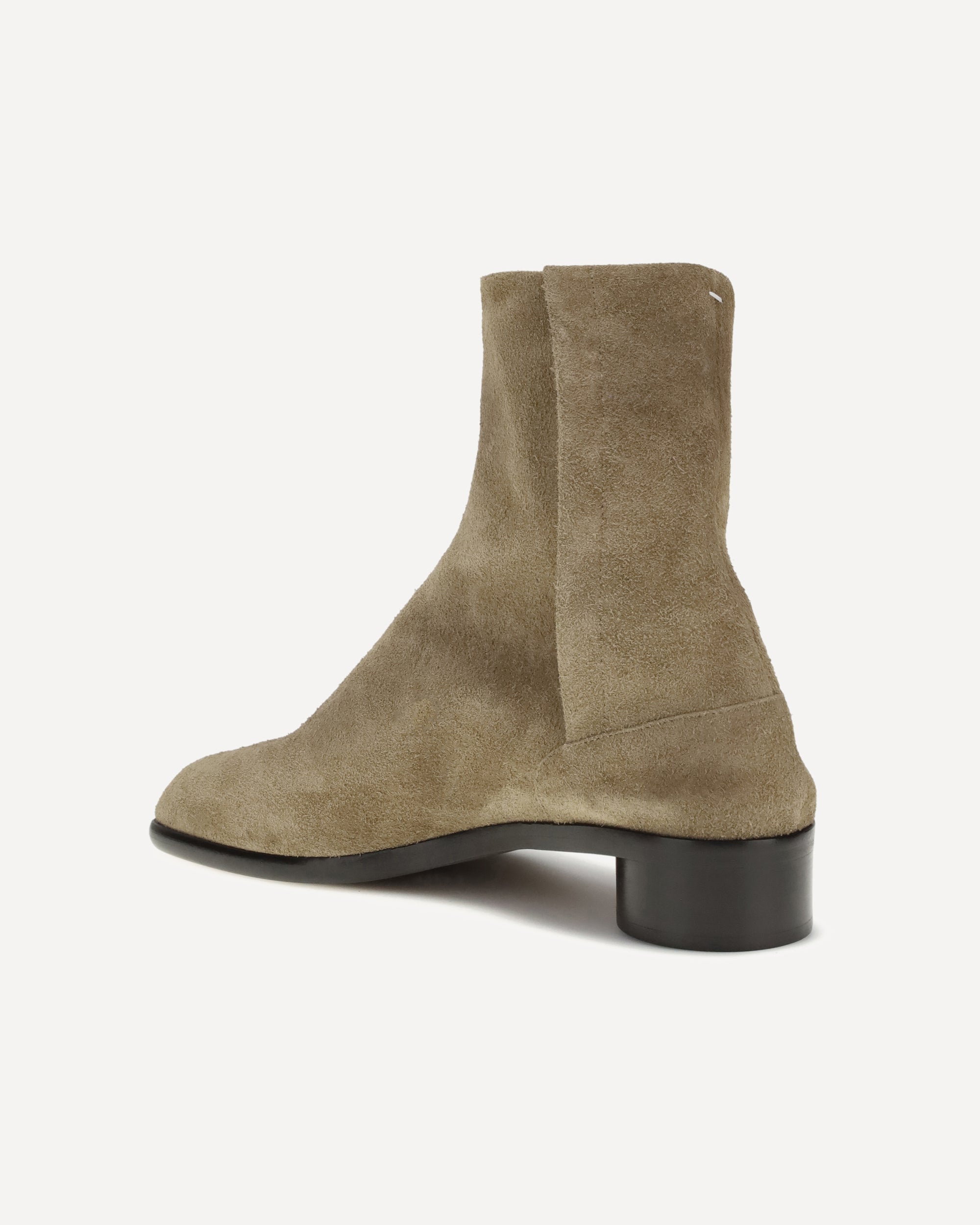 Suede Ankle Boots by Maison Margiela combine minimalism and character in a refined, contemporary design. Featuring an essential silhouette with a rounded toe and ankle height, they are distinguished by a round block heel that lends stability and an architectural touch. Soft suede leather enhances the model's understated elegance, making them perfect for stylishly completing both casual and more sophisticated looks.