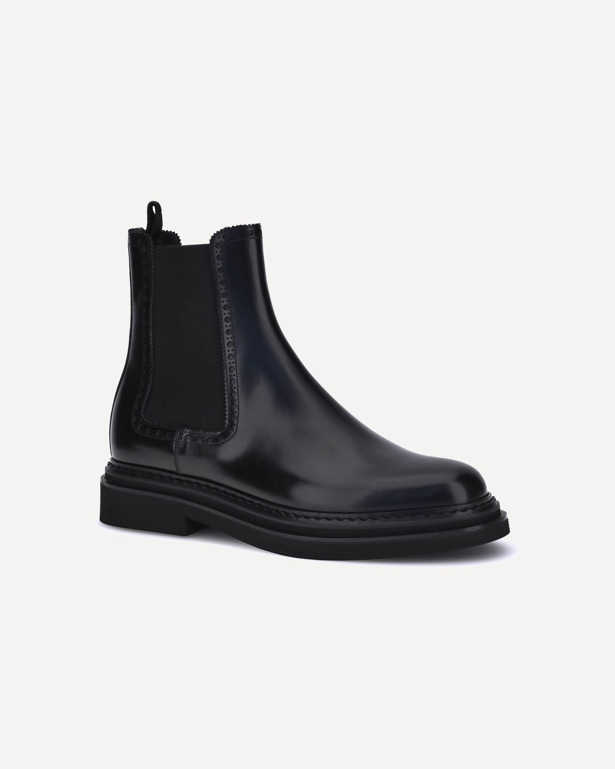 Dolce&Gabbana's Chelsea Ankle Boots, with a classic and contemporary design, are crafted from fine calfskin leather. Complemented by a leather fussbett with logo-embossed label and a logo-embossed rubber sole, they combine elegance and comfort for refined everyday wear.