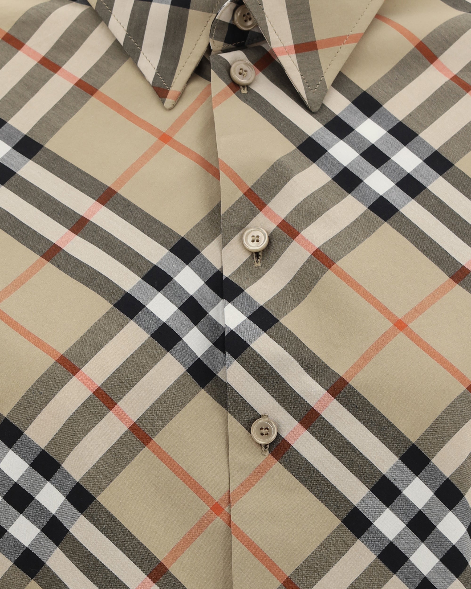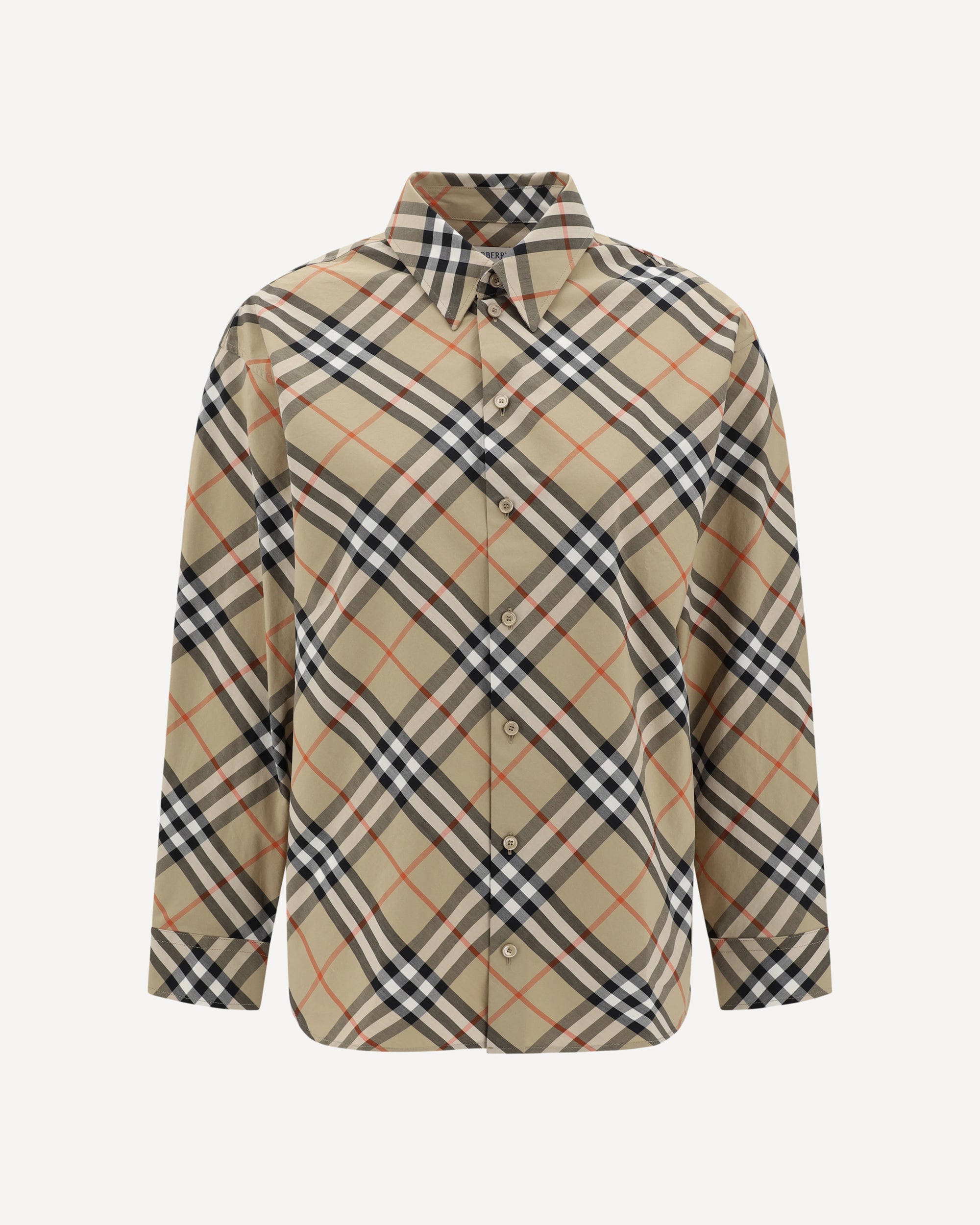 Burberry's cotton Archivio Check Shirt is an iconic garment featuring the unmistakable Archivio Check pattern that covers the entire design, a distinctive symbol of the brand. The front button closure and classic collar give an elegant, traditional look, while the adjustable button cuffs offer practicality and a perfect fit.