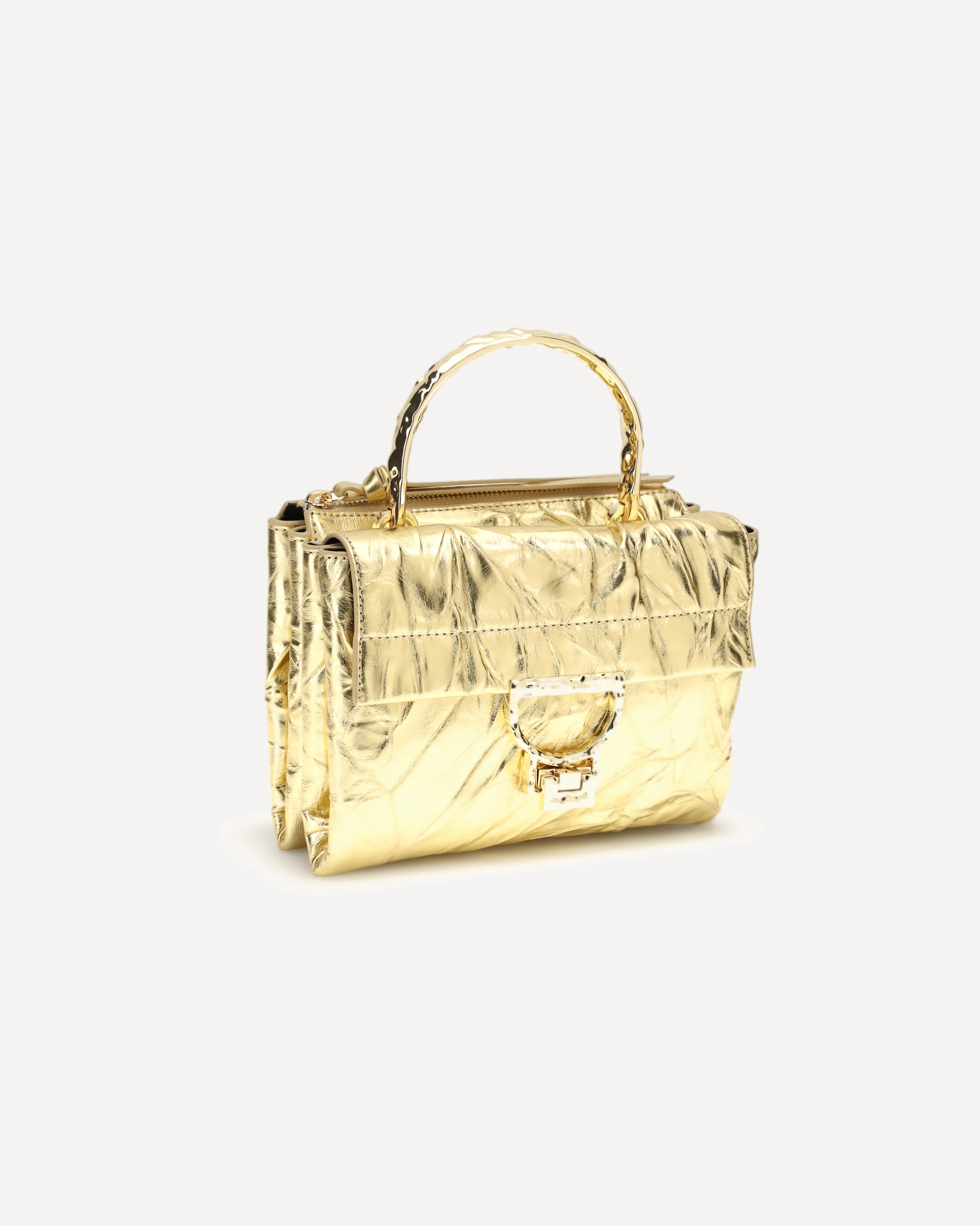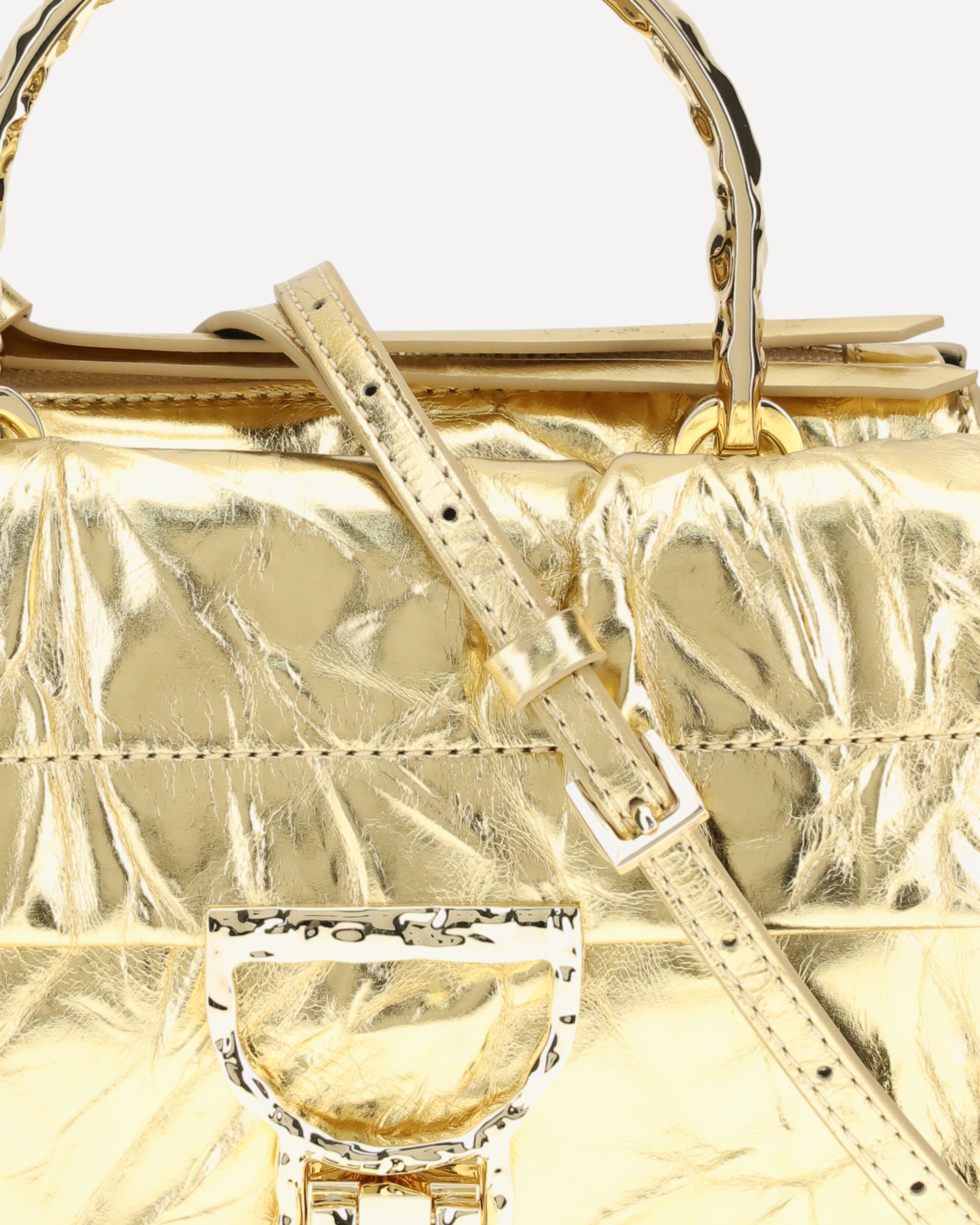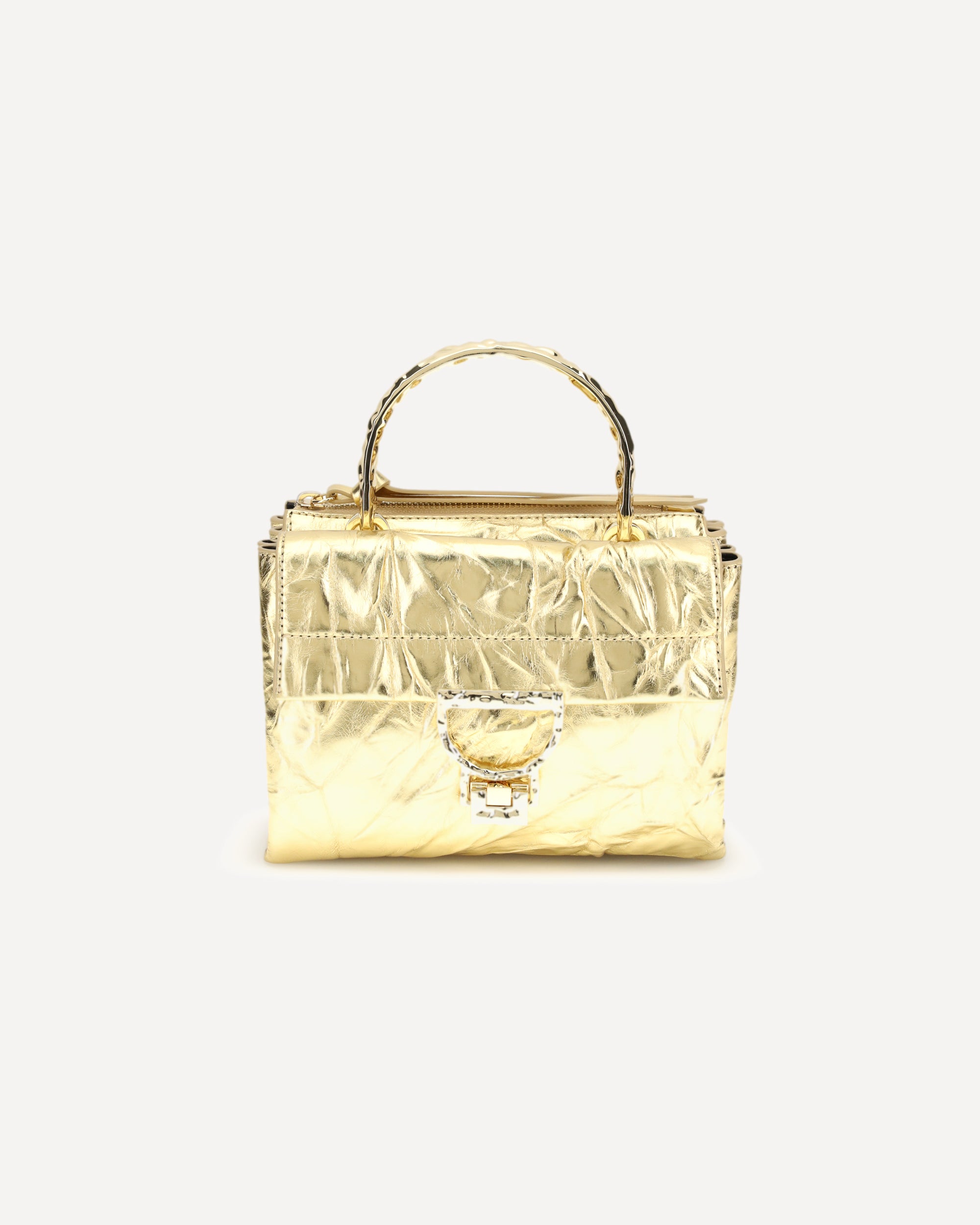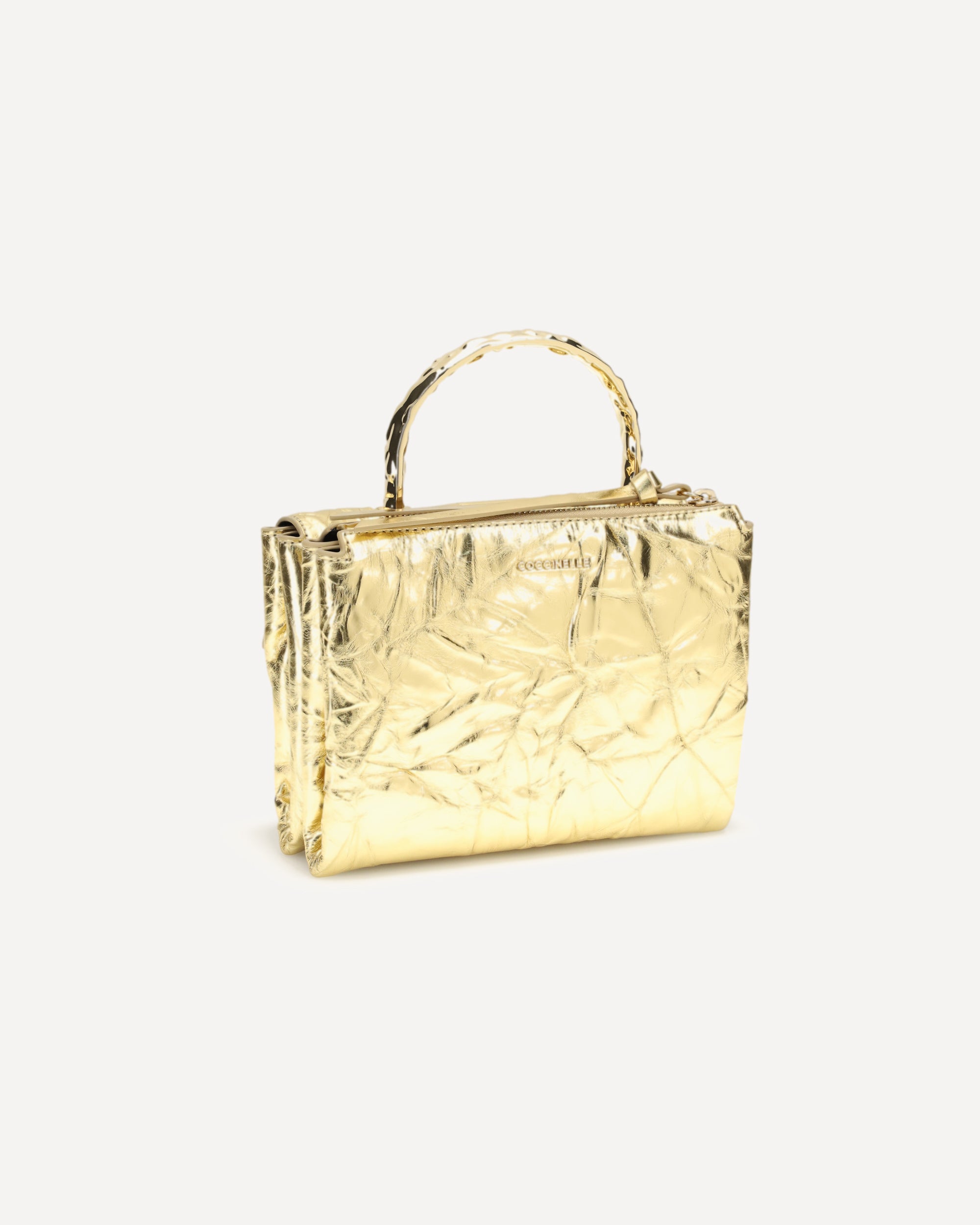 The Arlettis Droplet Handbag by Coccinelle, made of smooth laminated leather, offers hand and shoulder carryability thanks to its droplet-effect metal handle and adjustable, removable leather shoulder strap. The model features a flap closure, exterior zipper pocket and two interior compartments, combining elegance and functionality in a versatile and refined design.