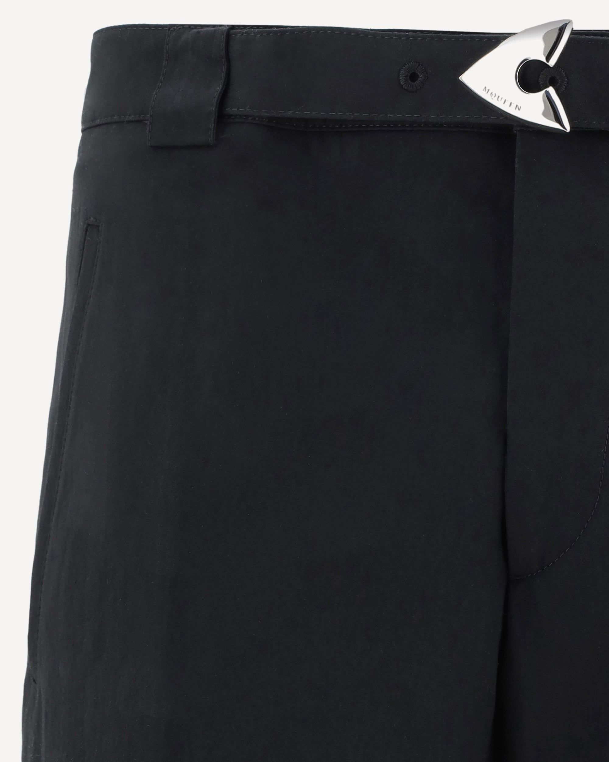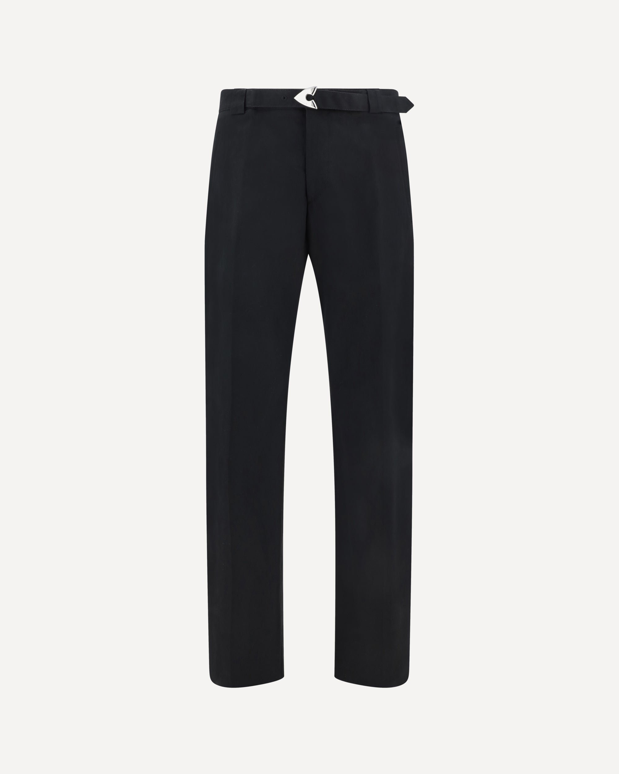 Alexander McQueen's Arrow Belted Pants combine elegance and modernity with a distinctive design. The matching waistband with Arrow buckle and brand logo adds a touch of sophistication and originality to the look. The two side welt pockets and two back welt pockets offer functionality without compromising style. The front zipper and hook-and-eye closure completes the design with a clean, practical finish.