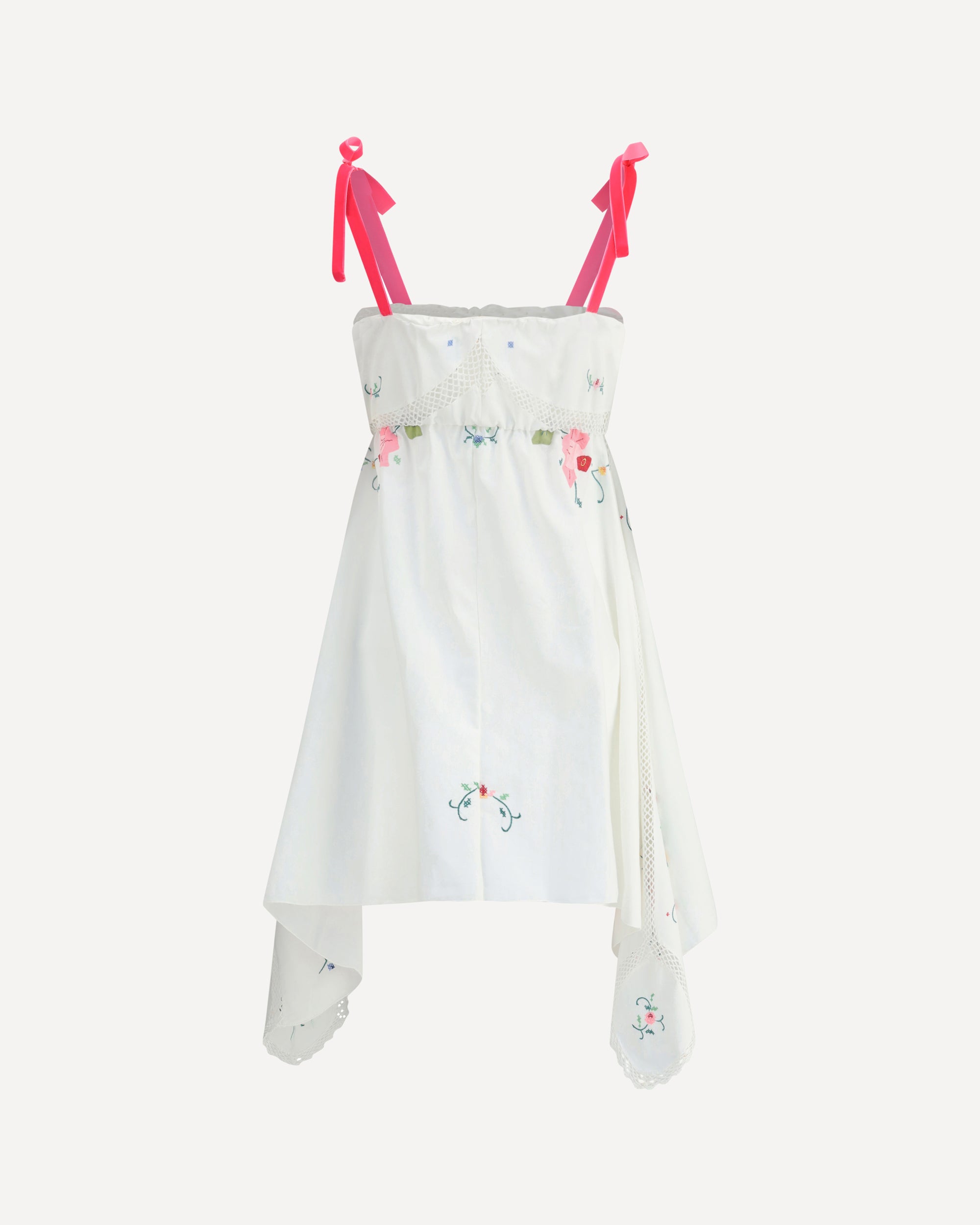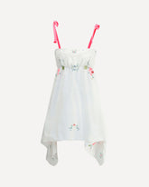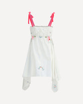Ella's Asymmetrical Short Dress combines elegance and originality. Thin velvet straps and an elasticized neckline offer comfort and style, while the asymmetrical hemline and crochet details add a dynamic and refined touch. All-over floral appliqués complete the look, making this dress perfect for special occasions with a fresh, feminine touch.