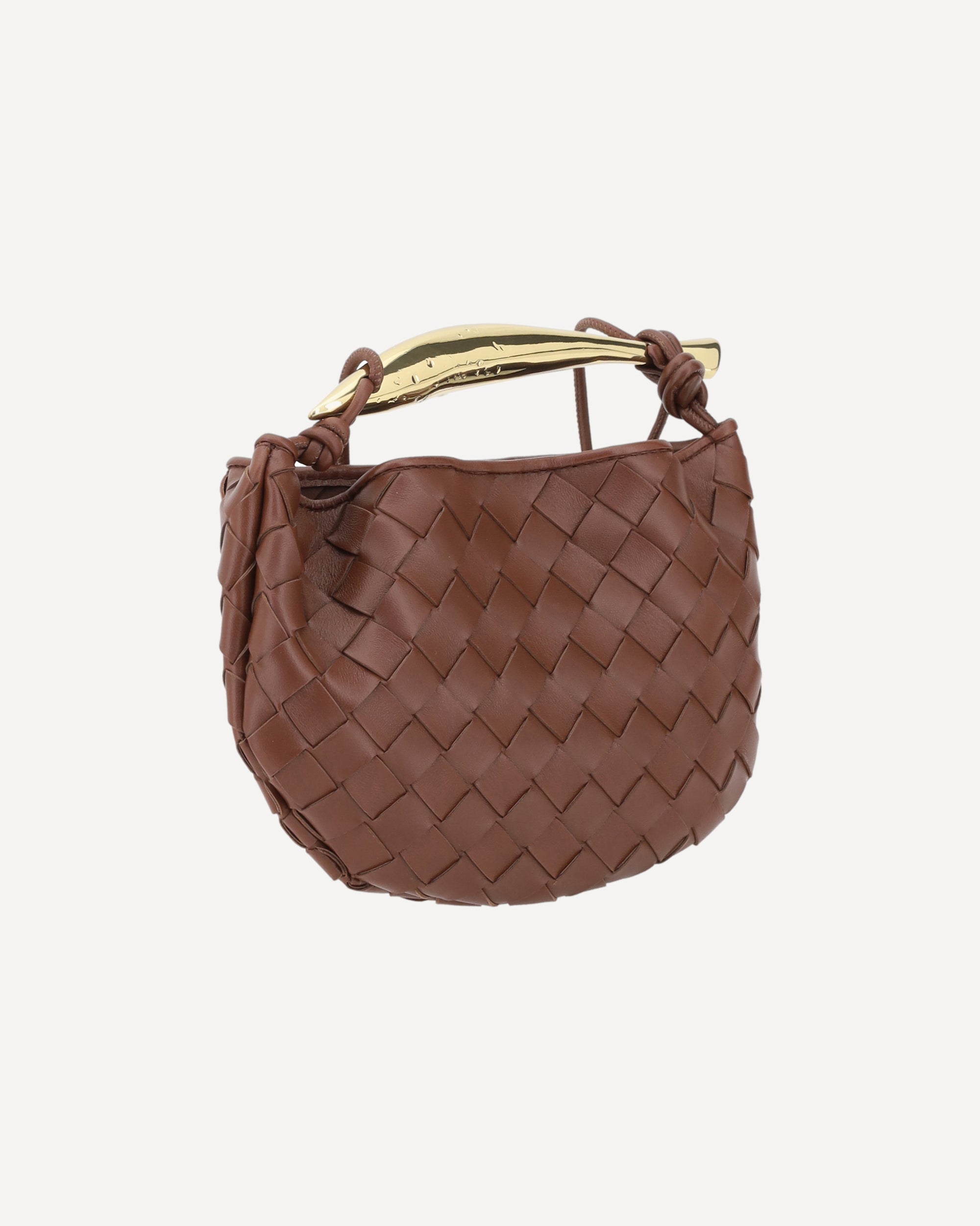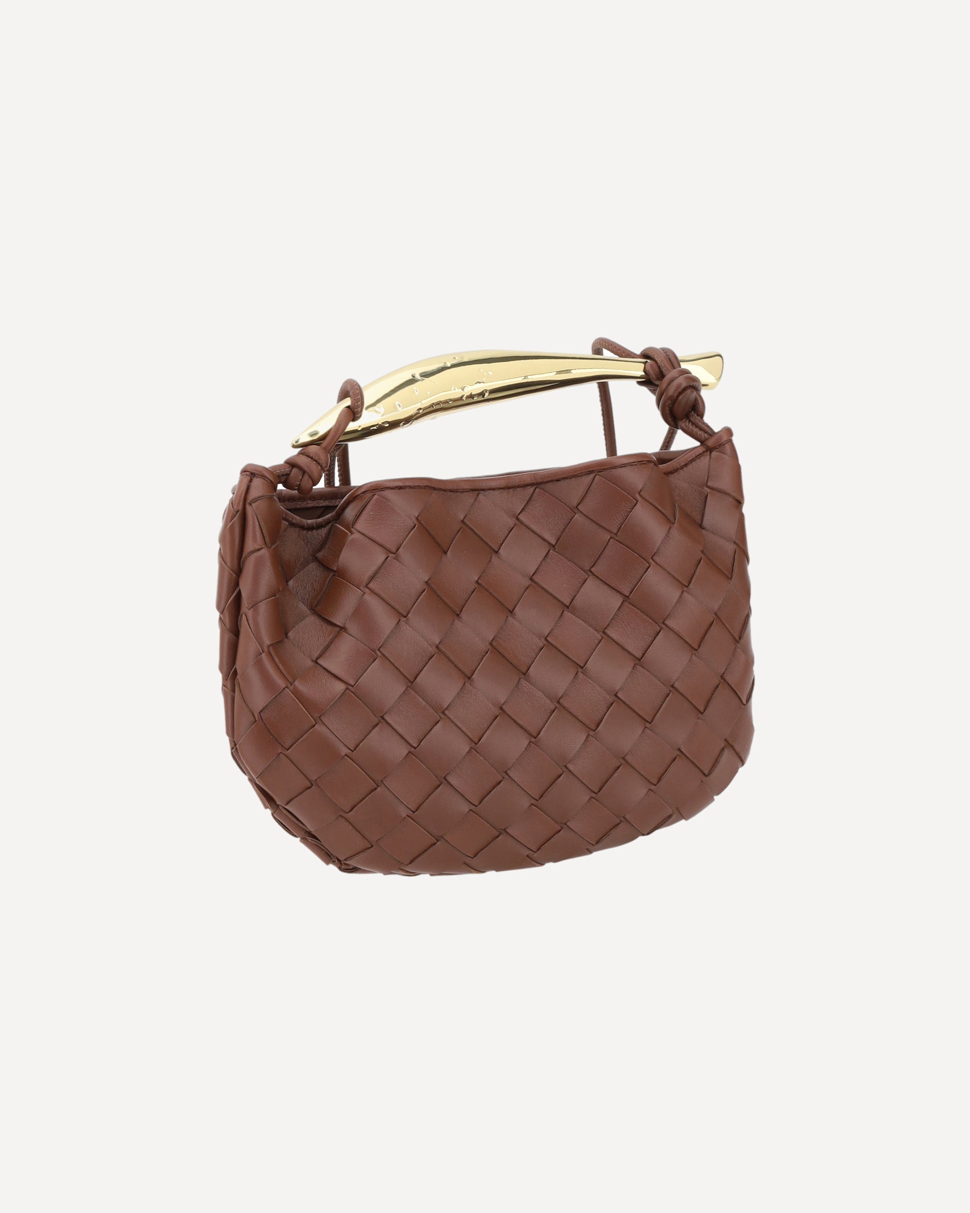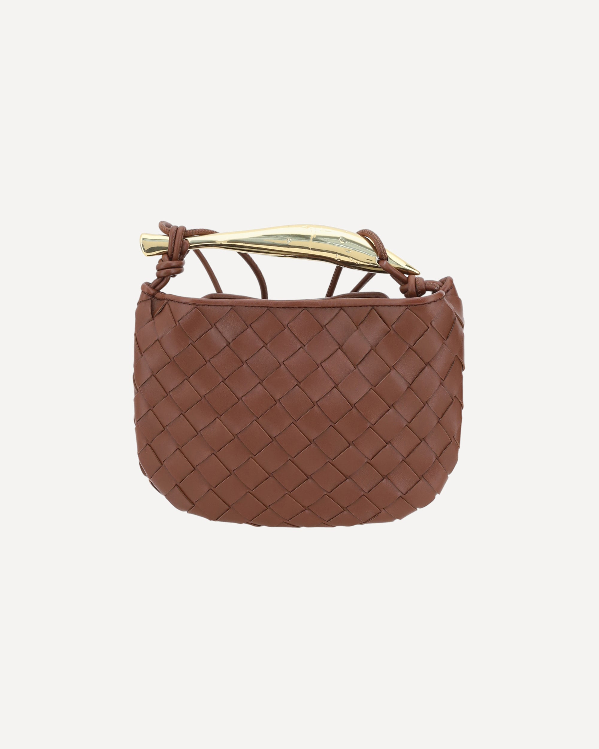 Bottega Veneta's Baby Sardine Handbag is crafted from lambskin and features the brand's iconic woven pattern. Featuring a sculptural handle and magnetic closure, it offers a sophisticated and functional design. Inside, a single compartment for simple and elegant organization.