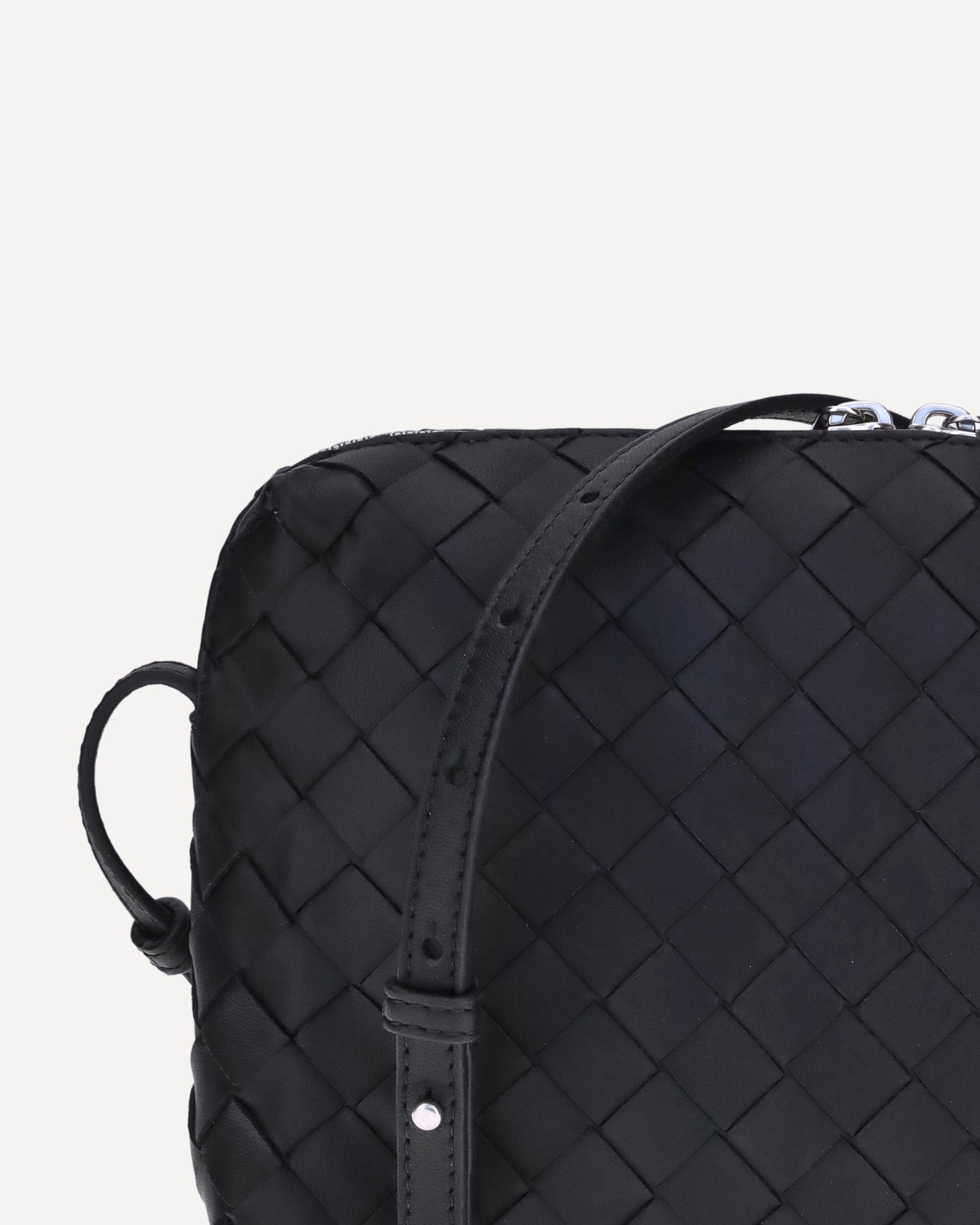 Iconic Braided leather Shoulder Bag by Bottega Veneta: Made with iconic braided leather, this signature Bottega Veneta shoulder bag combines refined style with everyday functionality. Equipped with an adjustable flat shoulder strap for personalized comfort, it features a practical top closure with a double-slider zipper designed to ensure security and immediate access to contents. A versatile accessory perfect for completing any look with a touch of class.