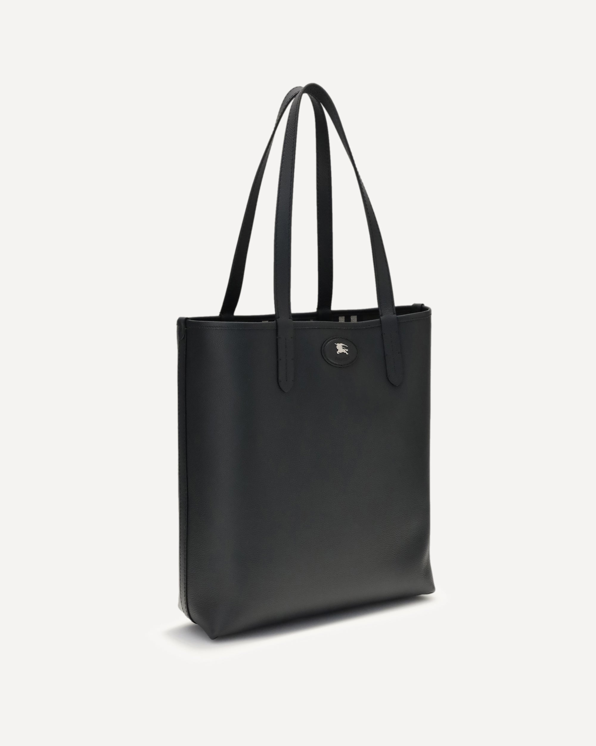 The reversible Bloomsbury Tote Bag by Burberry is a versatile and refined accessory perfect for any occasion. Made from a blend of cotton and linen, it features the iconic Burberry Check, a pattern that adds a distinctive and timeless touch. The bag features top handles and an adjustable and detachable shoulder strap, making it comfortable to carry either by hand or over the shoulder. Hand-painted edges and brushed metal elements enhance the design, while the leather Equestrian Knight Design label on the front recalls the brand's legendary symbol. A practical and luxurious accessory that combines functionality and iconic style.