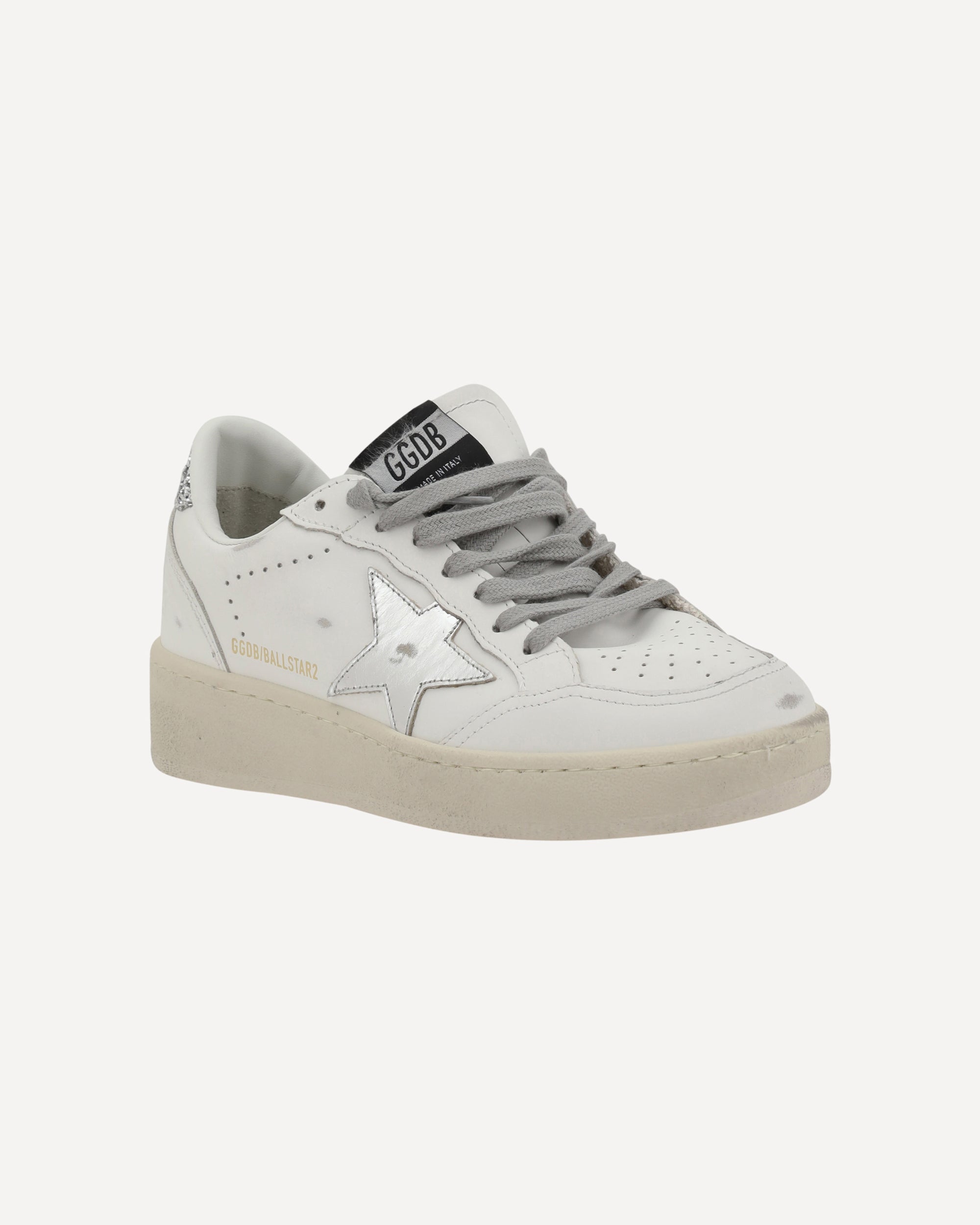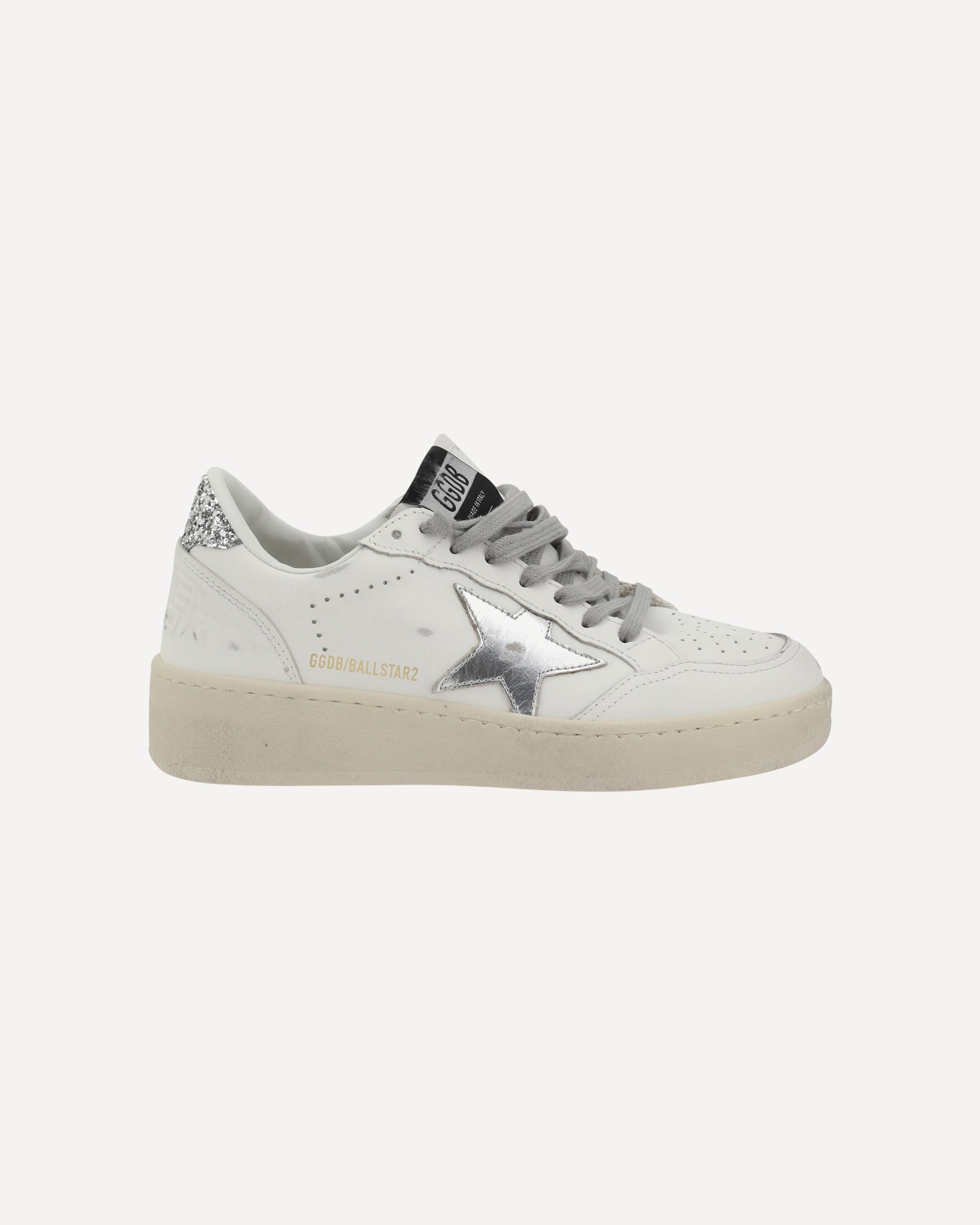 Golden Goose's Ball Star 2 leather Sneakers combine comfort and urban style flawlessly. The lace-up front closure and round toe ensure a comfortable and practical fit, while the flat sole offers stability. The iconic star on the outer side panel and the press-on logo on the same panel add a distinctive touch. Finally, the front tab with the iconic contrasting embroidered monogram completes the look with a classy detail. Perfect for a casual yet personality-packed look!