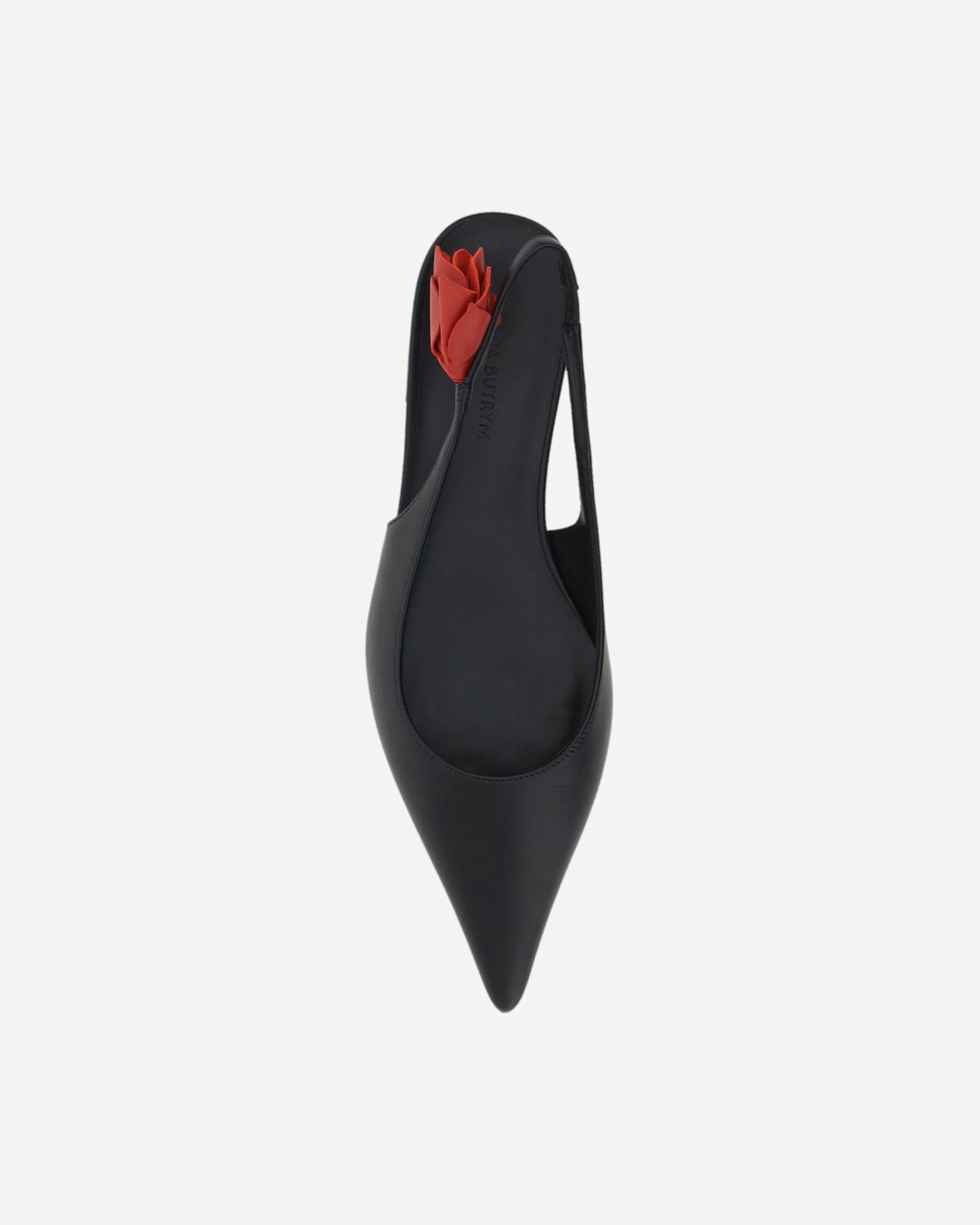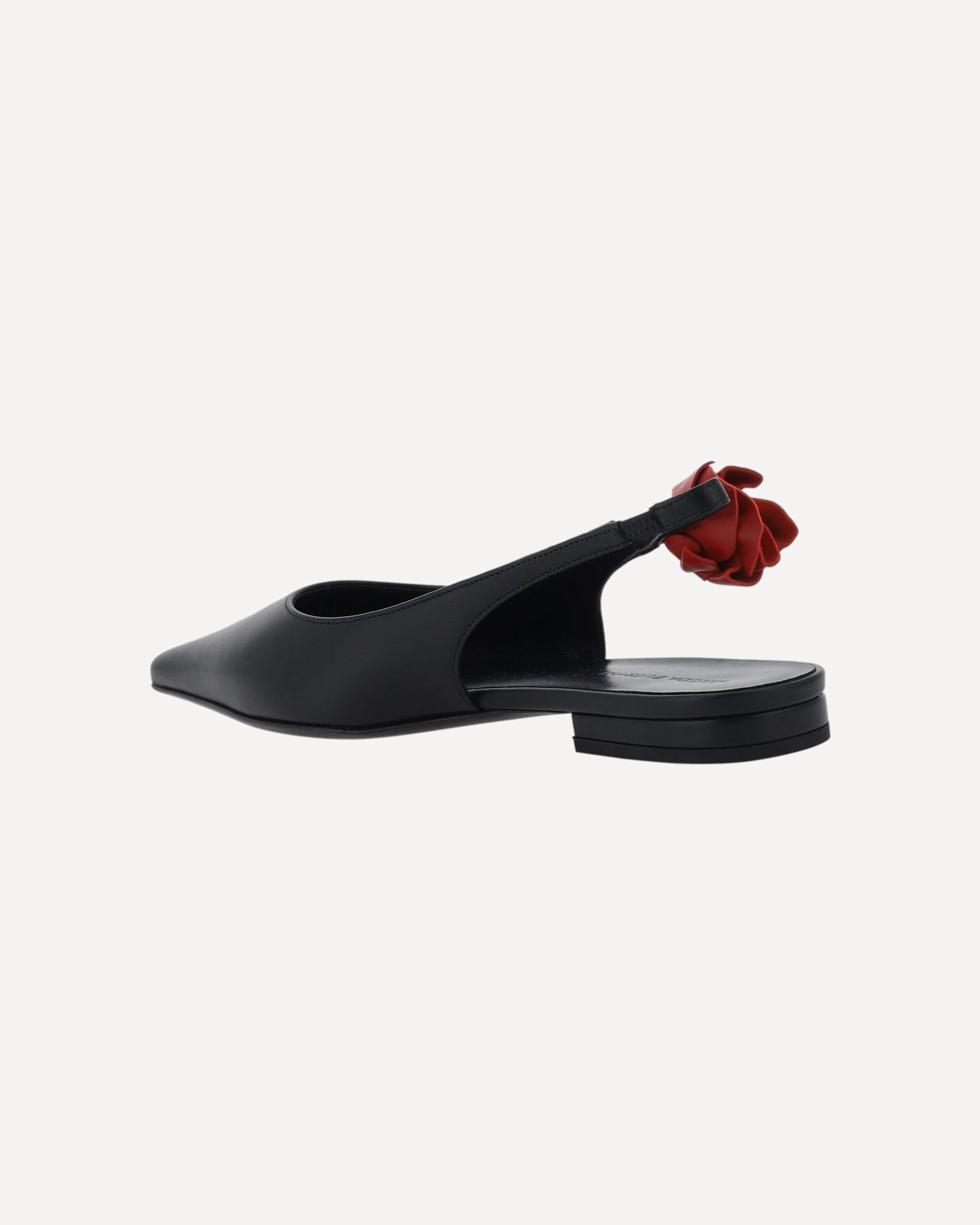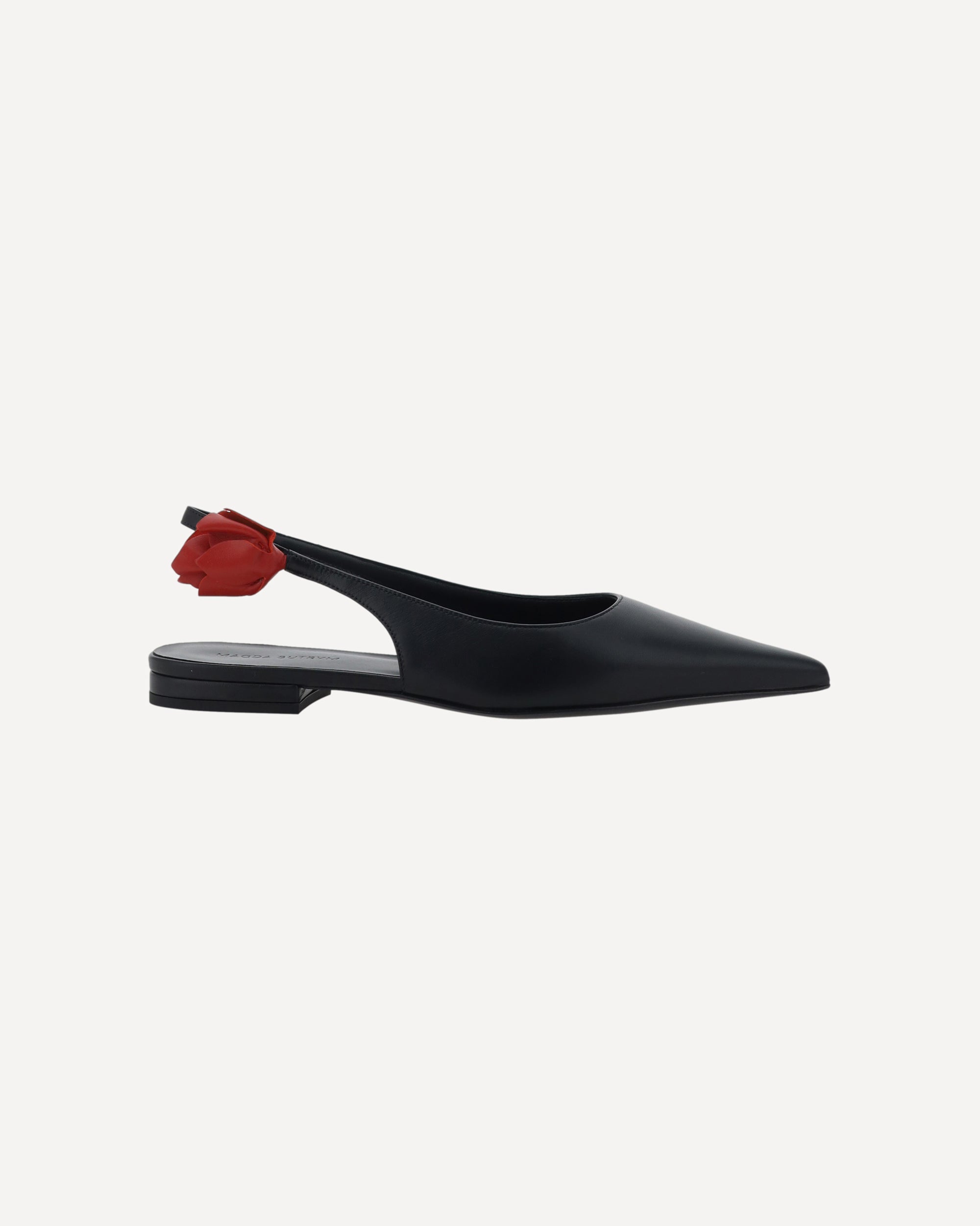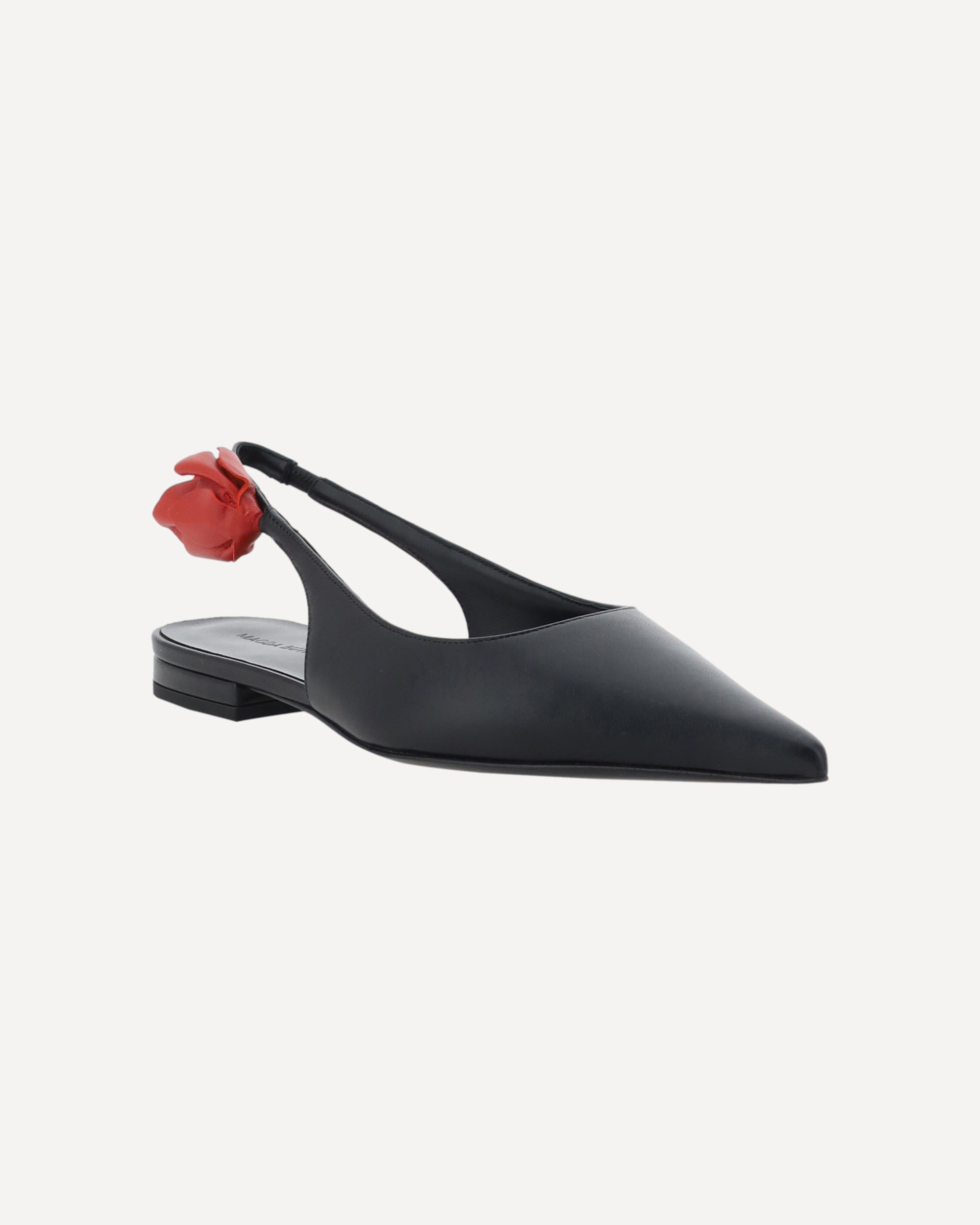 Leather Ballerinas by Magda Butrym, elongated toe, slingback at back with 3d floral applique detail, flat sole, logo-embossed insole.