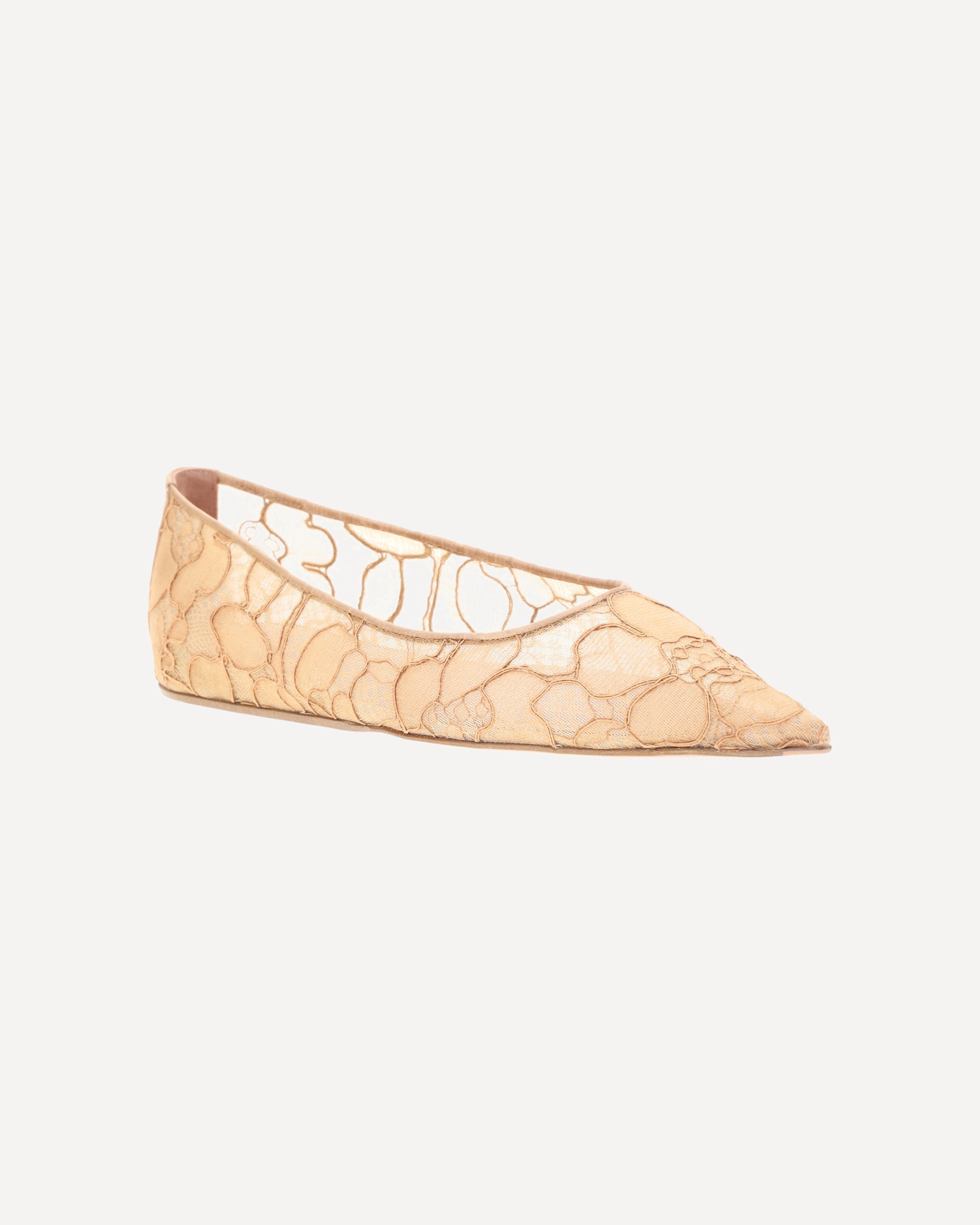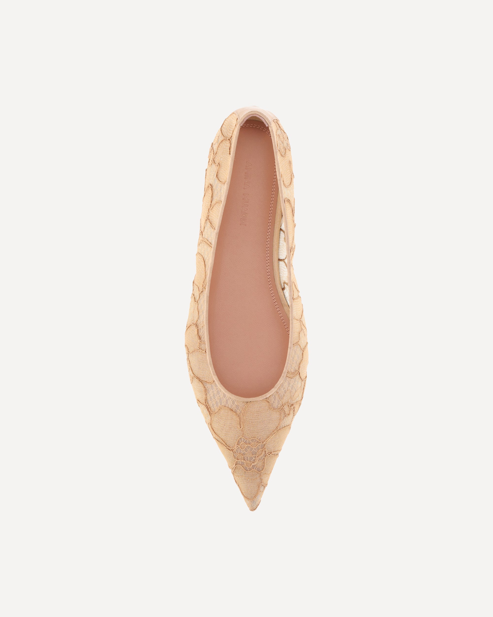 Amina Muaddi's Barbara Ballerinas combine elegance and sophistication with their delicate lace design and elongated toe that adds a sophisticated touch. The flat sole ensures comfort, while the logoed insole completes the look, confirming the brand's prestige. A perfect model for those looking for a chic and versatile accessory, ideal for any occasion.