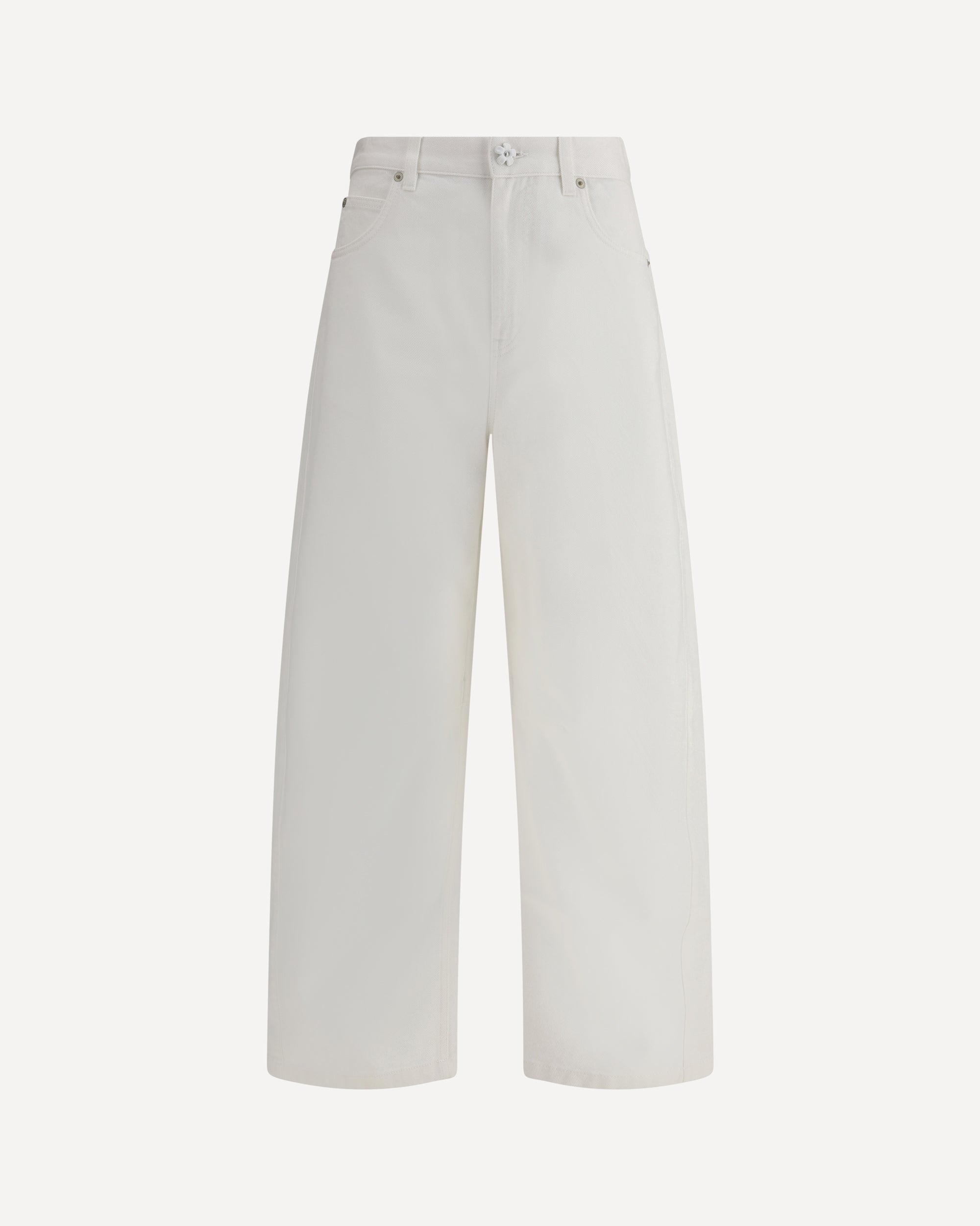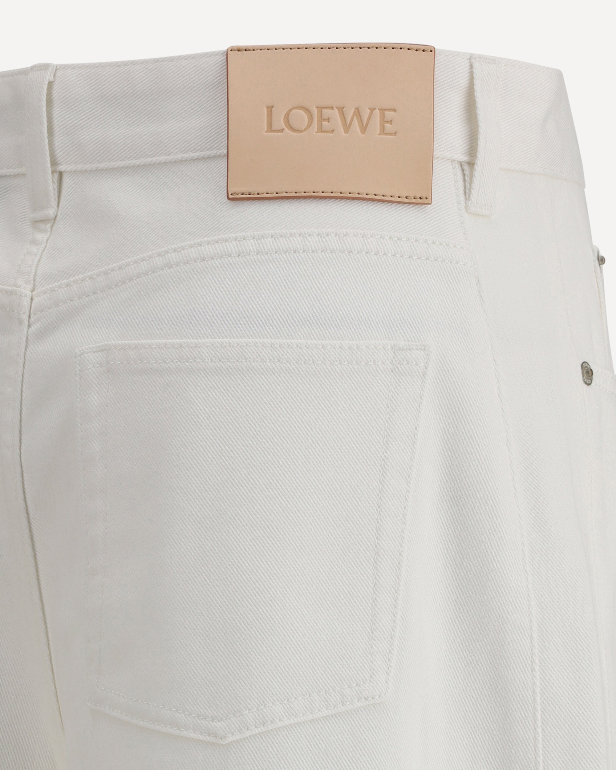 Loewe's Jeans, part of Paula's Ibiza collection, are a versatile and trendy garment. With a five-pocket barrel style, front zip-and-button closure and waistband loops, they offer a comfortable and stylish fit. The leather patch on the back with the iconic logo adds a distinctive touch, making them perfect for a casual-chic look inspired by Ibiza's unique vibe.