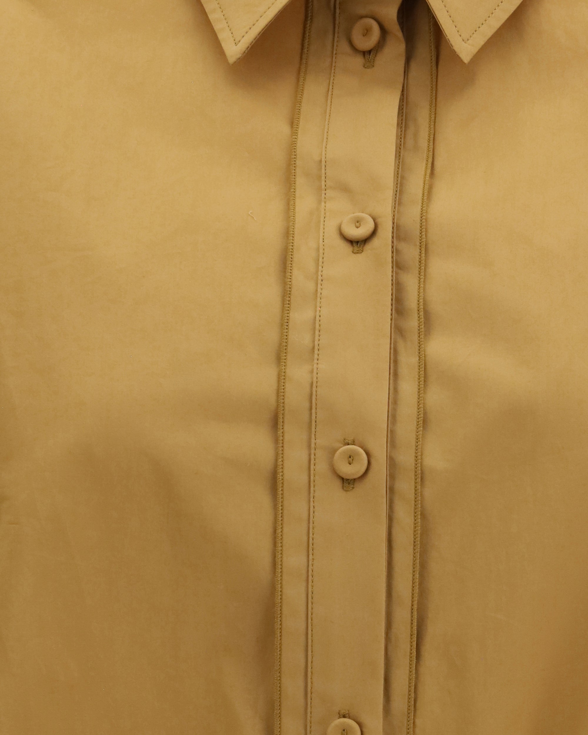 The half-sleeve popline Shirt by Forte Forte brings a sense of lightness to urban dressing. The drawstring at the hem, finished with a gros-grain ribbon, creates a gentle blouson effect that softens the silhouette, while the play of topstitching along the button placket and shoulders adds a more defined, confident note. An effortless piece that balances ease and character.