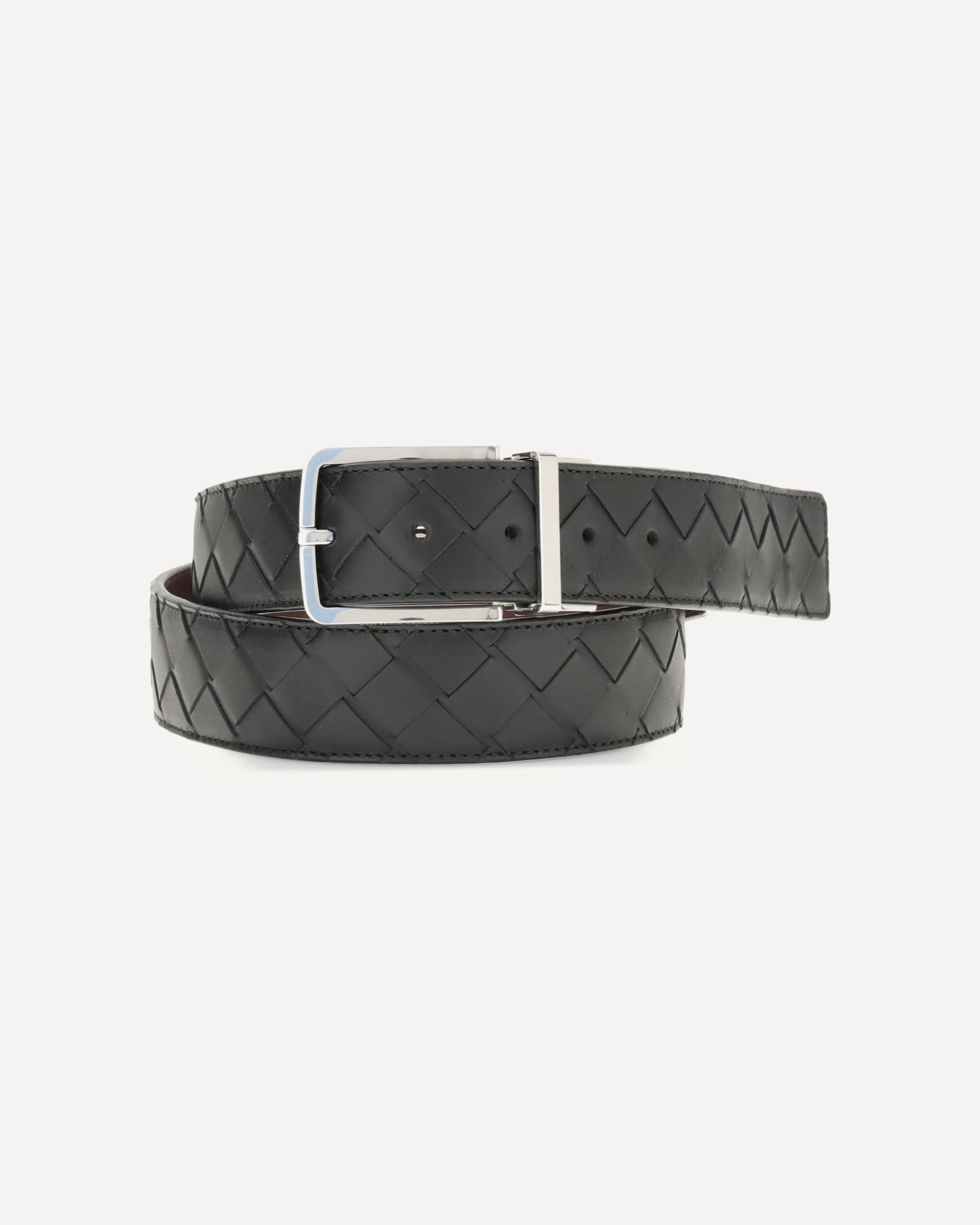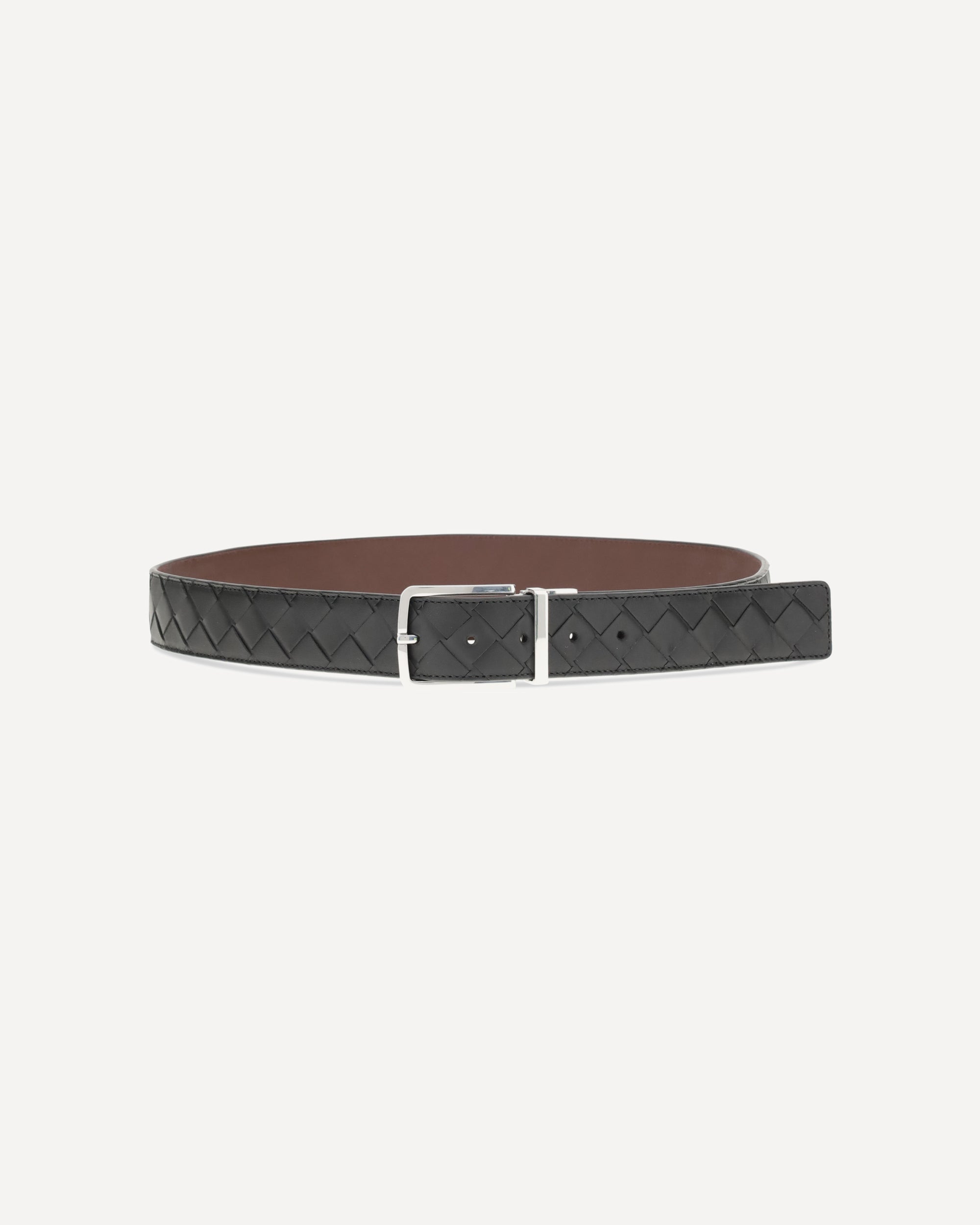 The leather Belt by Bottega Veneta features the house's iconic intrecciato design. Made of high-quality leather, it is complemented by a contrasting metal buckle. Thickness: 3 cm.