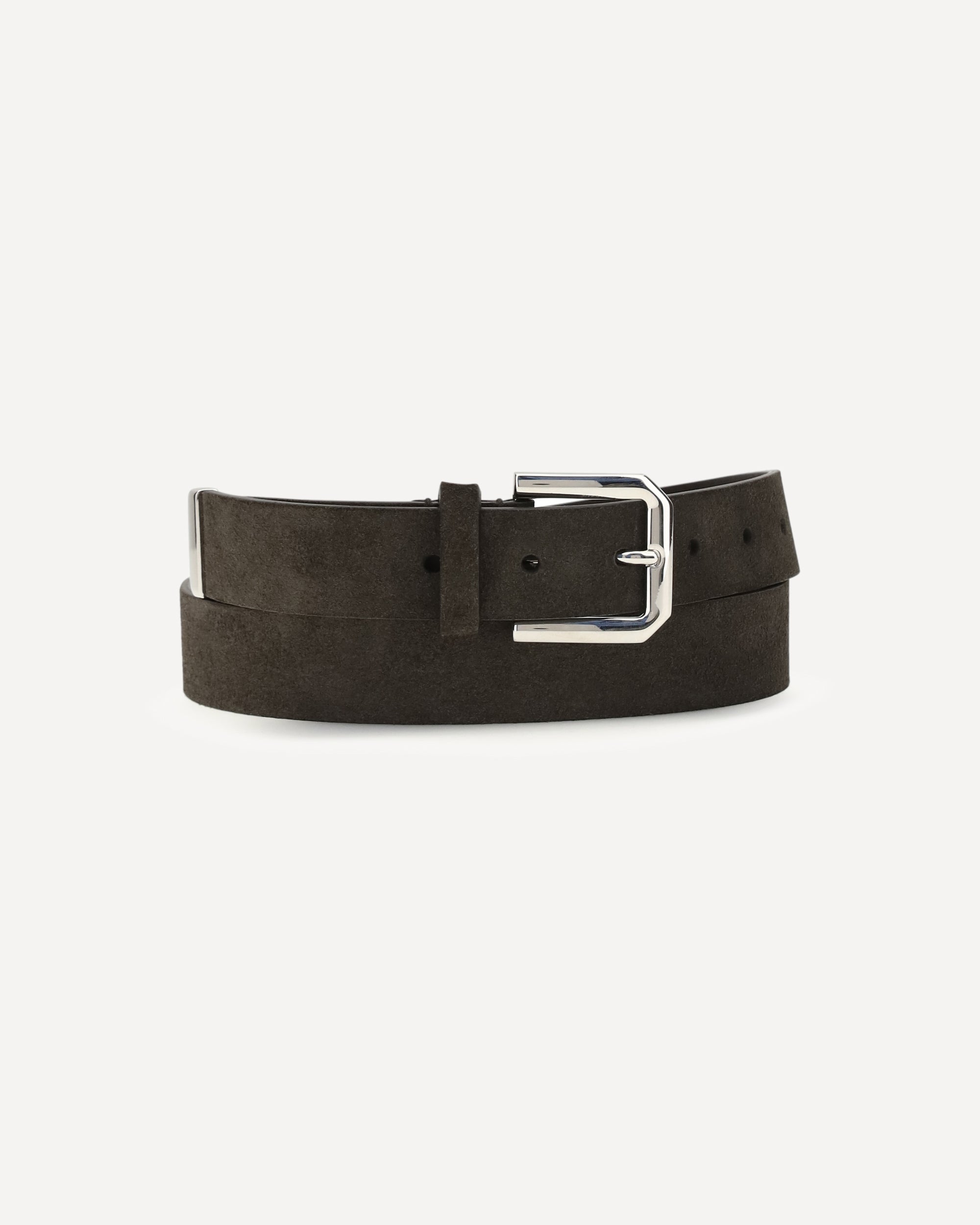 The leather Belt by Brunello Cucinelli is crafted from suede and finished with an antique gold-plated buckle and metal details, combining refined elegance and timeless style.