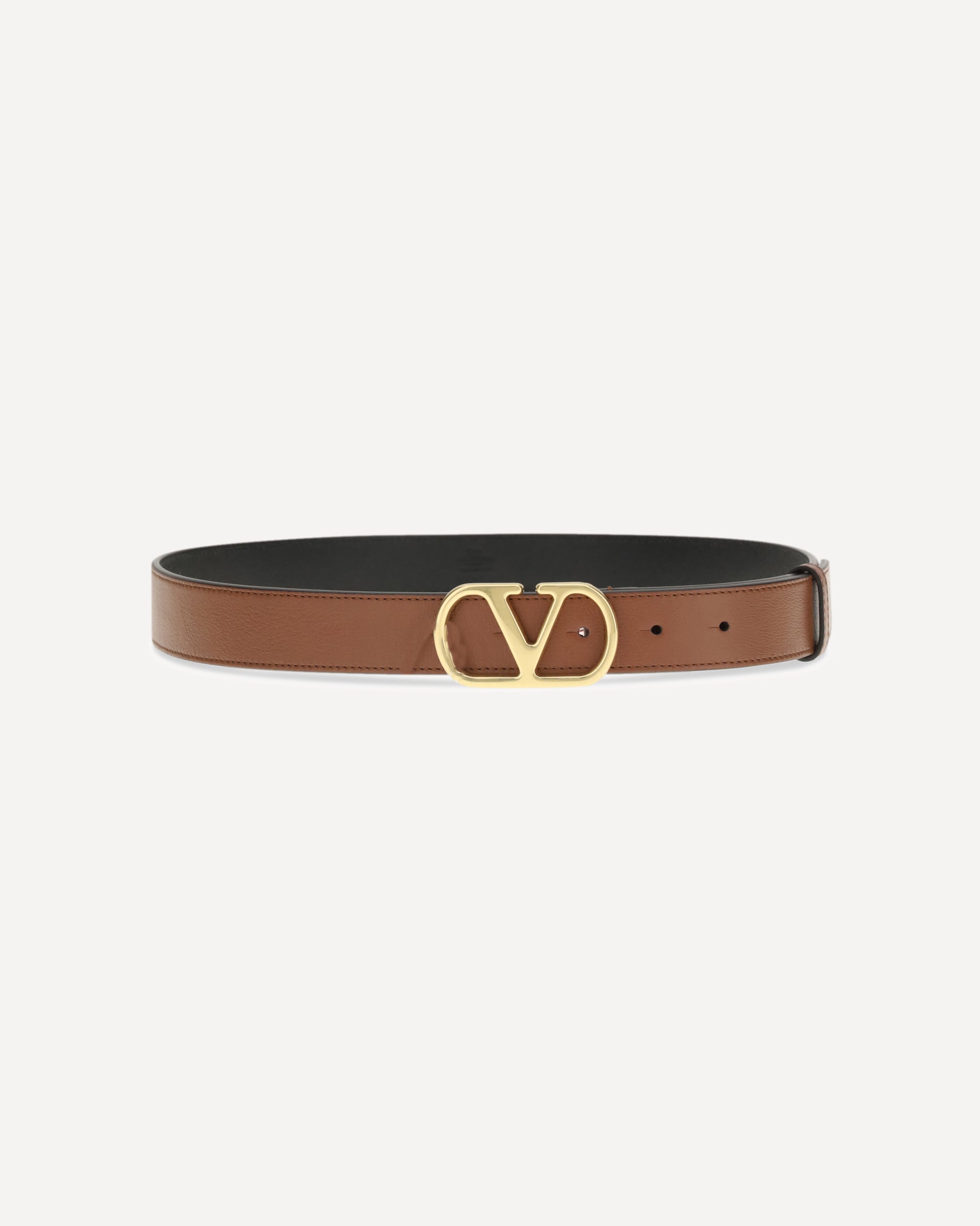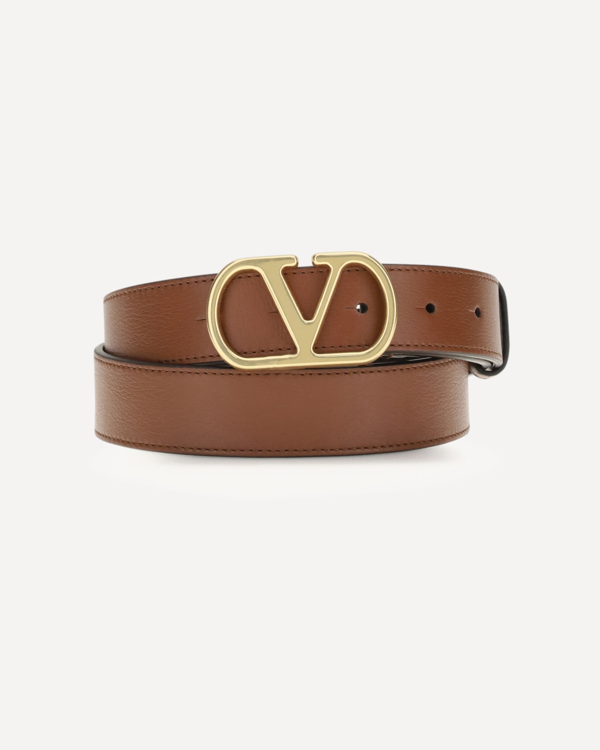 The VLogo Signature Belt by Valentino Garavani is crafted from glossy calfskin with a smooth leather interior and features the house’s iconic antiqued-brass VLogo buckle. Elegant and versatile, it brings refined character to both tailored outfits and everyday looks.