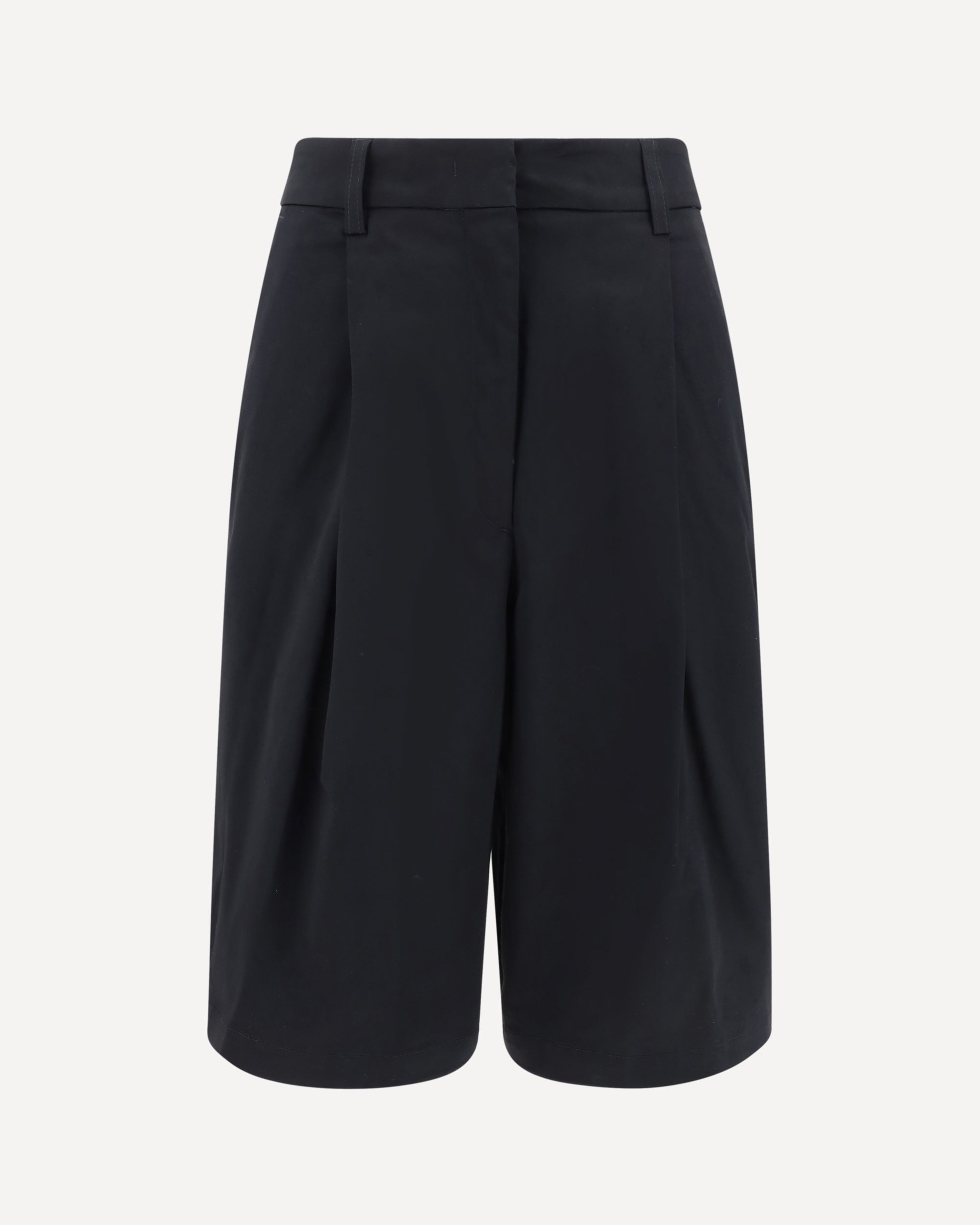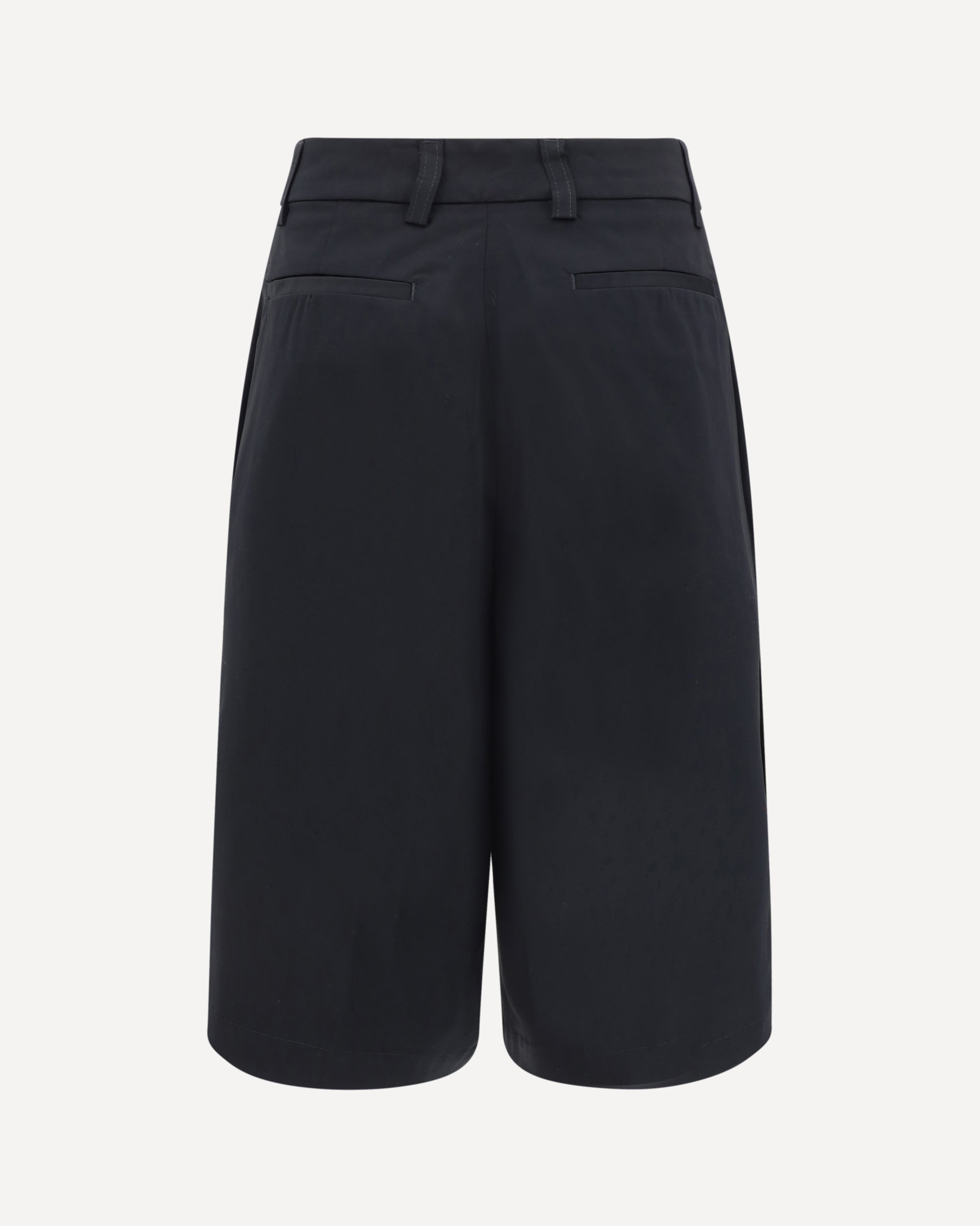 The Latest's Bermuda Shorts are a versatile and refined garment featuring a sleek and functional design. The knee-length, high-waisted style offers a sleek, sophisticated silhouette perfect for a variety of occasions. The two side welt pockets and two back welt pockets add a practical and stylish touch, while the front zipper and button closure ensures a comfortable and secure fit. Belt loops on the waistband allow you to customize the look with a belt of your choice.